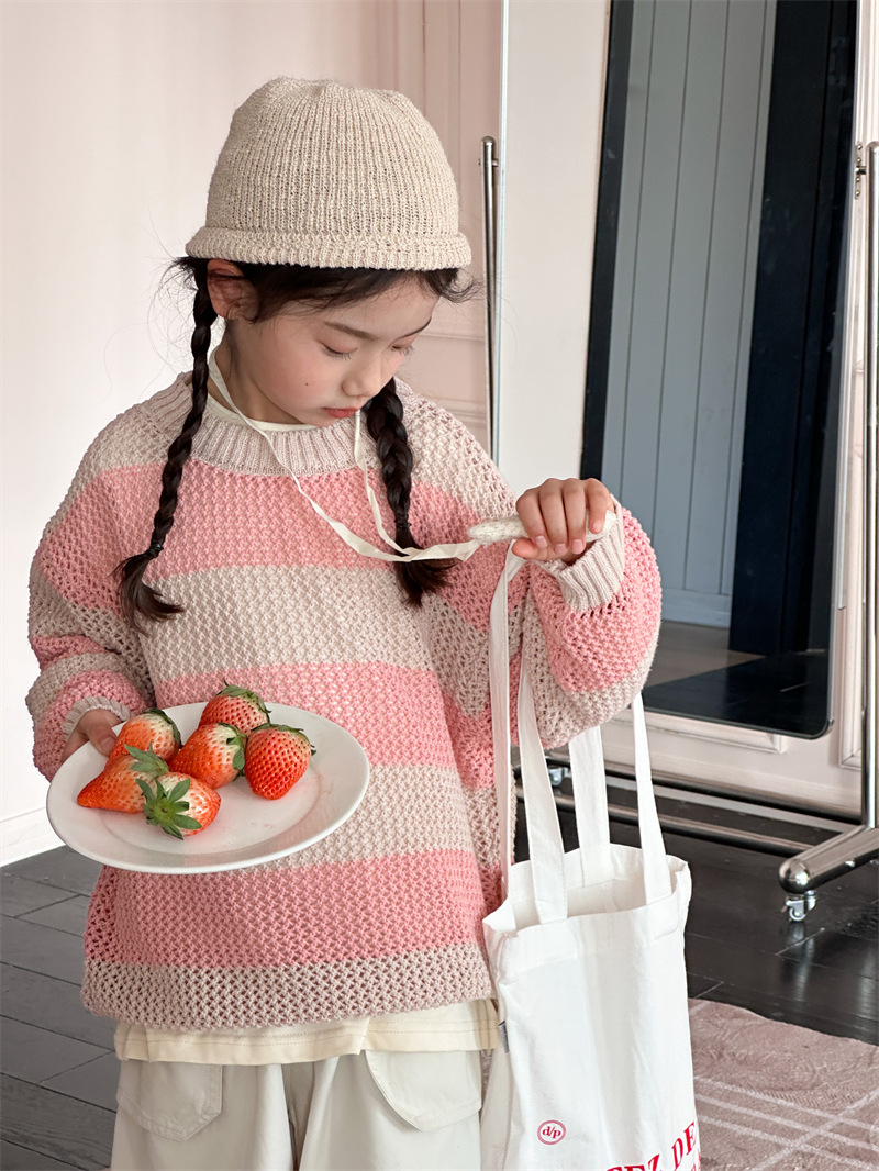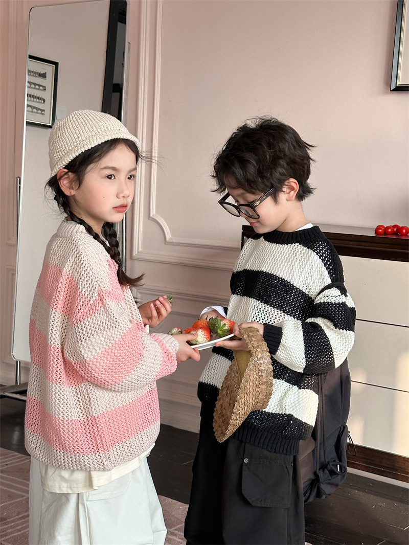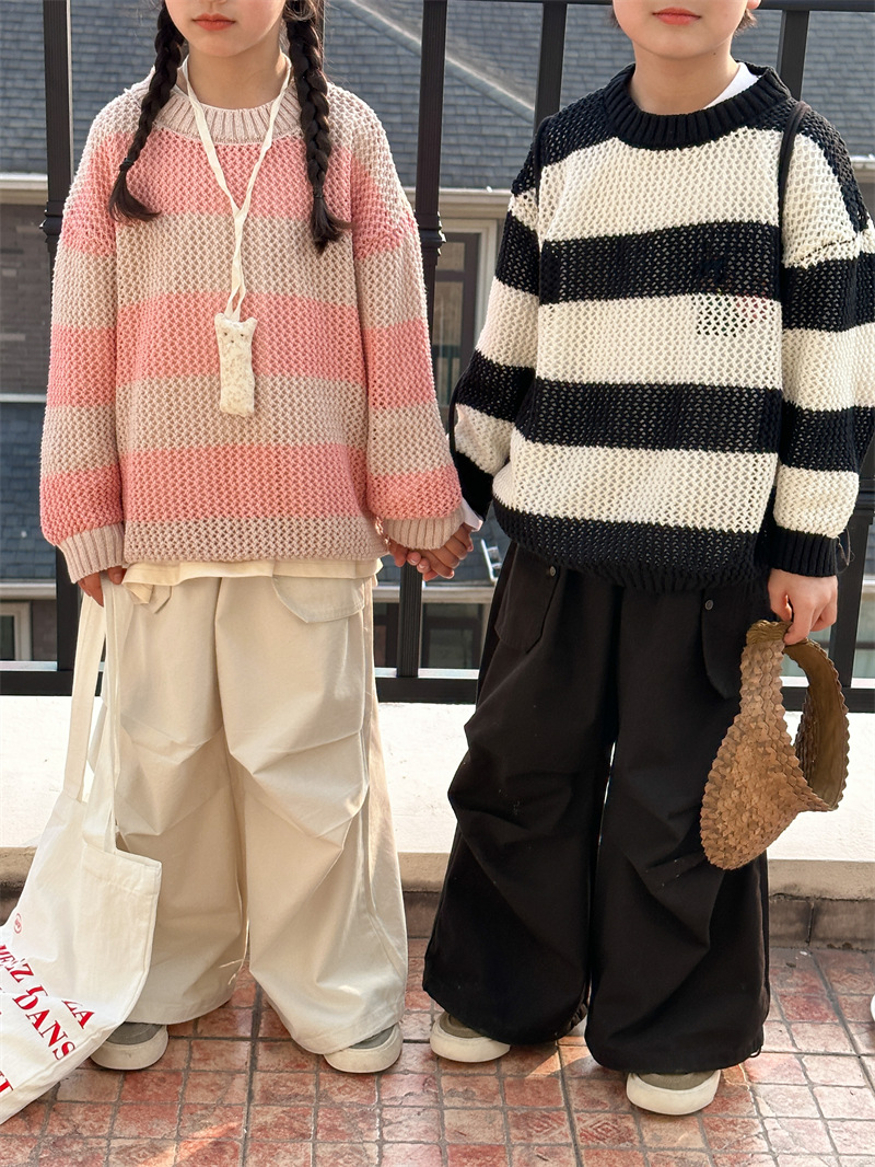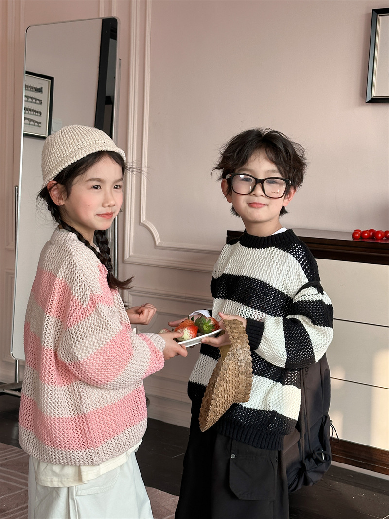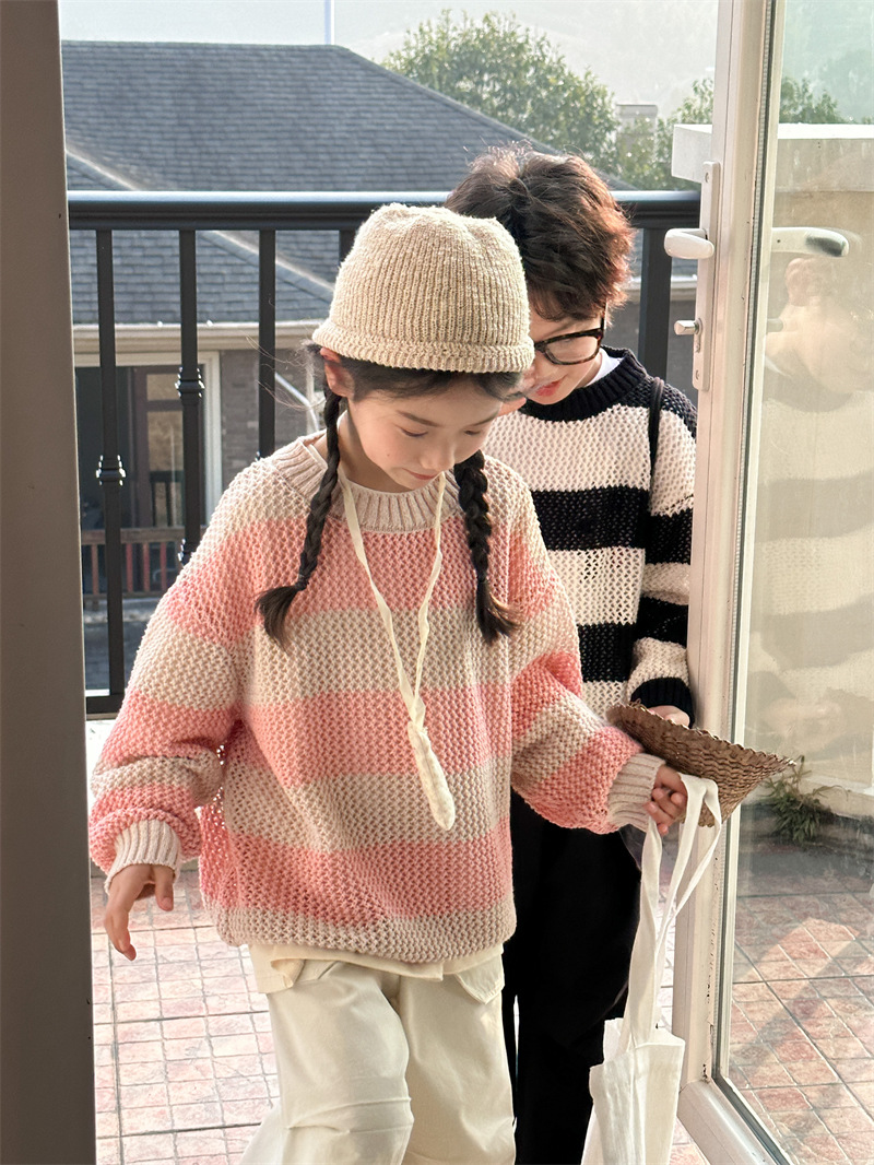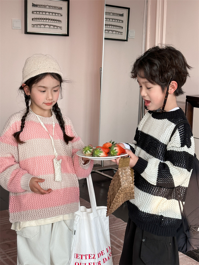 2024 spring new children s striped sweater Korean style boys and girls fashion pullover sweater all matching top wholesale