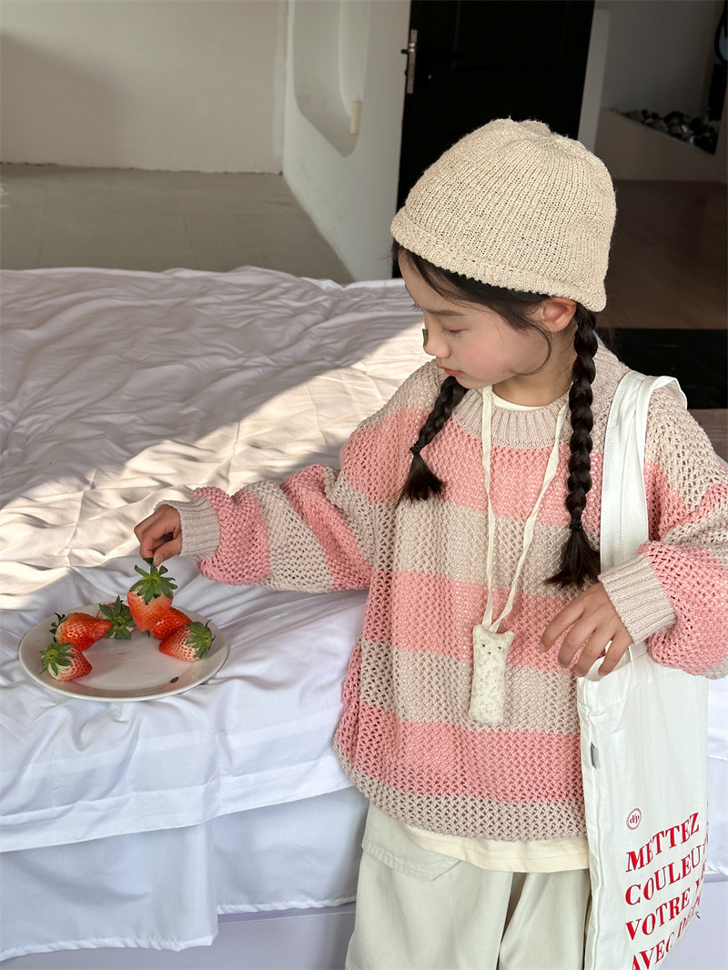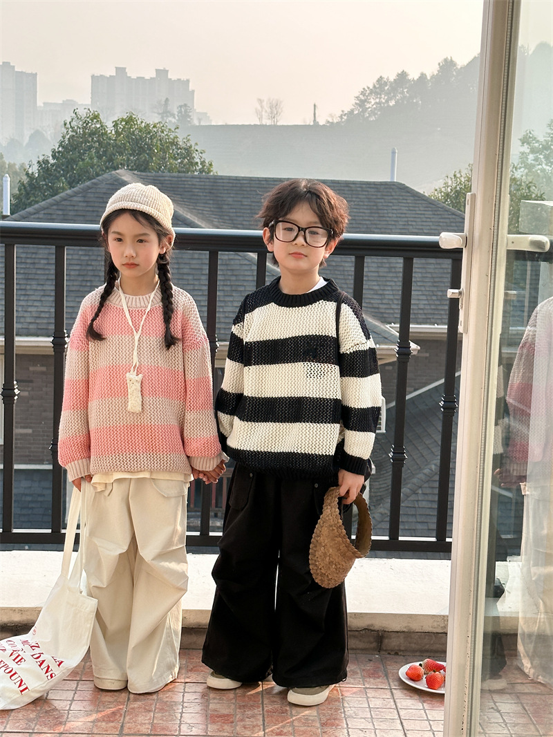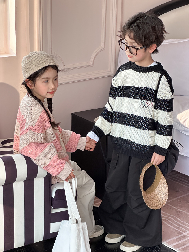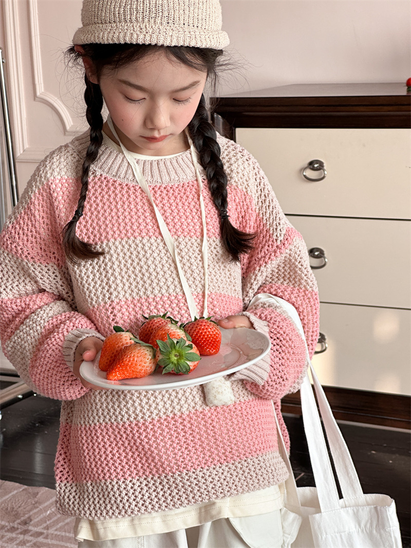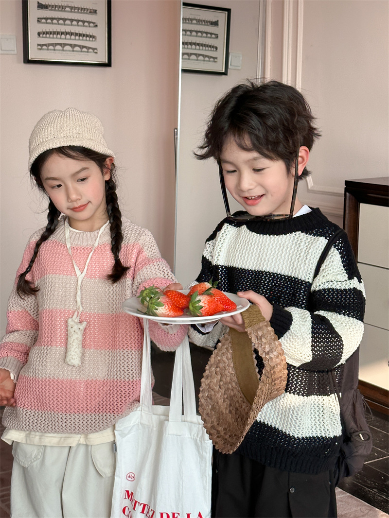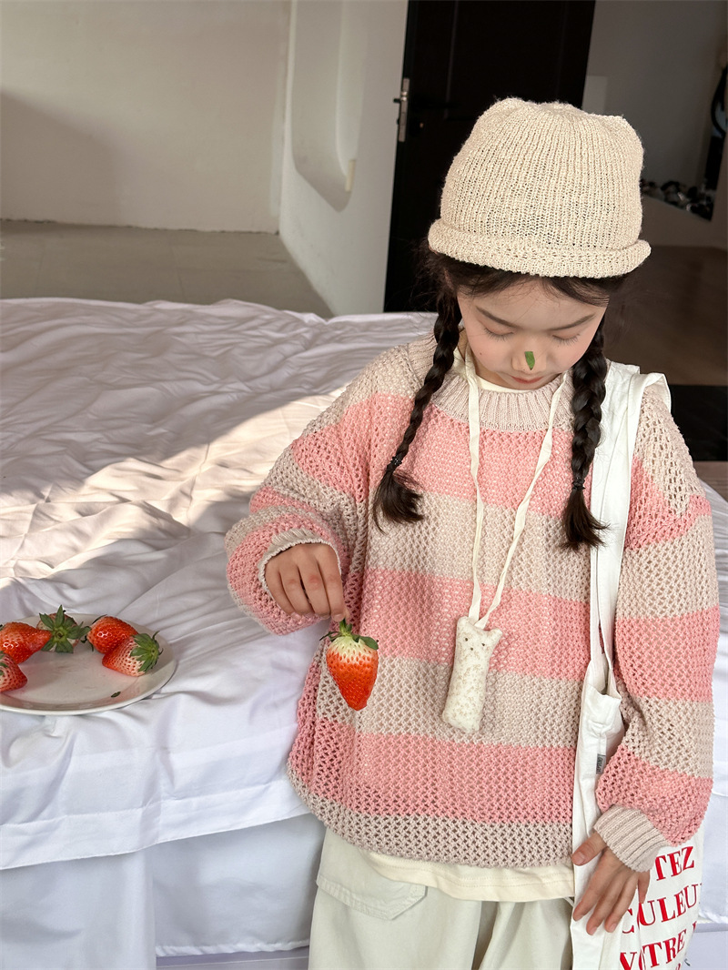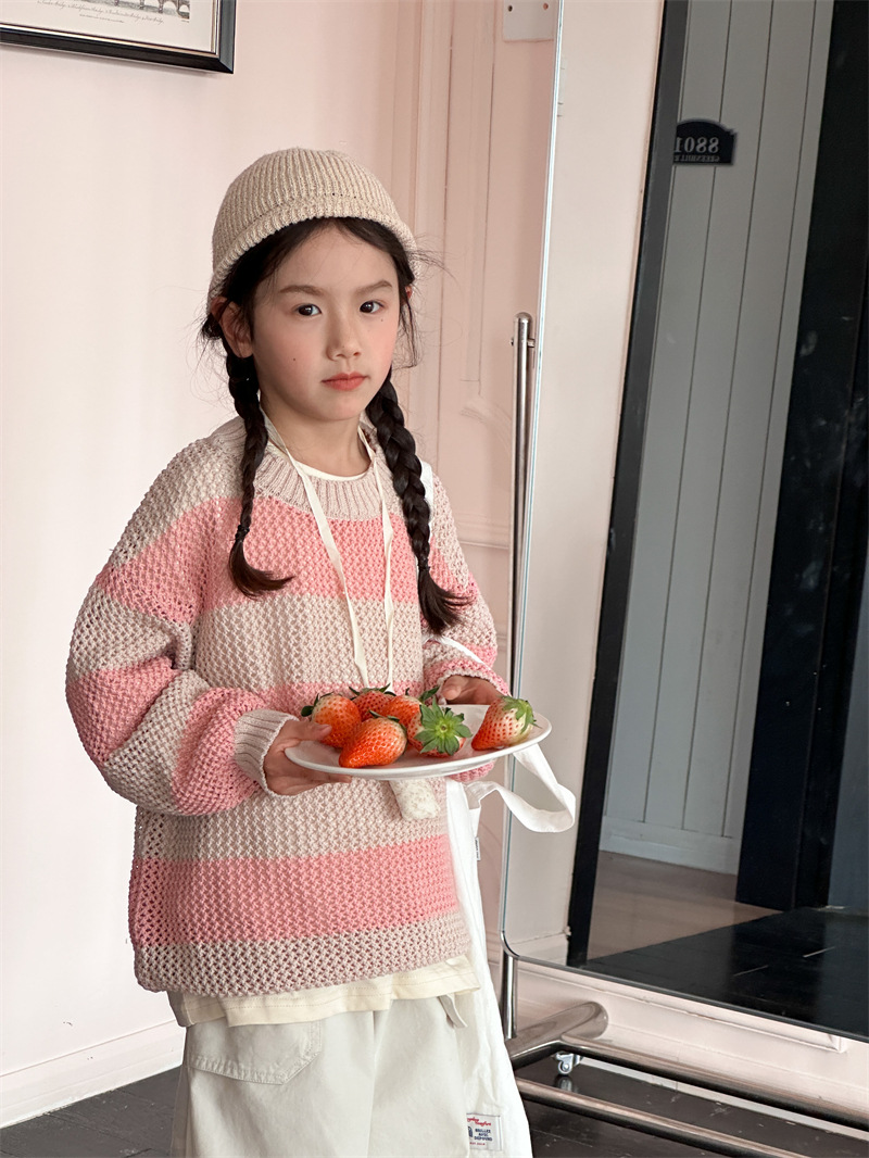 2024 spring new children s striped sweater Korean style boys and girls fashion pullover sweater all matching top wholesale