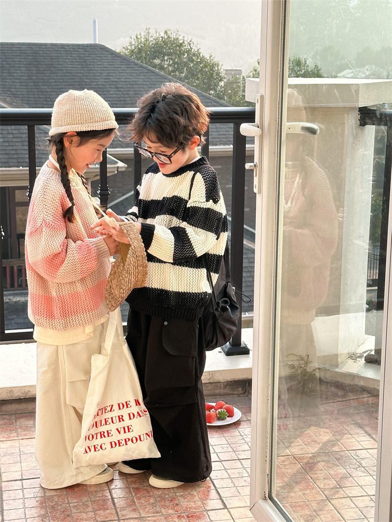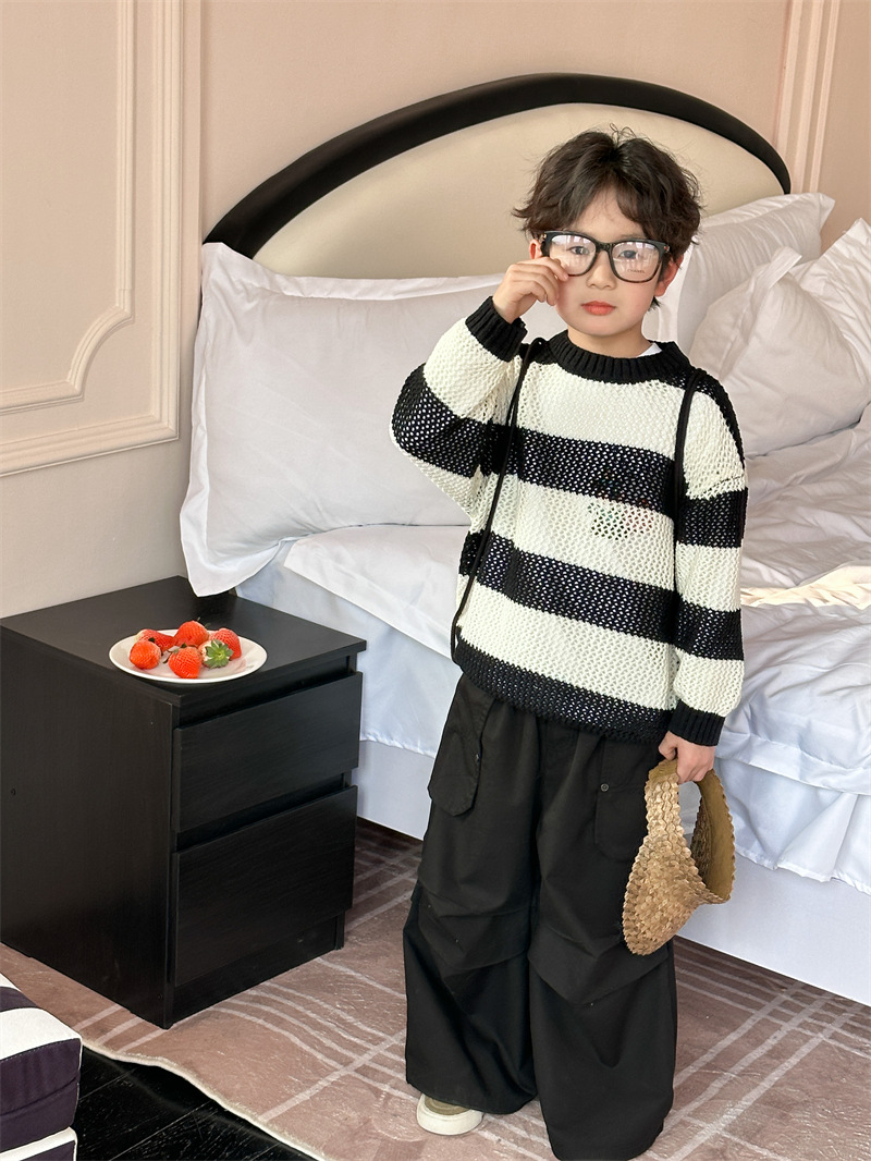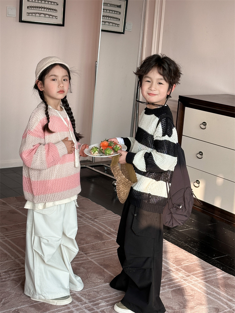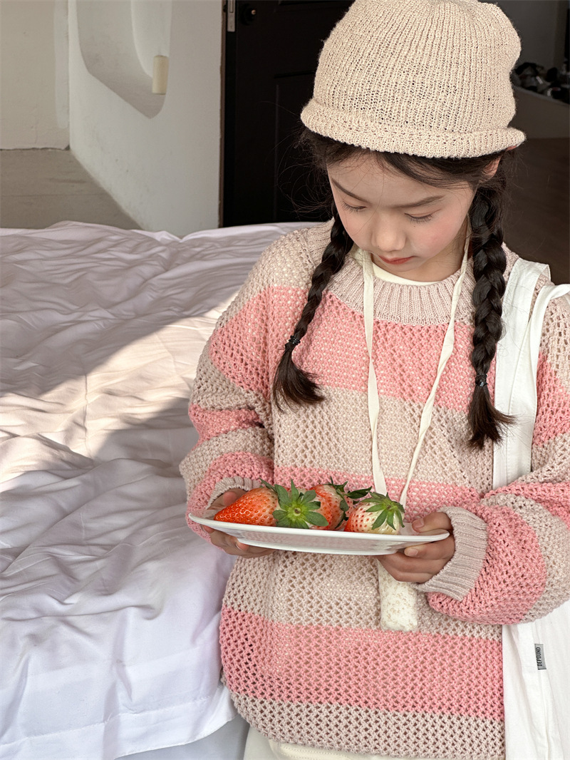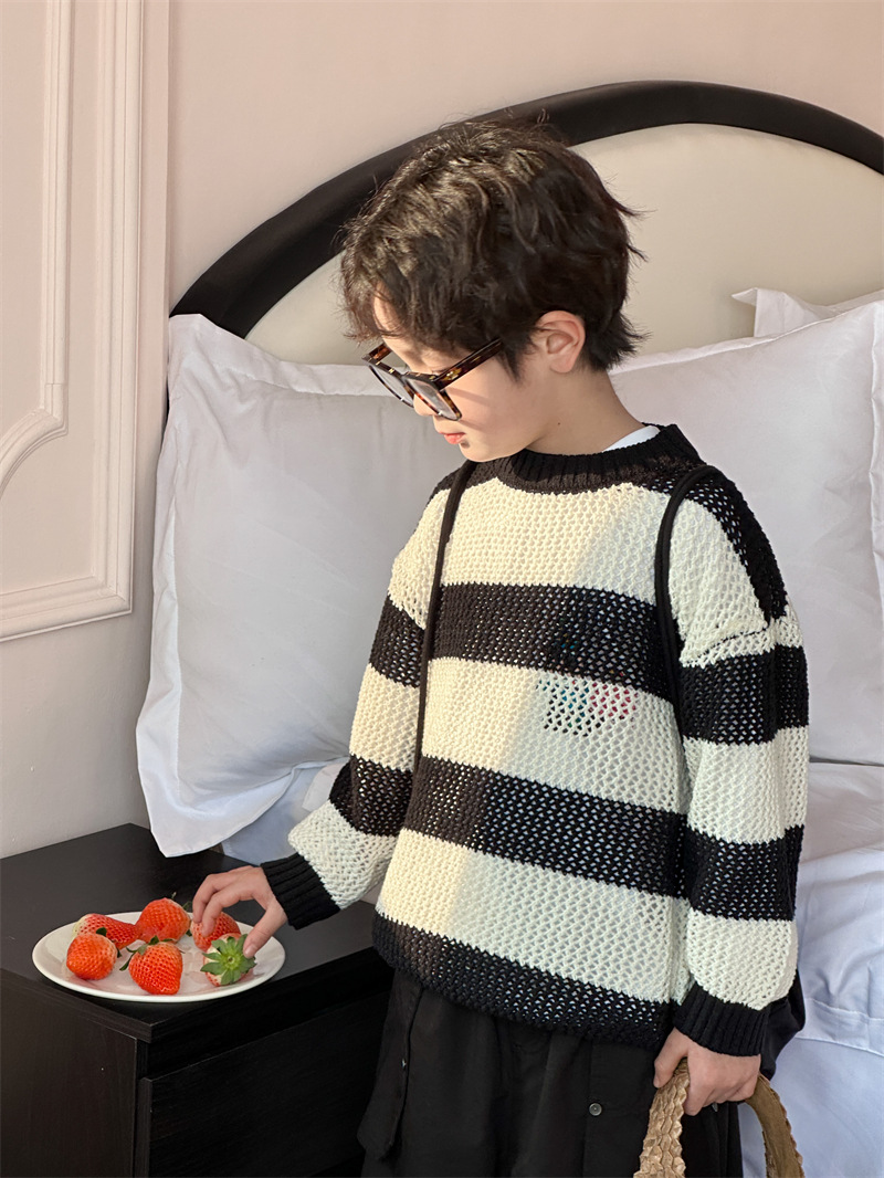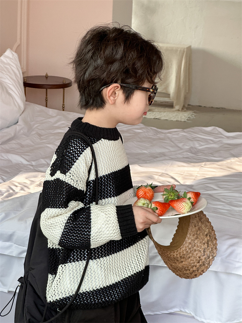 2024 spring new children s striped sweater Korean style boys and girls fashion pullover sweater all matching top wholesale