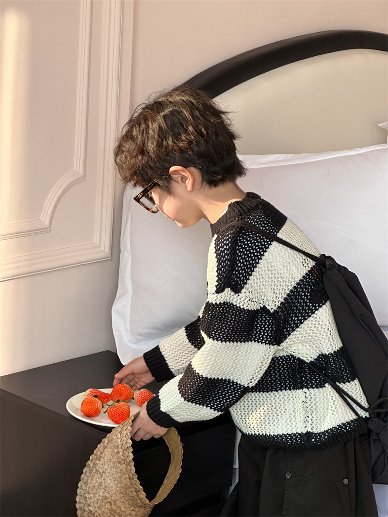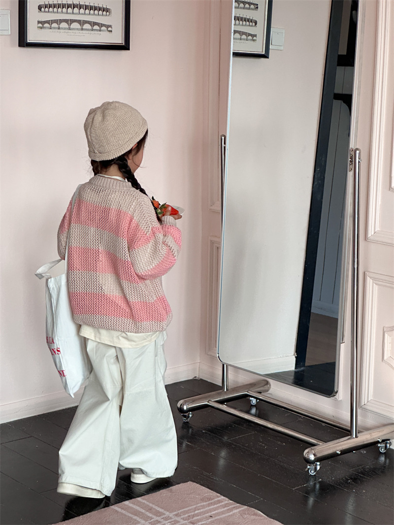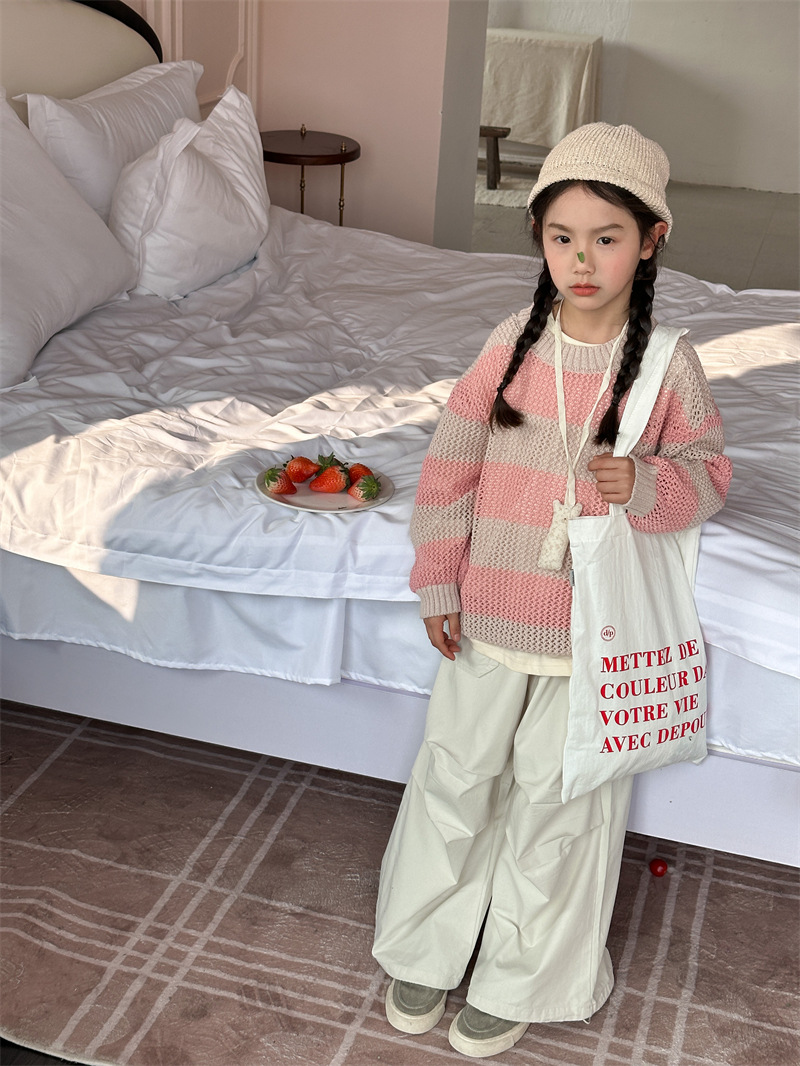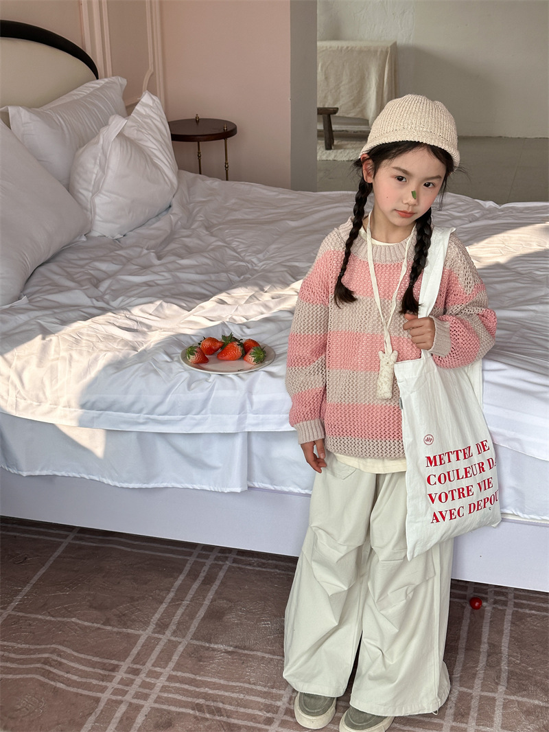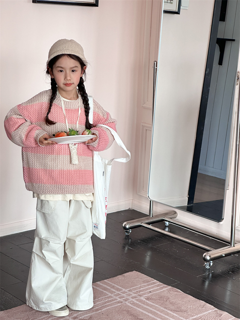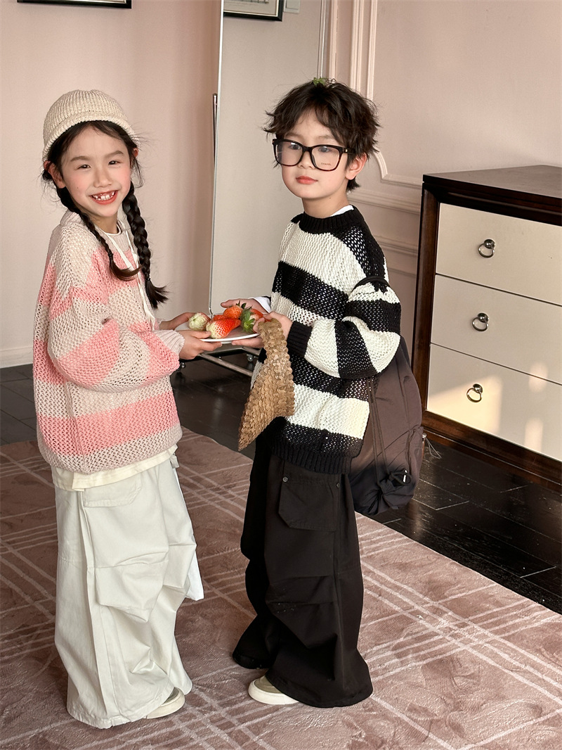 2024 spring new children s striped sweater Korean style boys and girls fashion pullover sweater all matching top wholesale