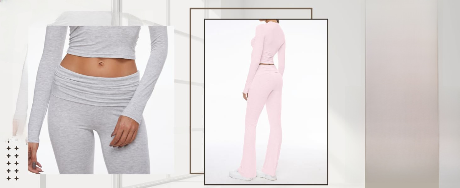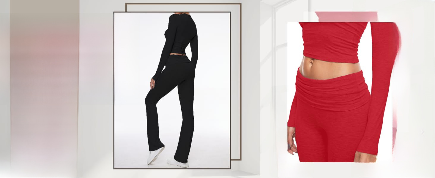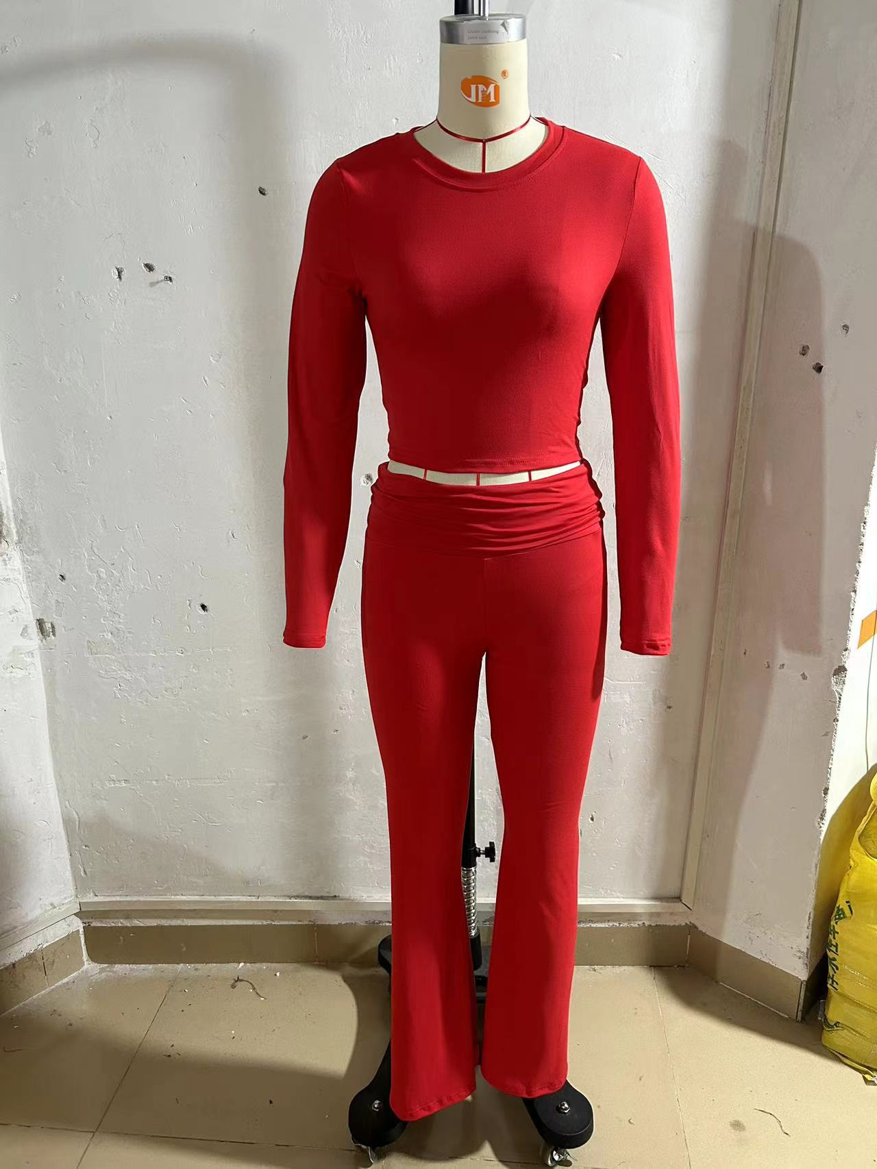 24 European and American women s 2 piece casual suit folding flared pants suit long sleeve short top casual wear pajamas