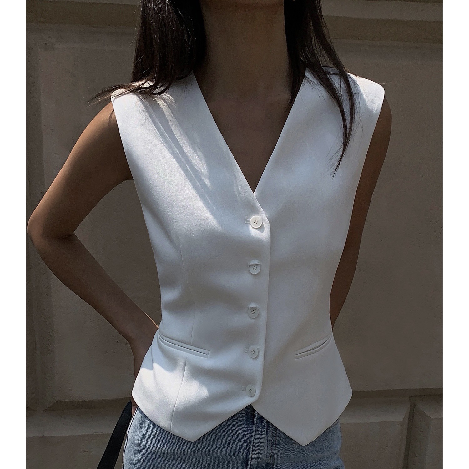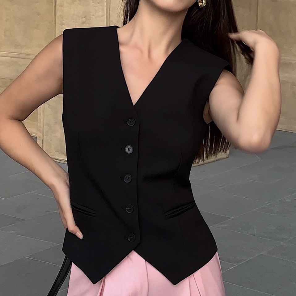 24 Years Black V neck Suit Waistcoat Women s Summer New Retro Stacked Cardigan Vest Sleeveless Elegant Top