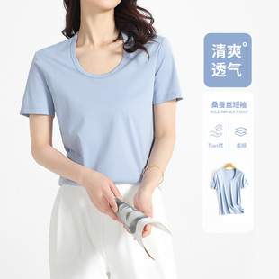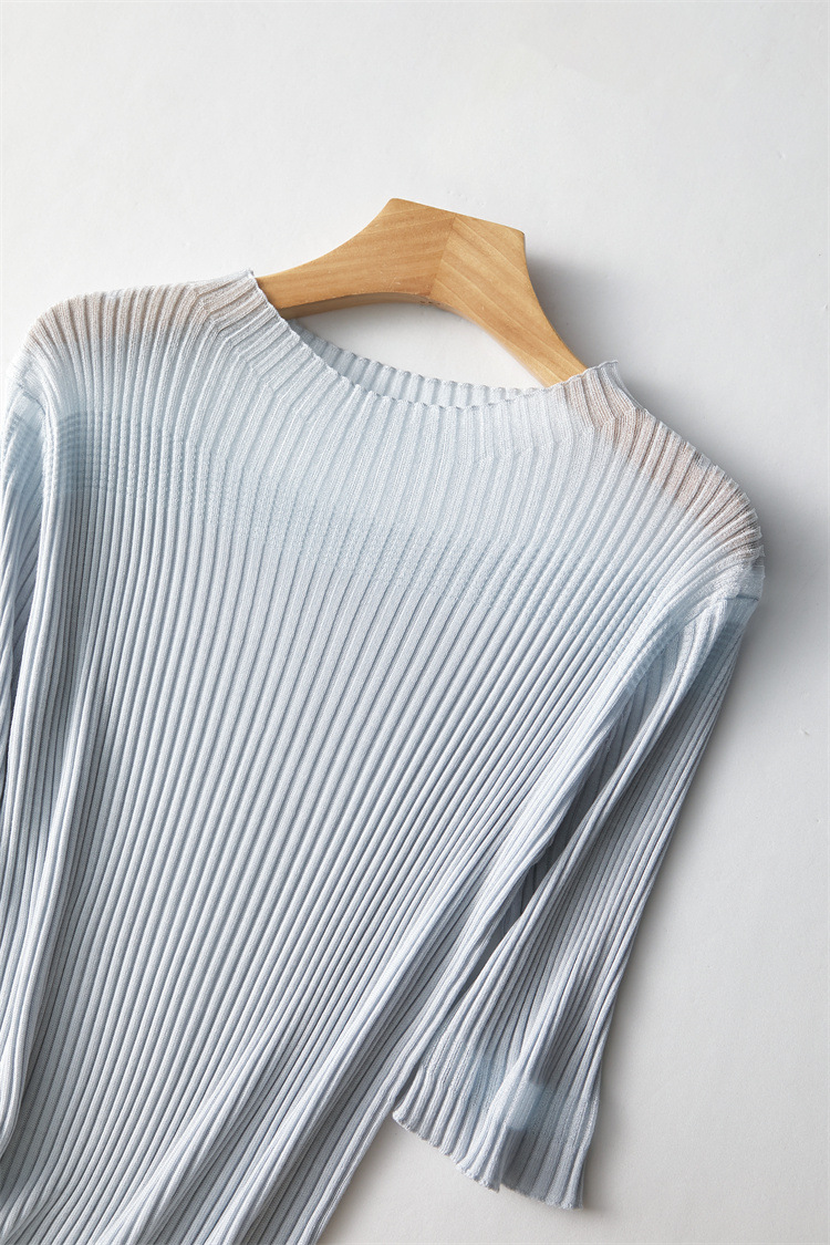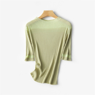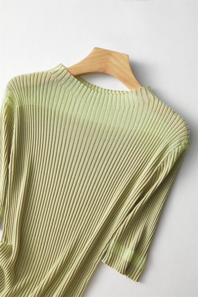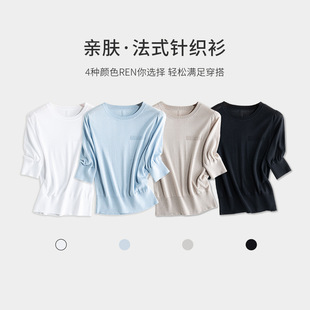 24 spring and summer new women s laissel organza half sleeve sweater Tencel off neck elegant half sleeve T shirt