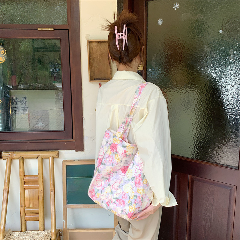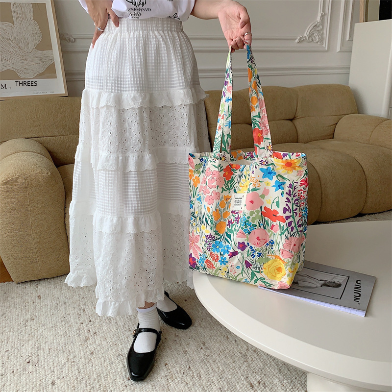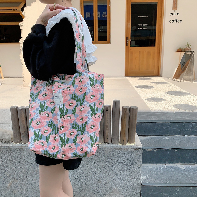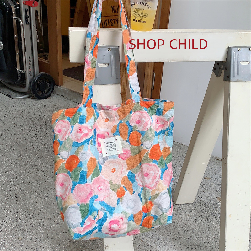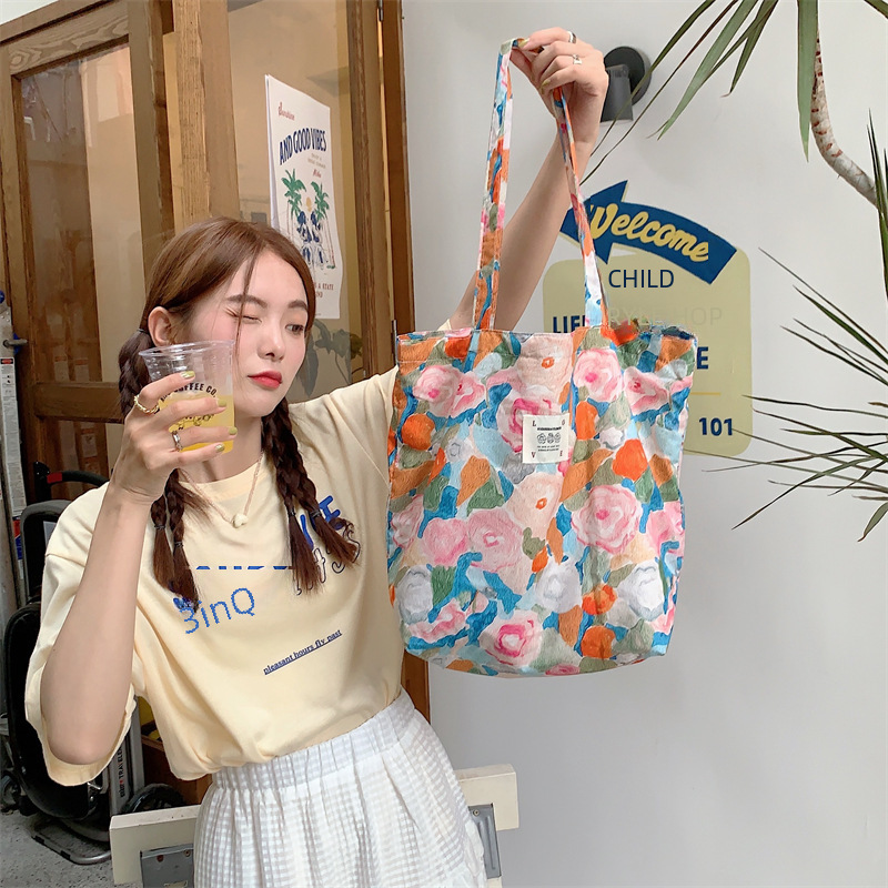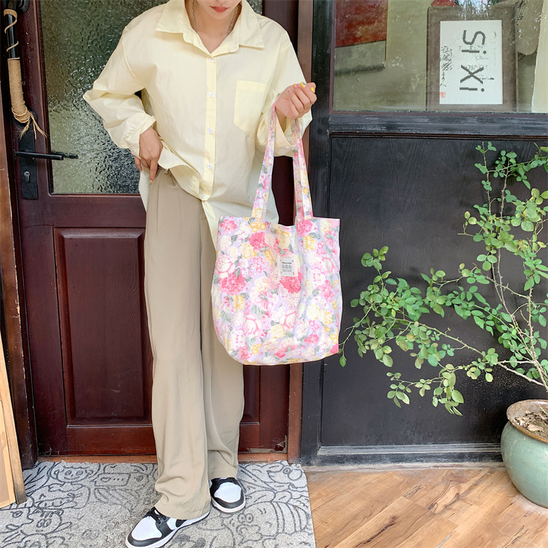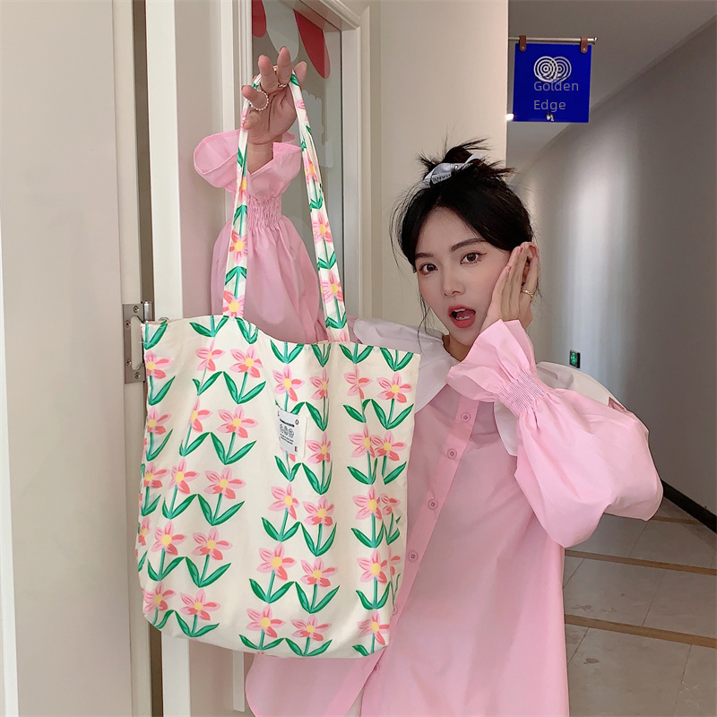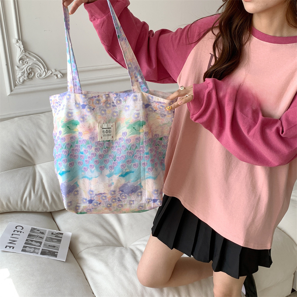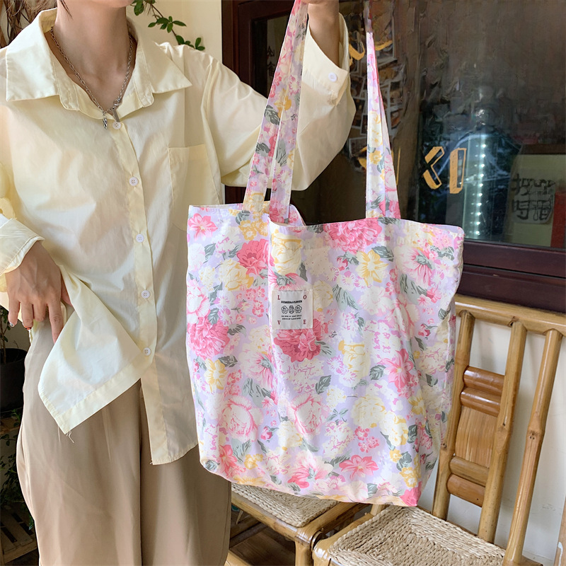 26101 new tote bag large capacity foreign air broken flower canvas shoulder bag portable female student shopping bag wholesale
