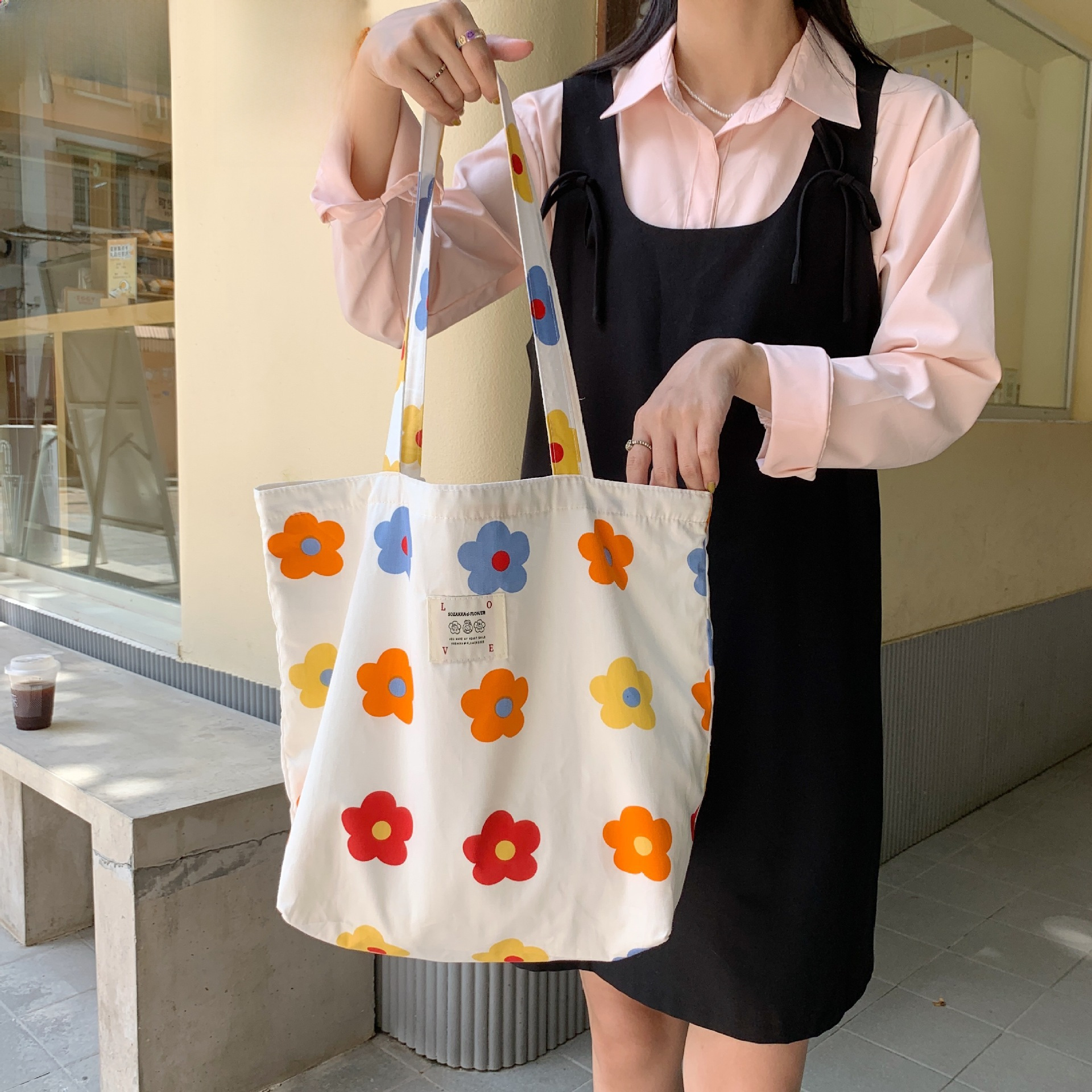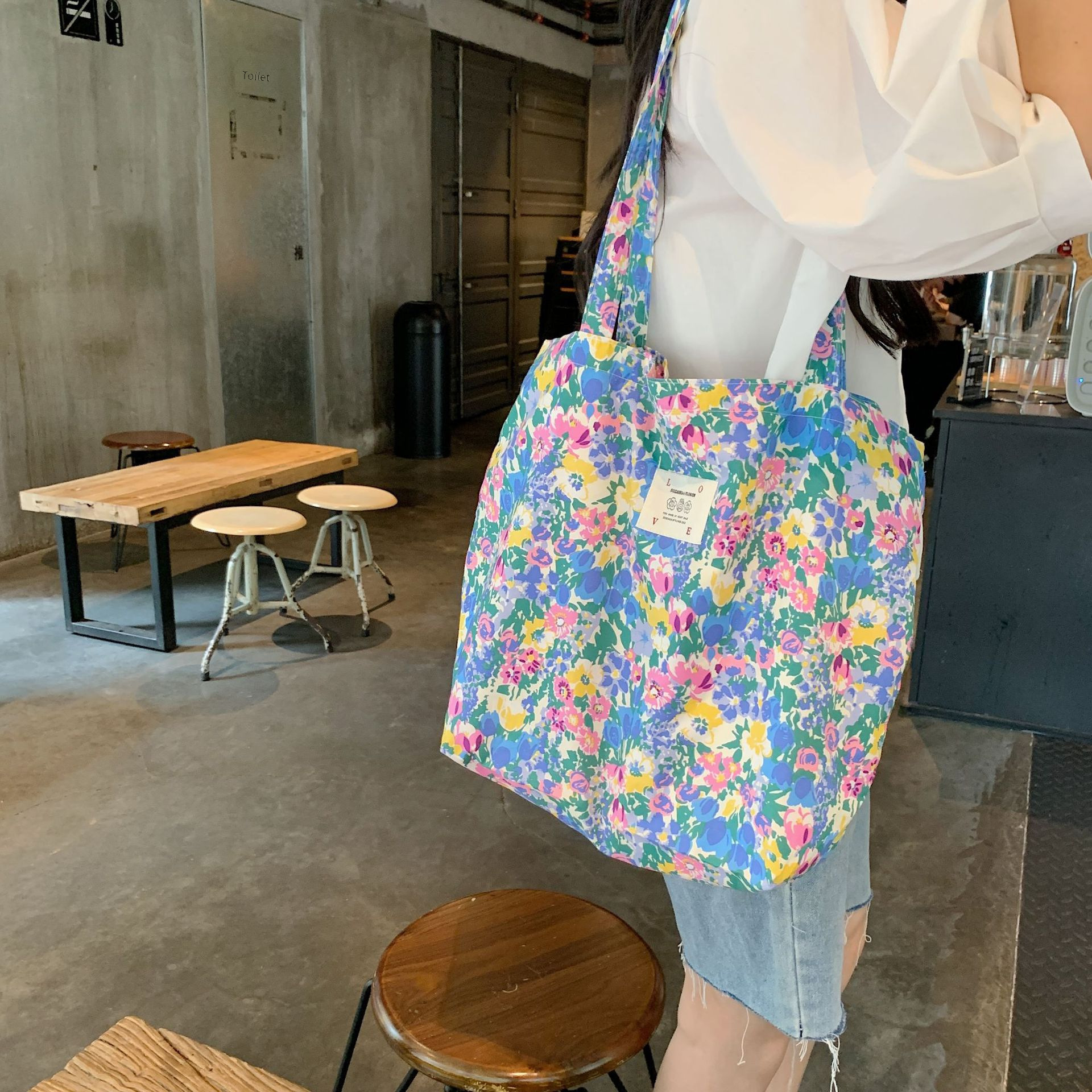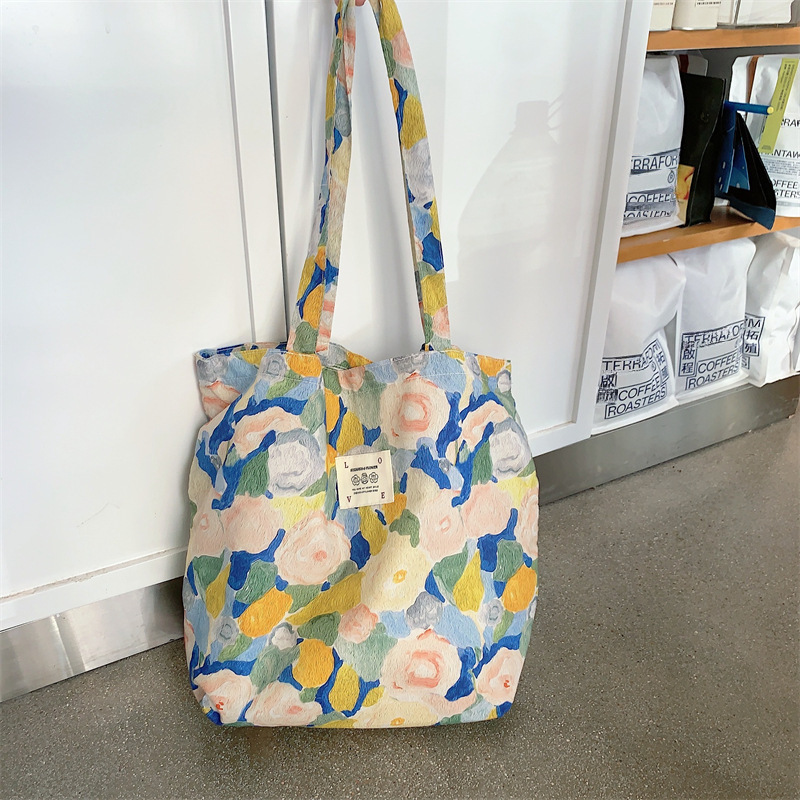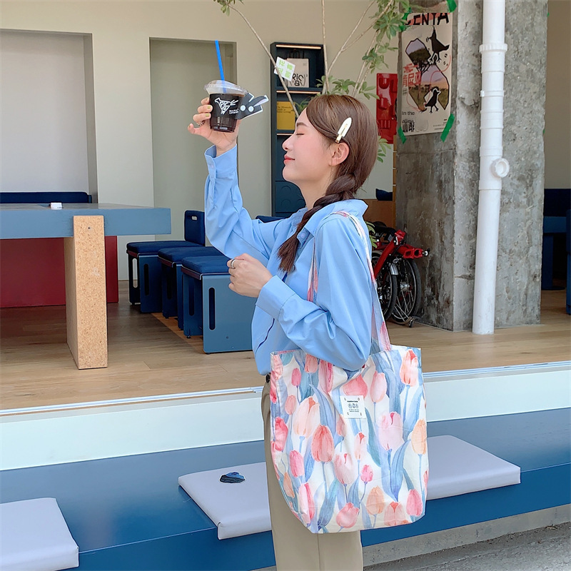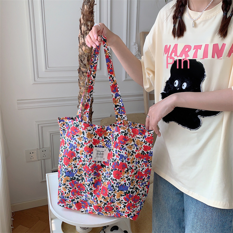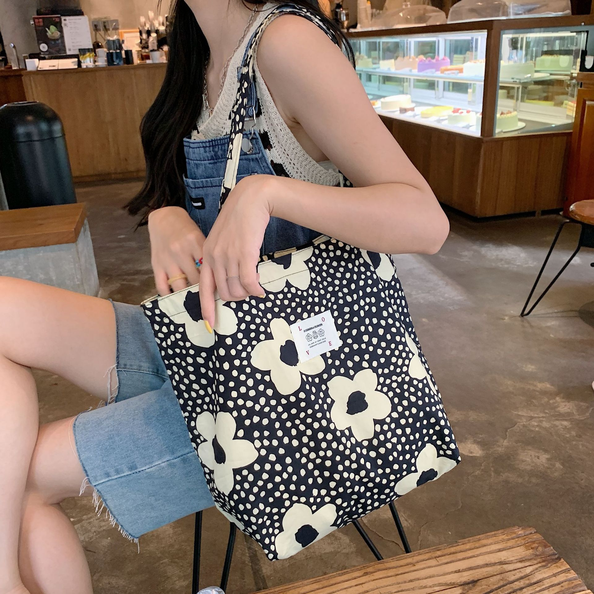 26101 new tote bag large capacity foreign air broken flower canvas shoulder bag portable female student shopping bag wholesale