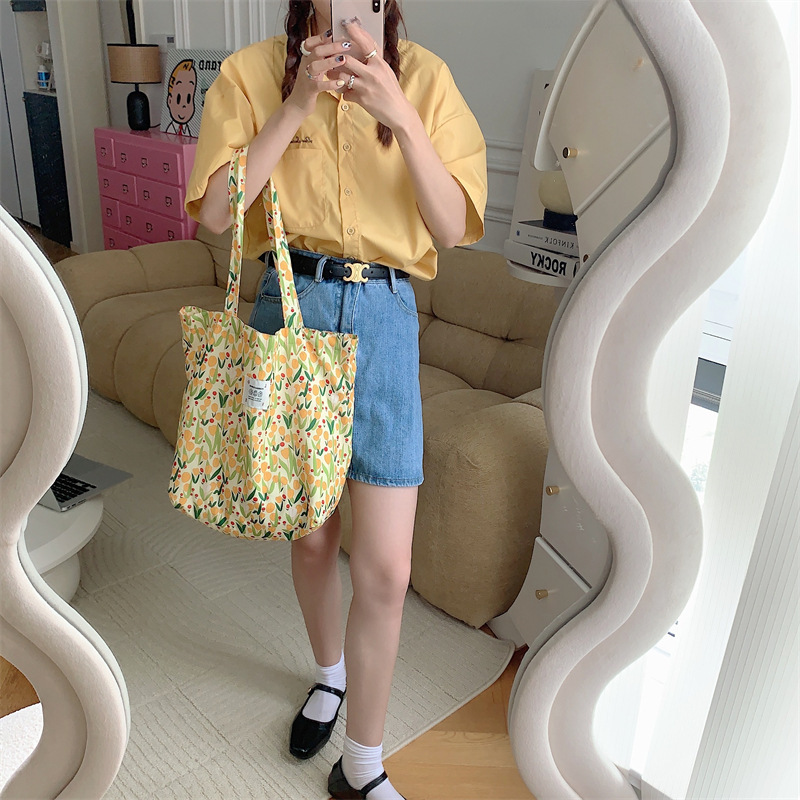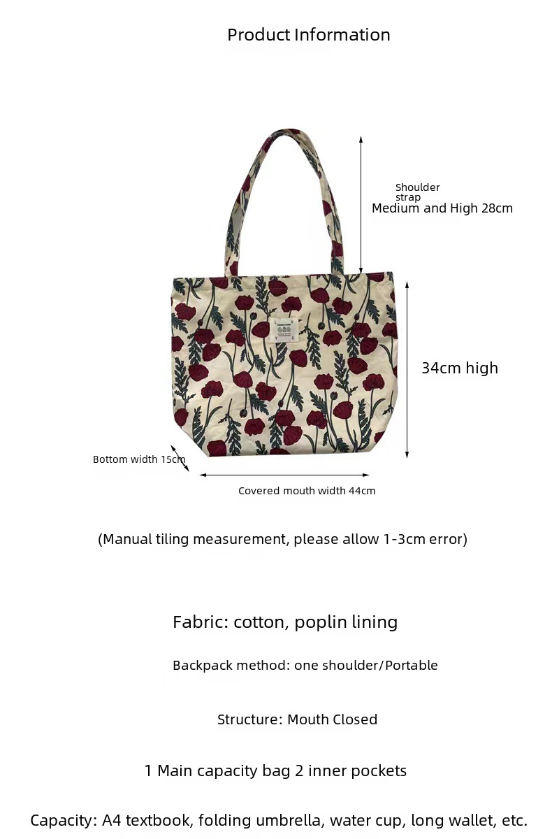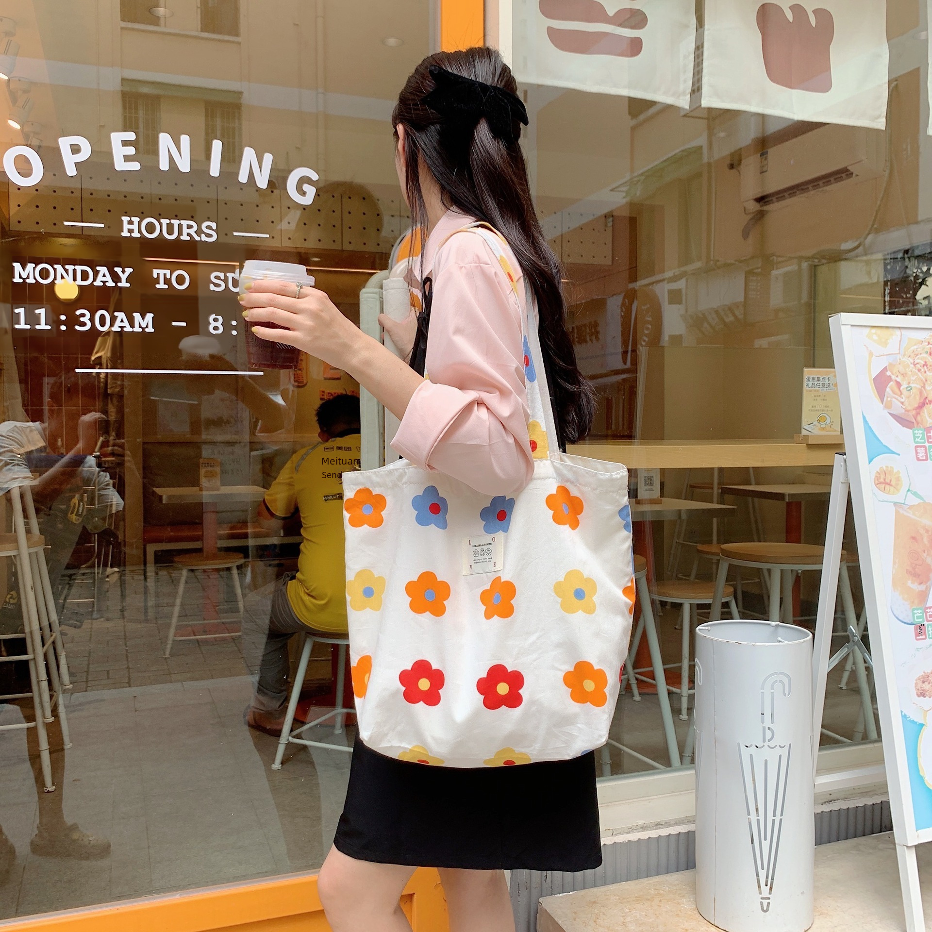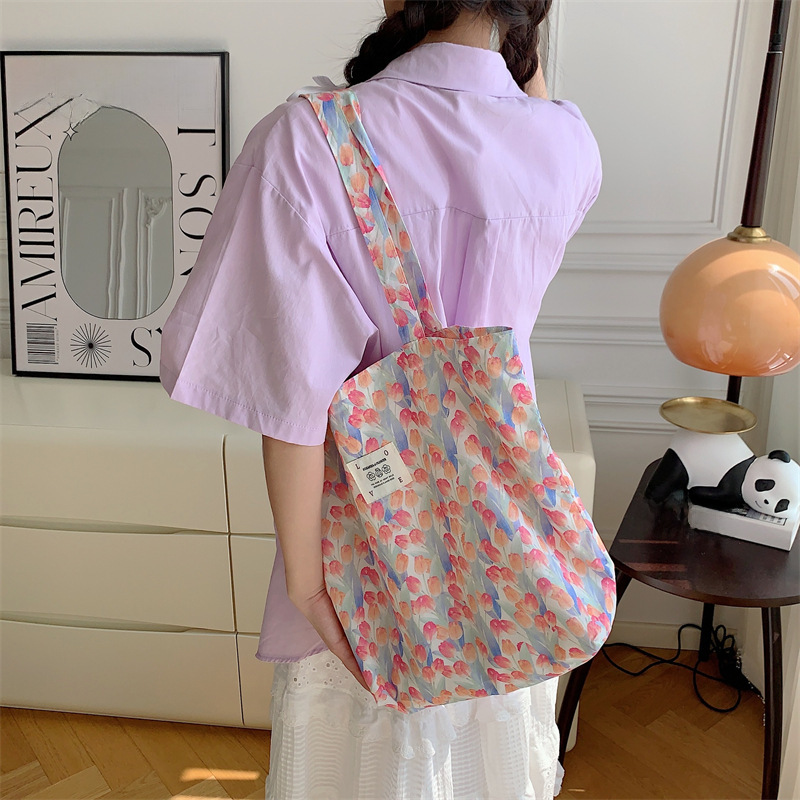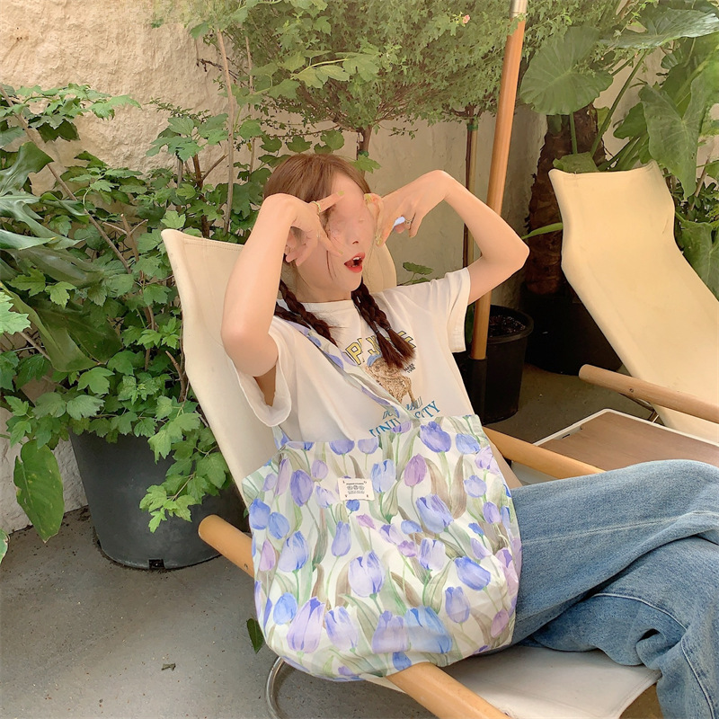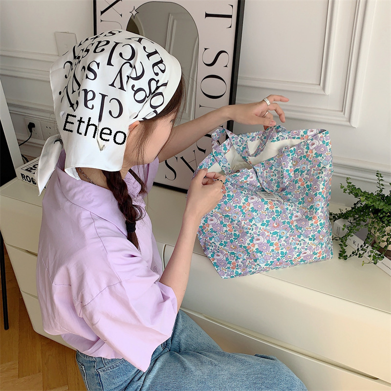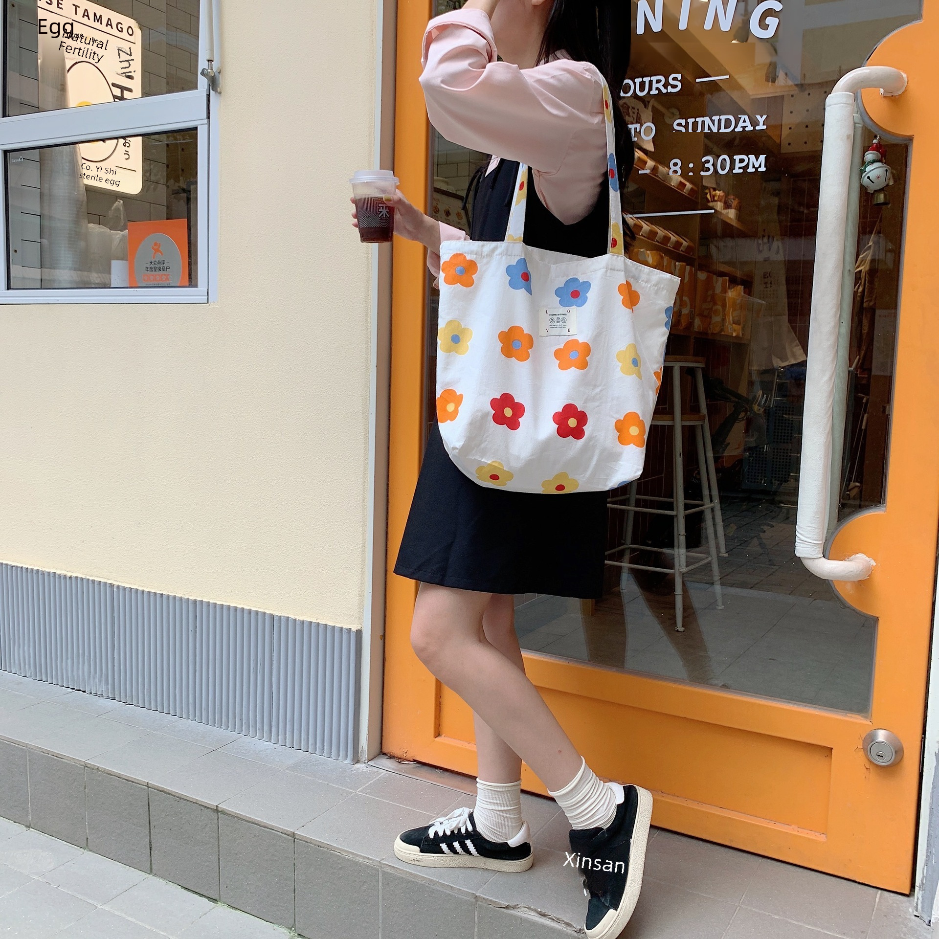 26101 new tote bag large capacity foreign air broken flower canvas shoulder bag portable female student shopping bag wholesale