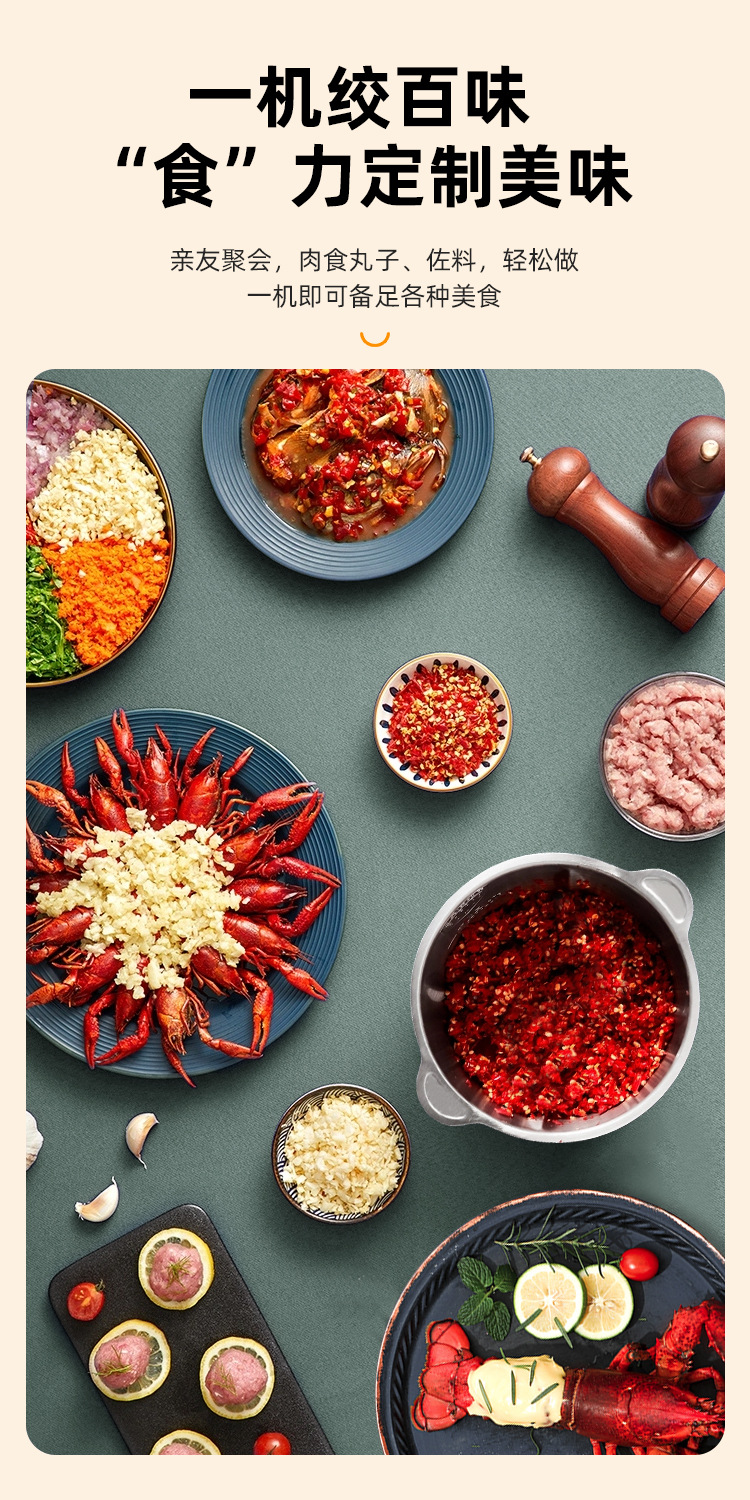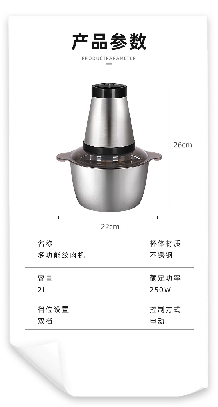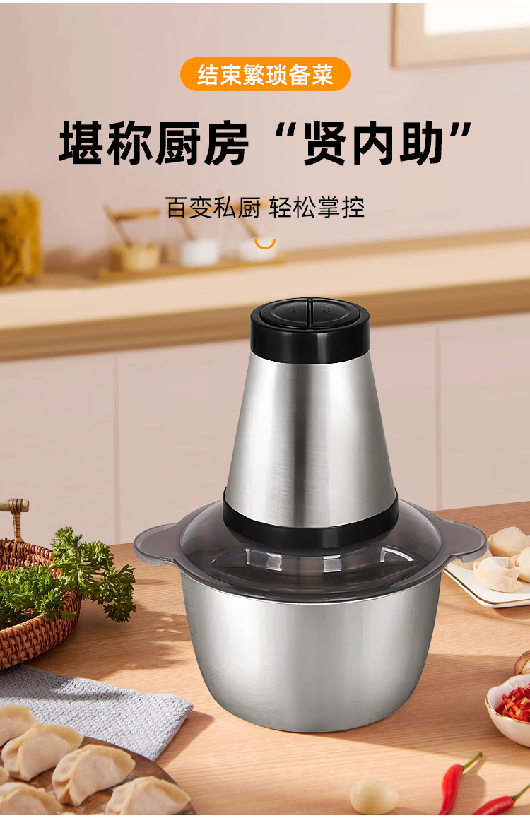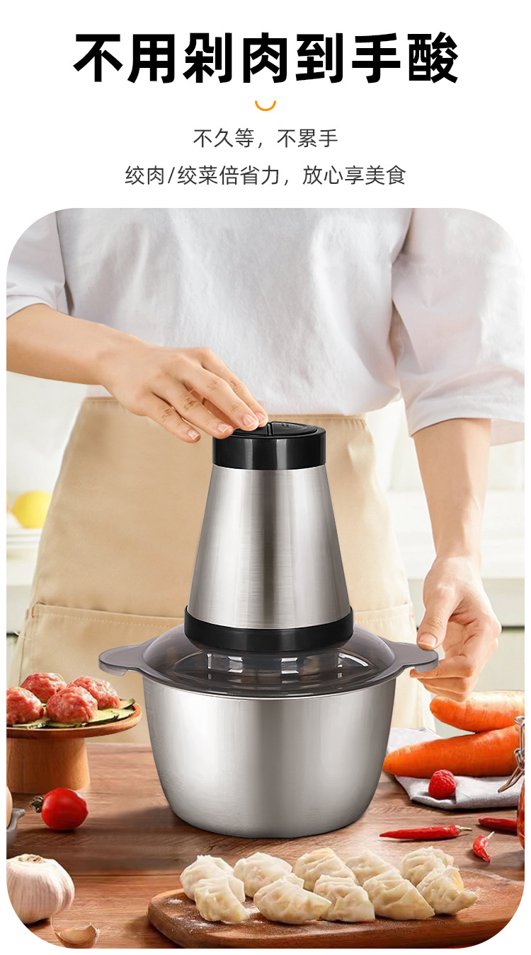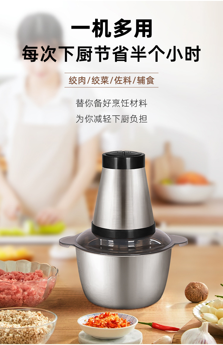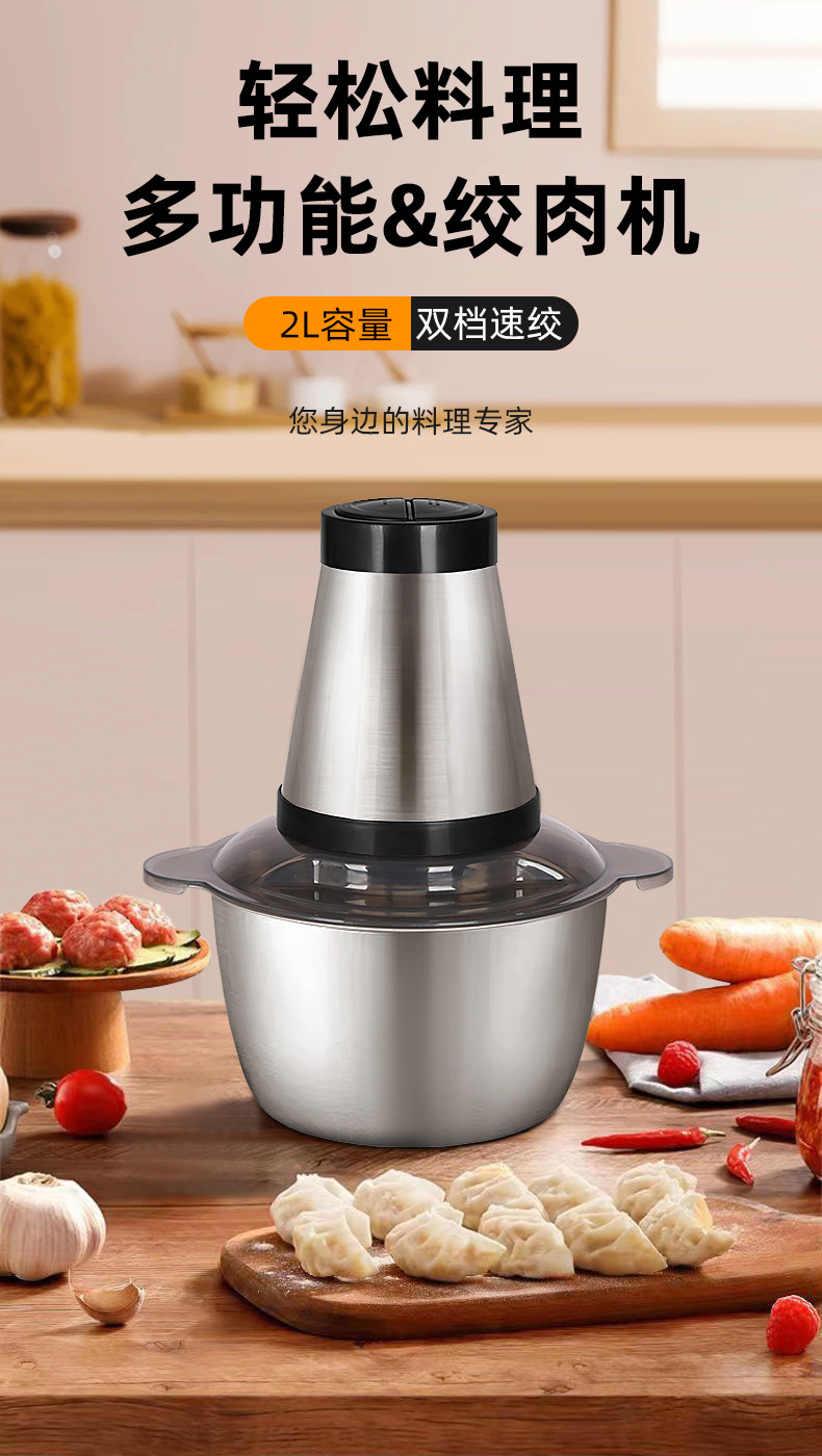 2L Stainless Steel Meat Grinder Household Multifunctional Cooking Stir Stuffing and Stuffing Mill Pepper Grinder