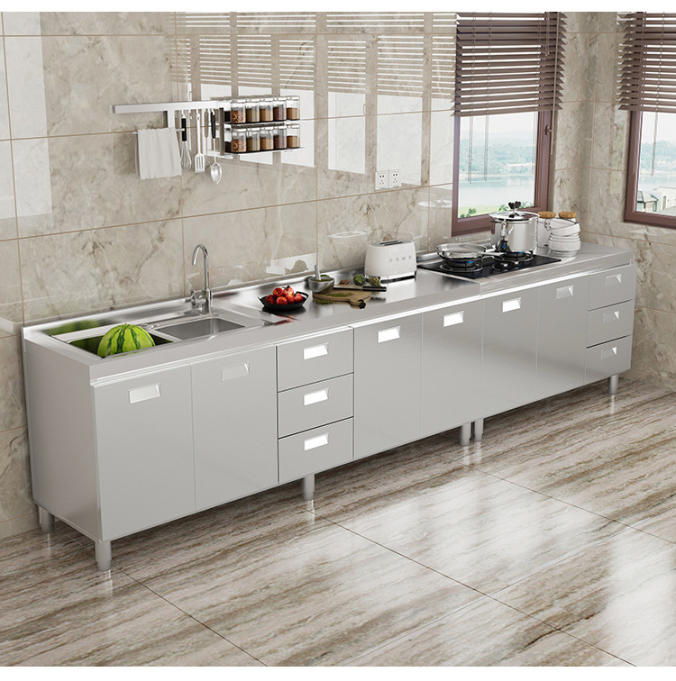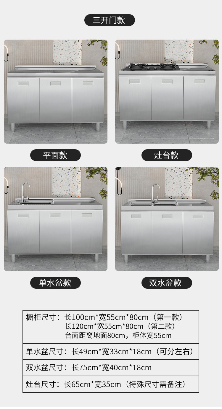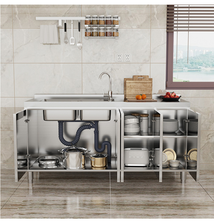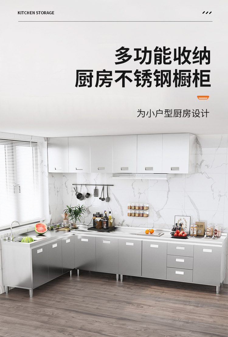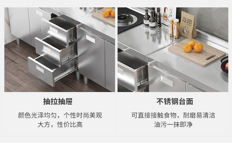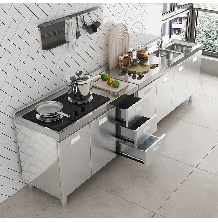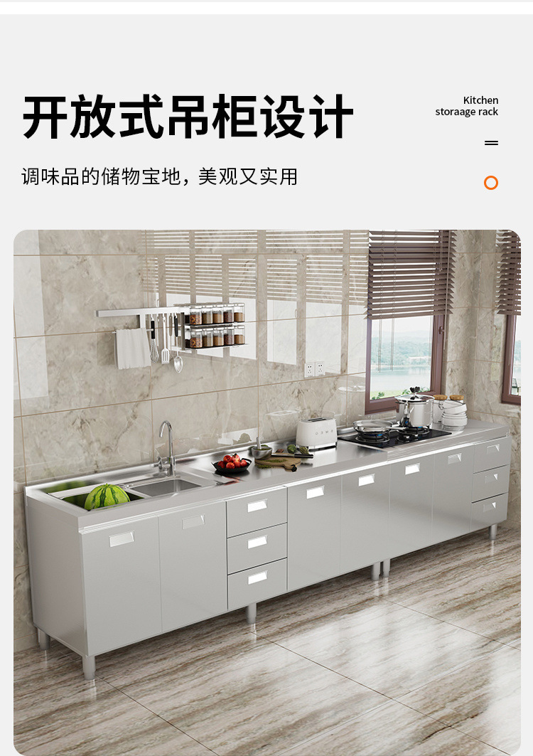 304 Integral Stainless Steel Kitchen Cabinet Household Simple Stove Integrated Household Economical Rural Storage Cupboard