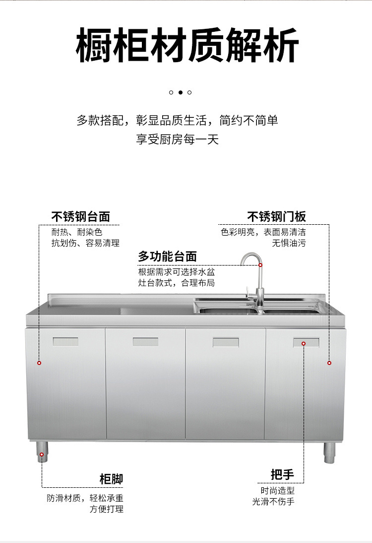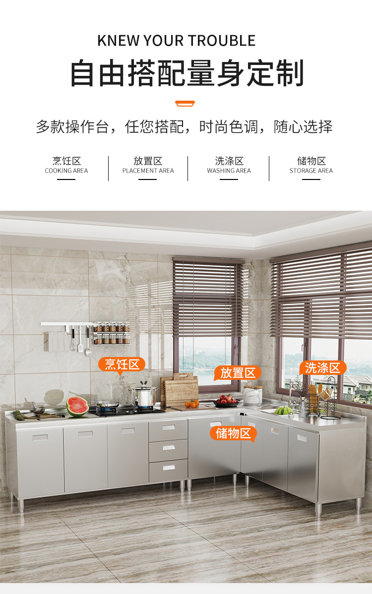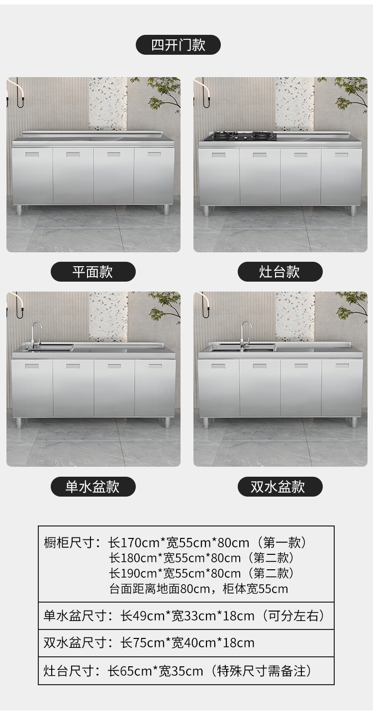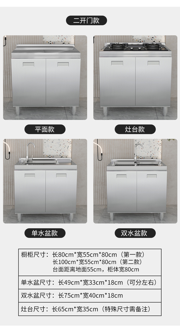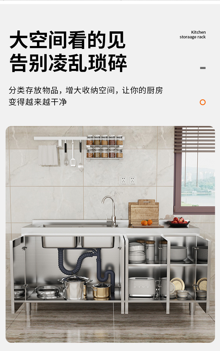 304 Integral Stainless Steel Kitchen Cabinet Household Simple Stove Integrated Household Economical Rural Storage Cupboard