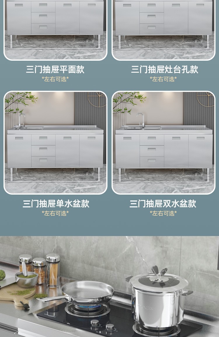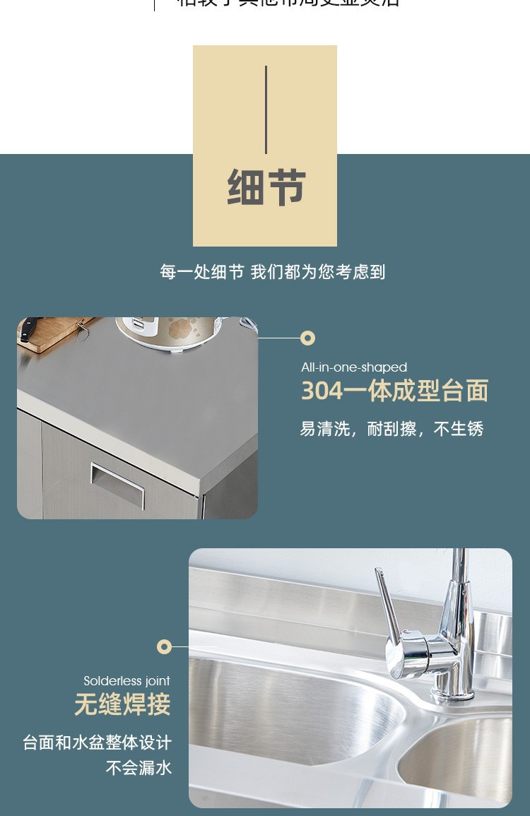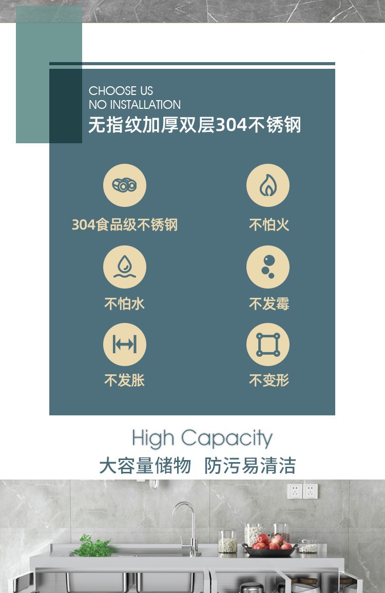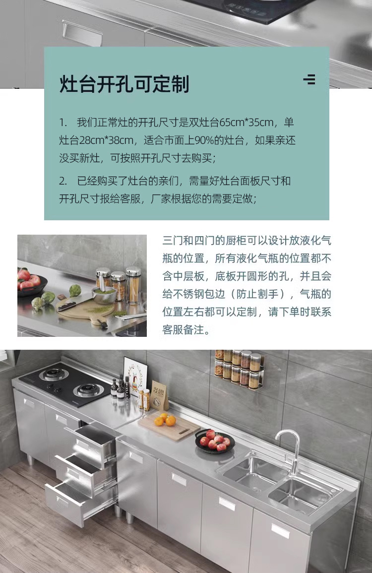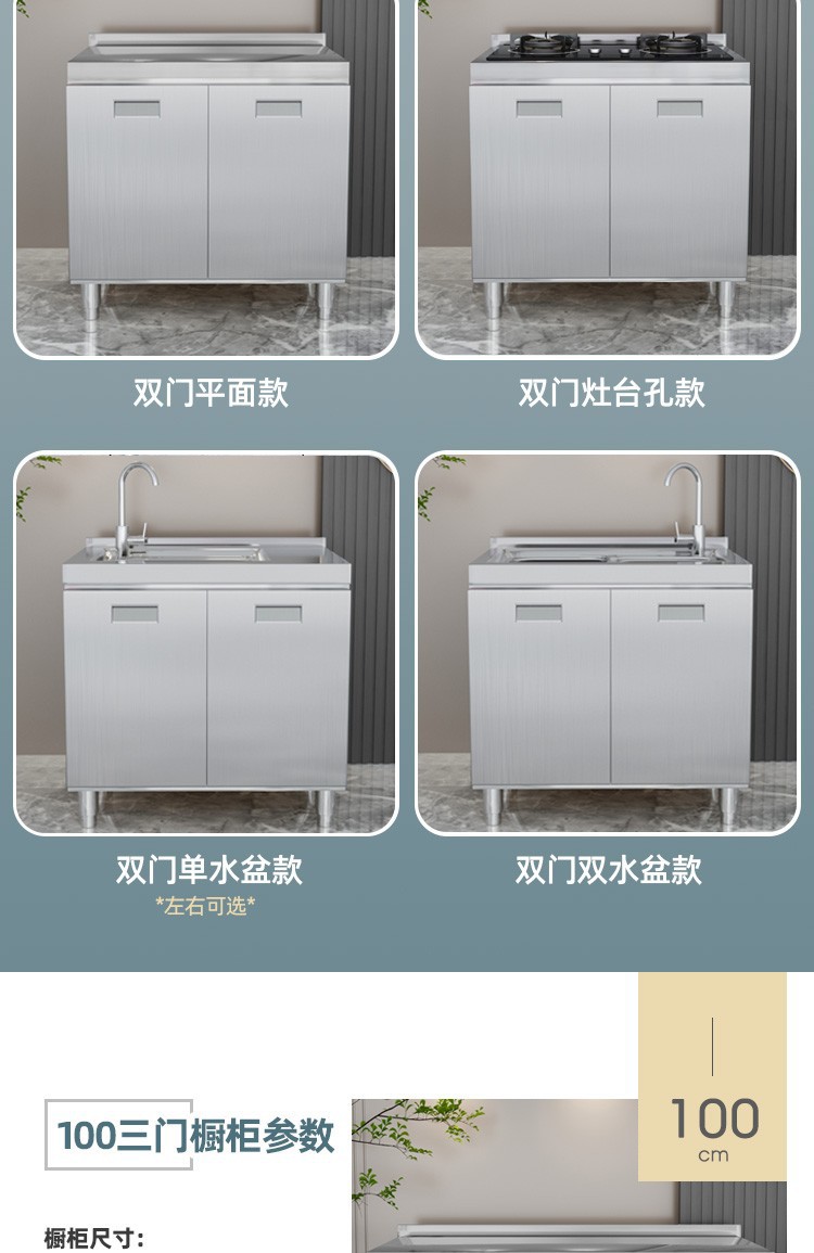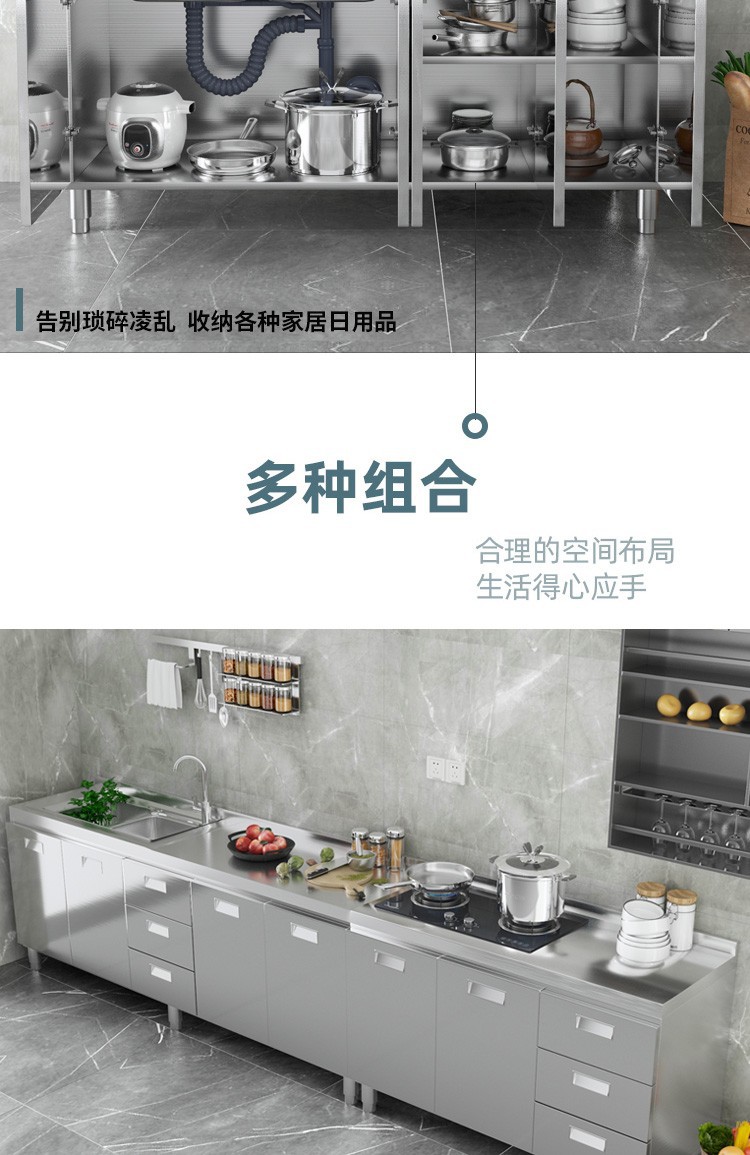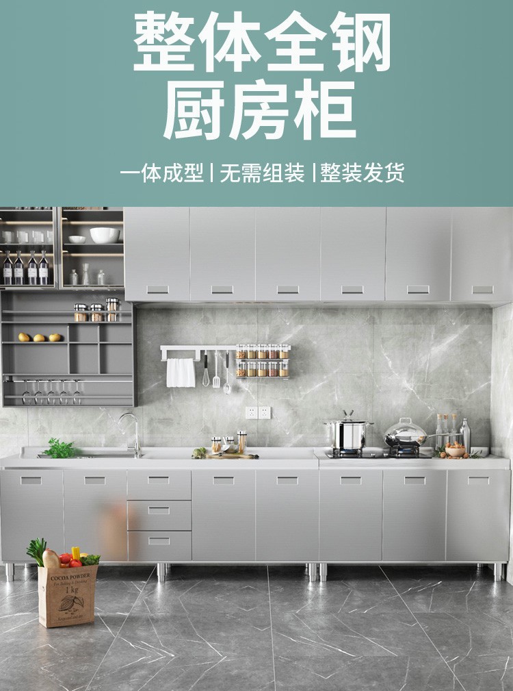 304 Integral Stainless Steel Kitchen Cabinet Household Stove Integrated Rural Kitchen Storage Cupboard Household Small Apartment