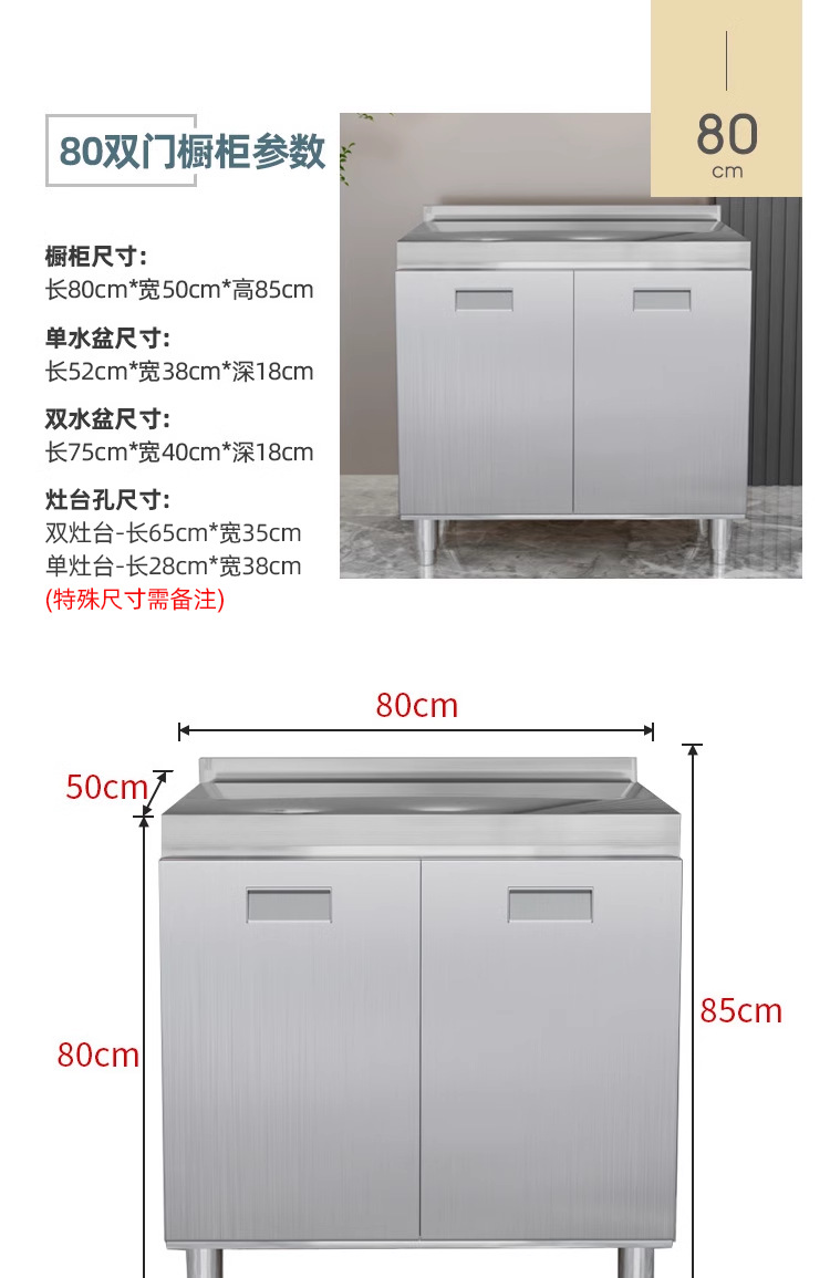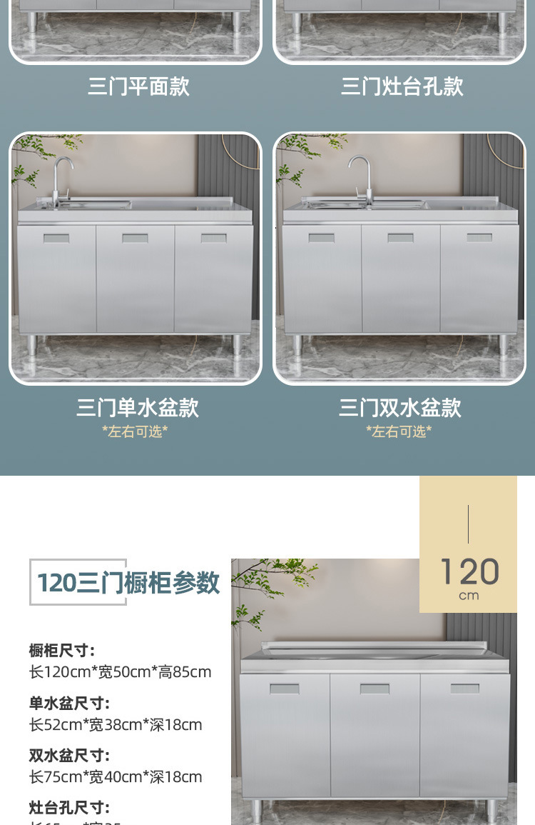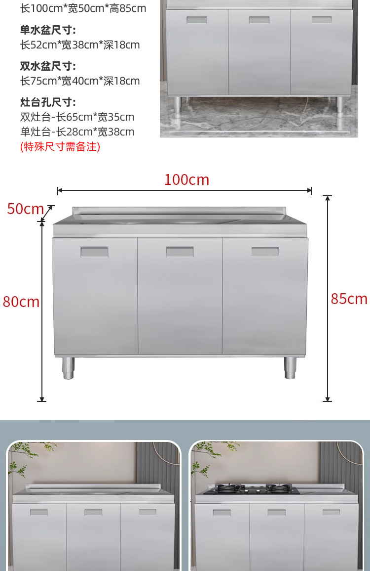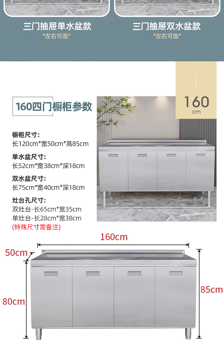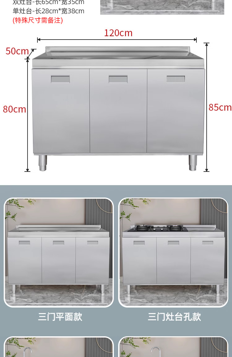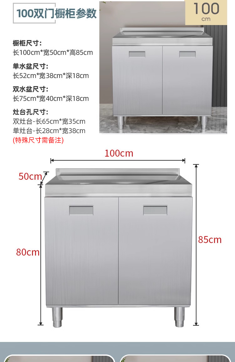 304 Integral Stainless Steel Kitchen Cabinet Household Stove Integrated Rural Kitchen Storage Cupboard Household Small Apartment