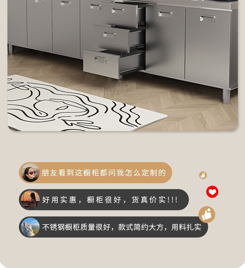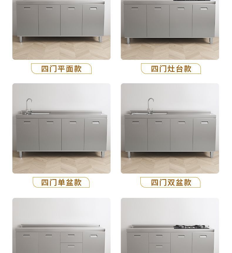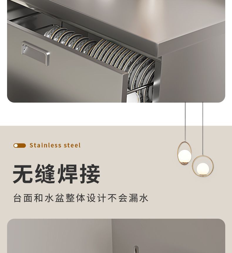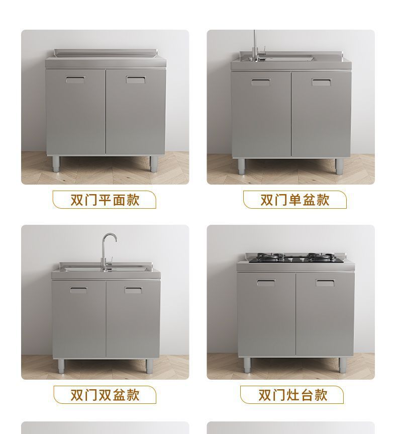 304 Integral Thickened Stainless Steel Cabinet Installation Free Integrated Kitchen Stove Counter Cabinet Household Small Apartment