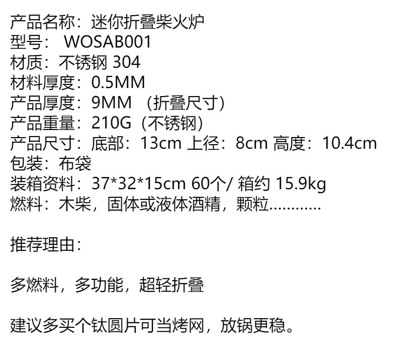 304 Stainless Steel Mini Folding Camping Windproof Firewood Stove Outdoor Portable Folding Alcohol Stove Barbecue Stove