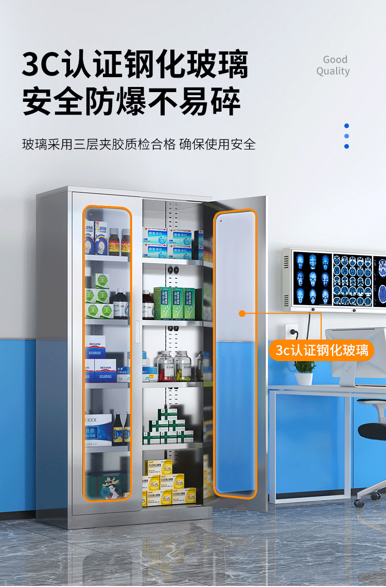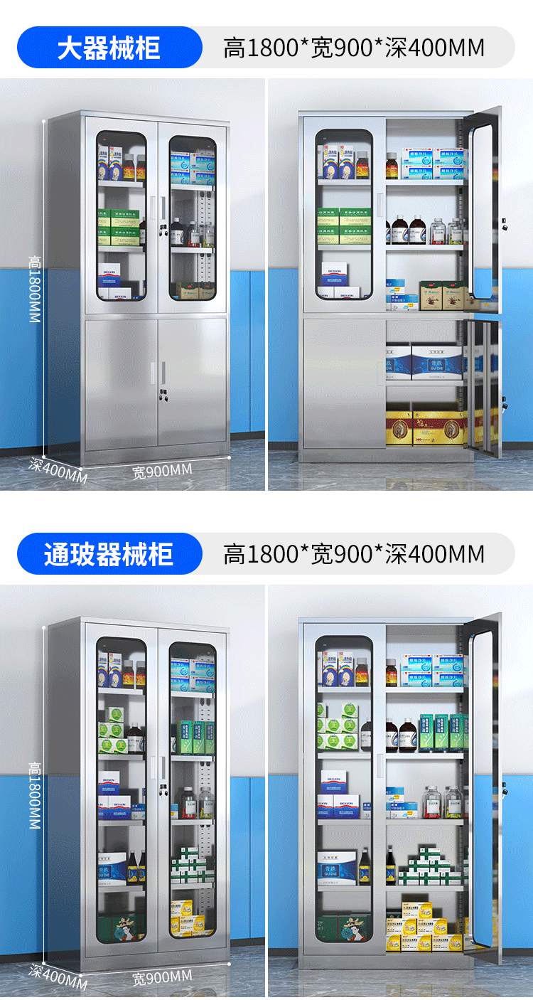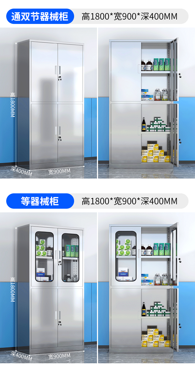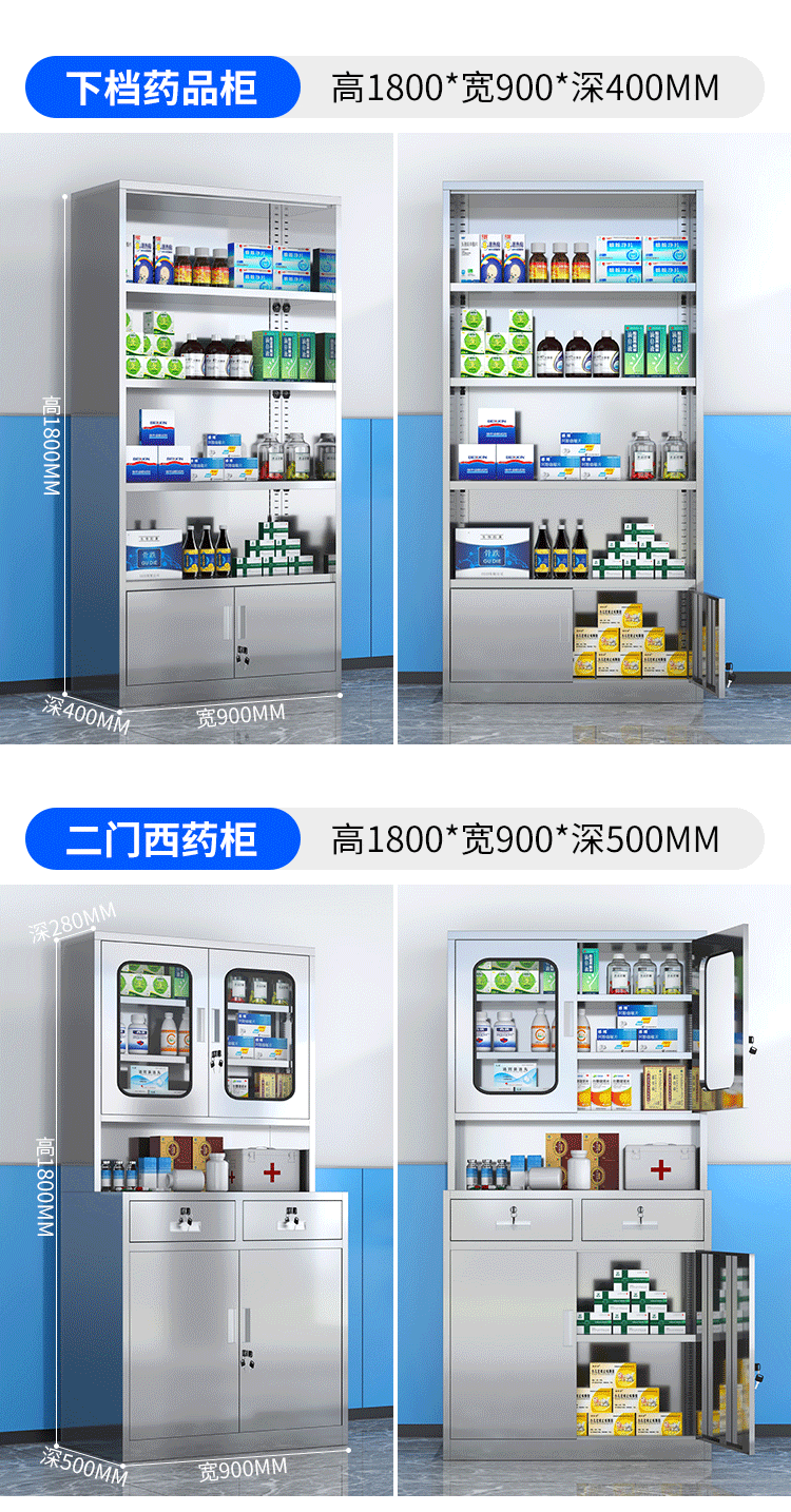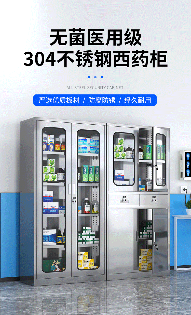 - Stainless steel two-door western medicine cabinet