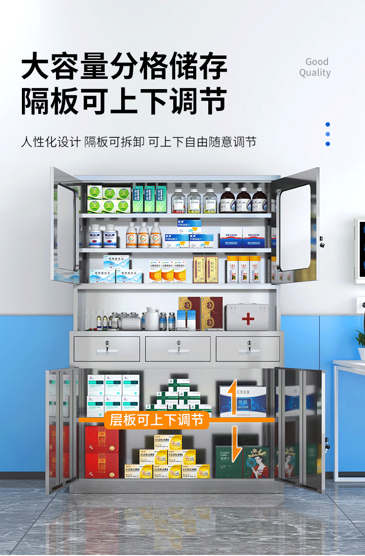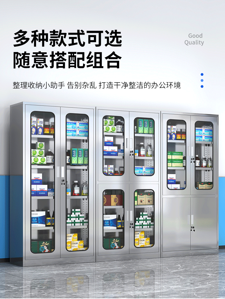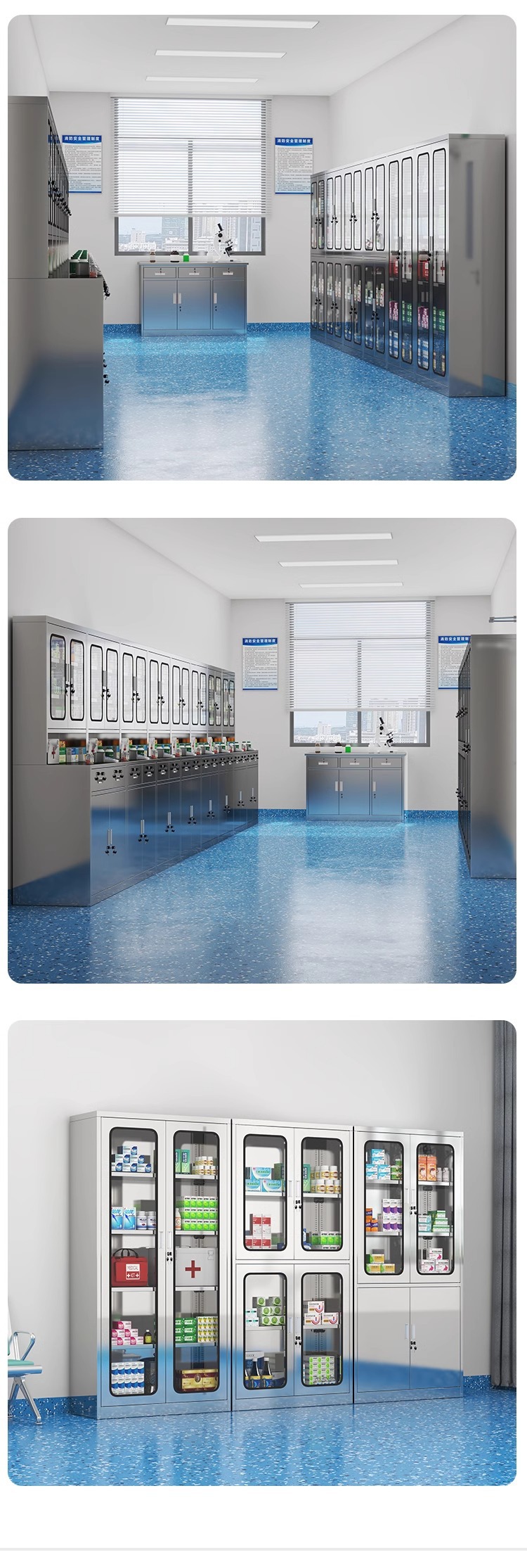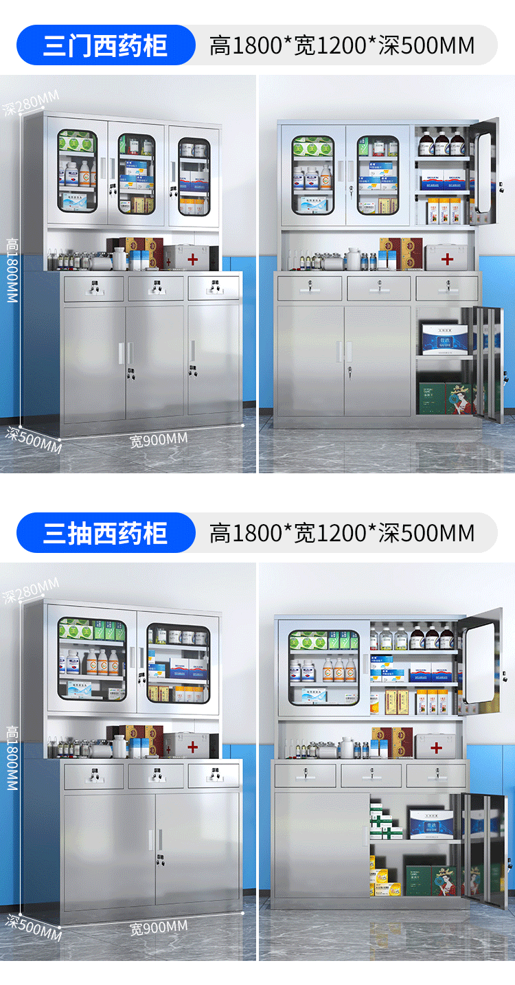 - Stainless steel three-pumping western medicine cabinet