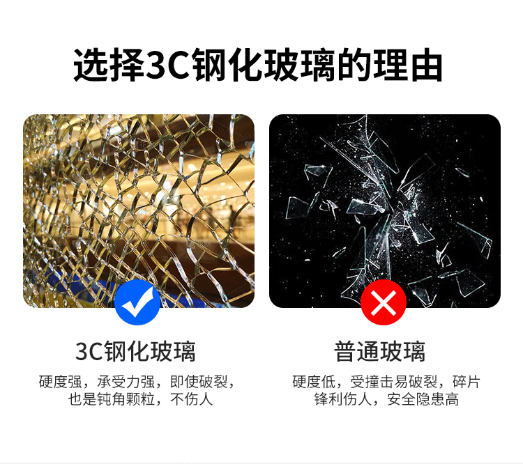 - Stainless steel glass opposite door