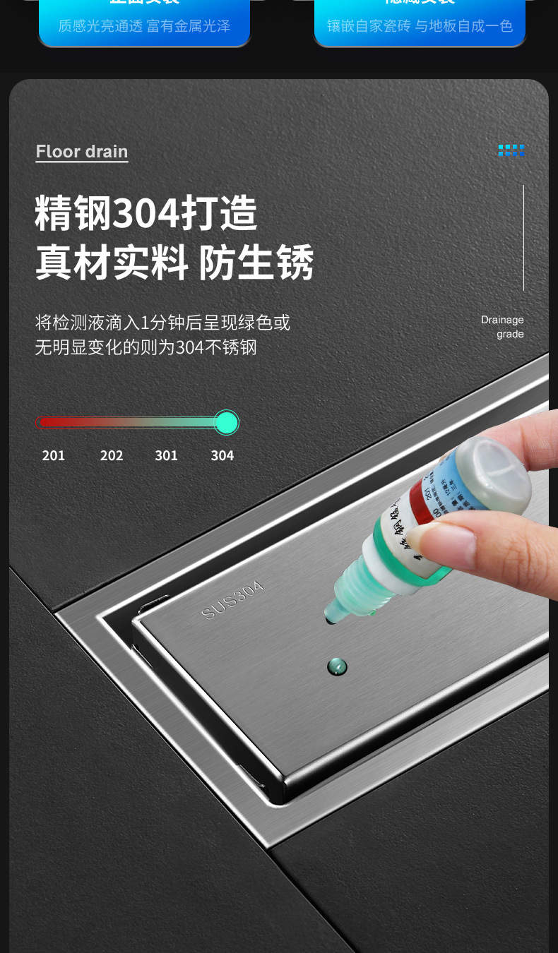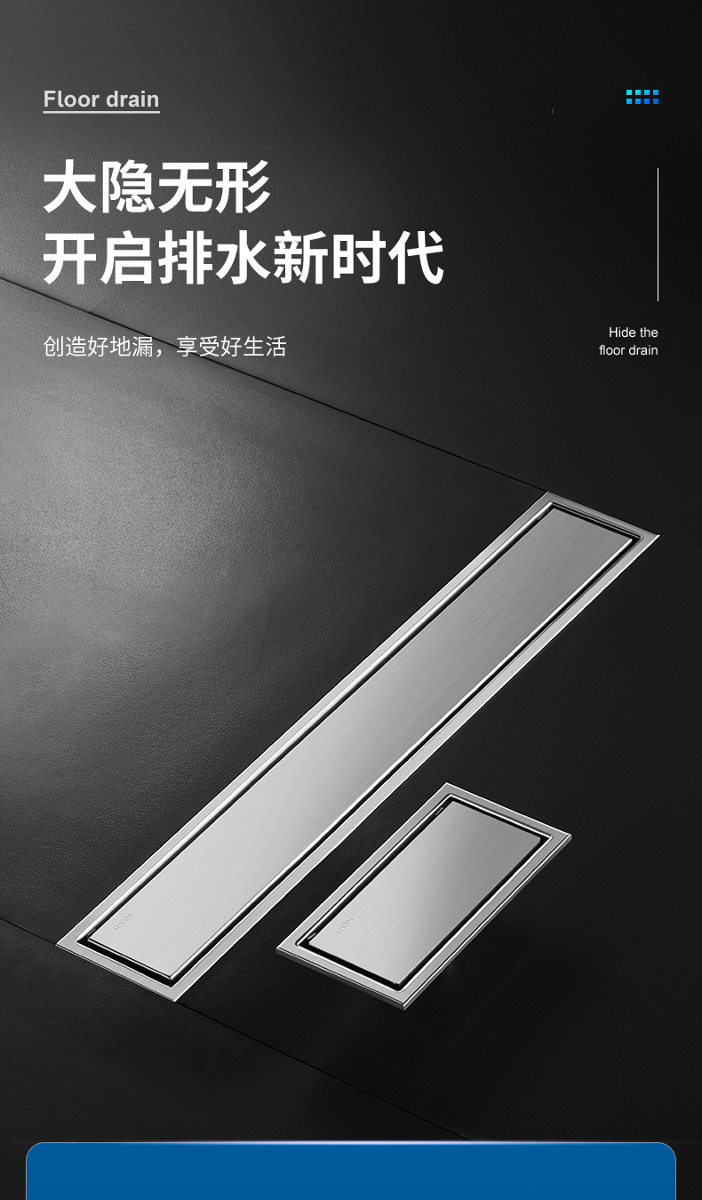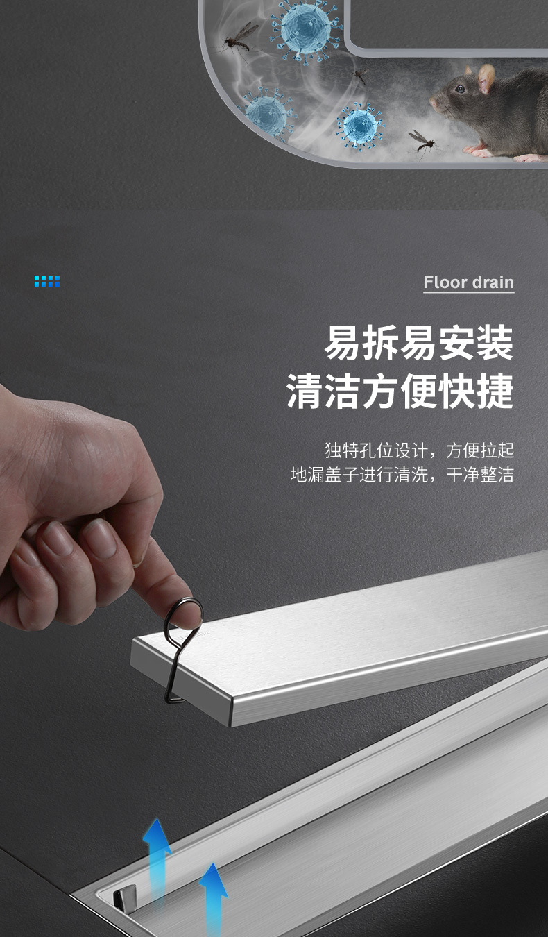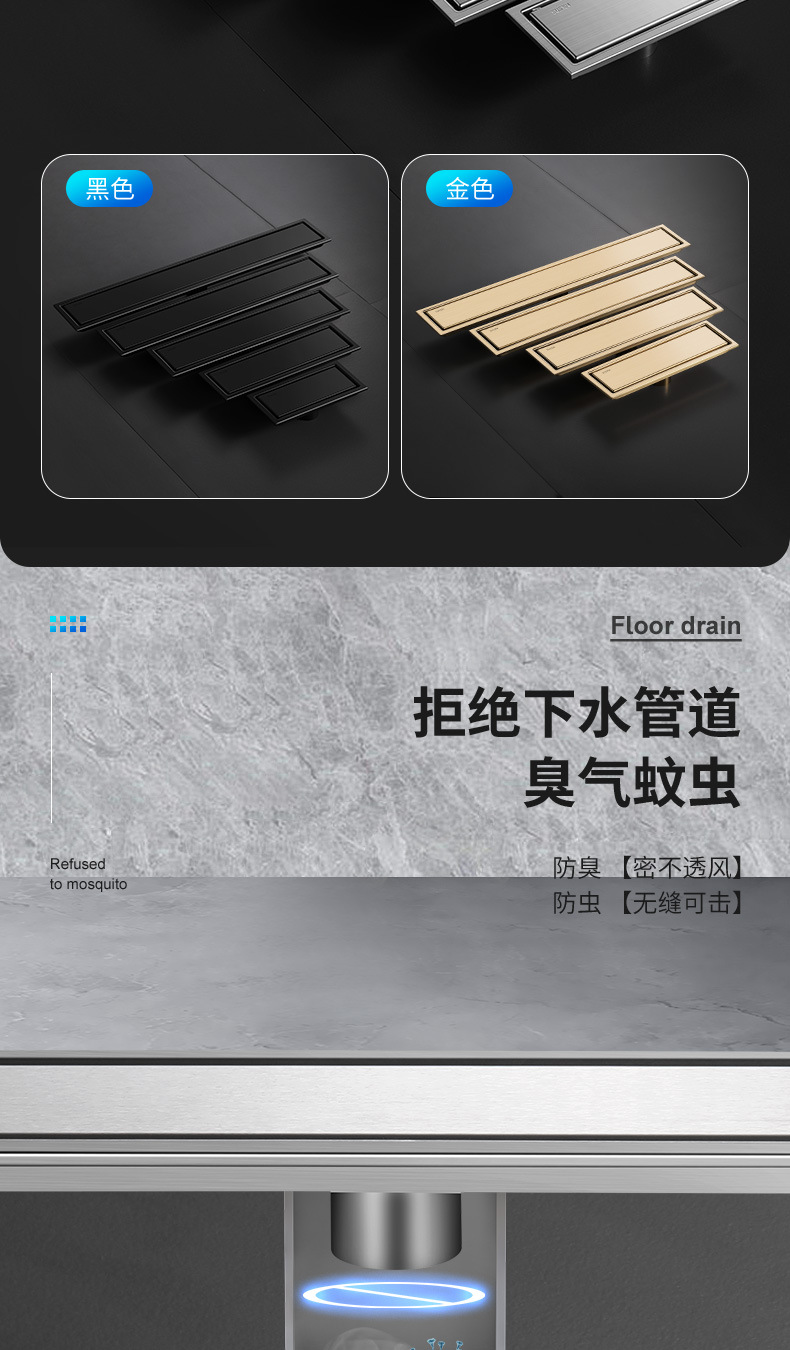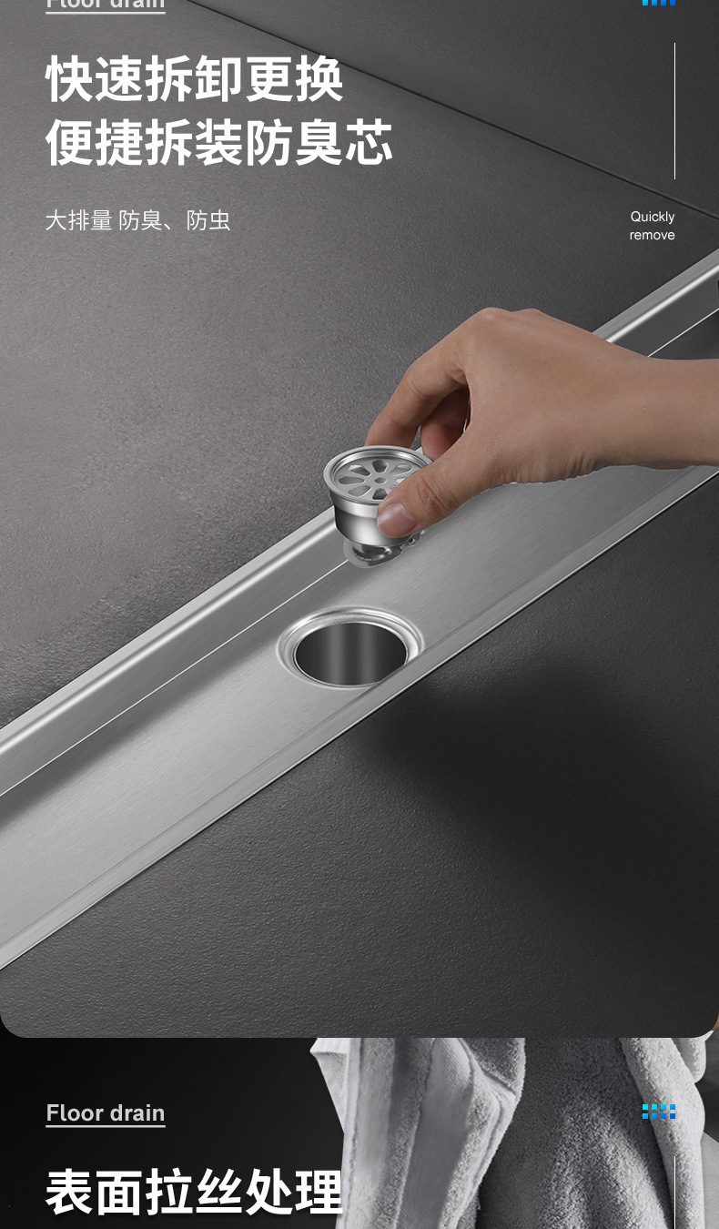 304 stainless steel rectangular invisible floor drain Golden hidden extended floor drain toilet sewer deodorant