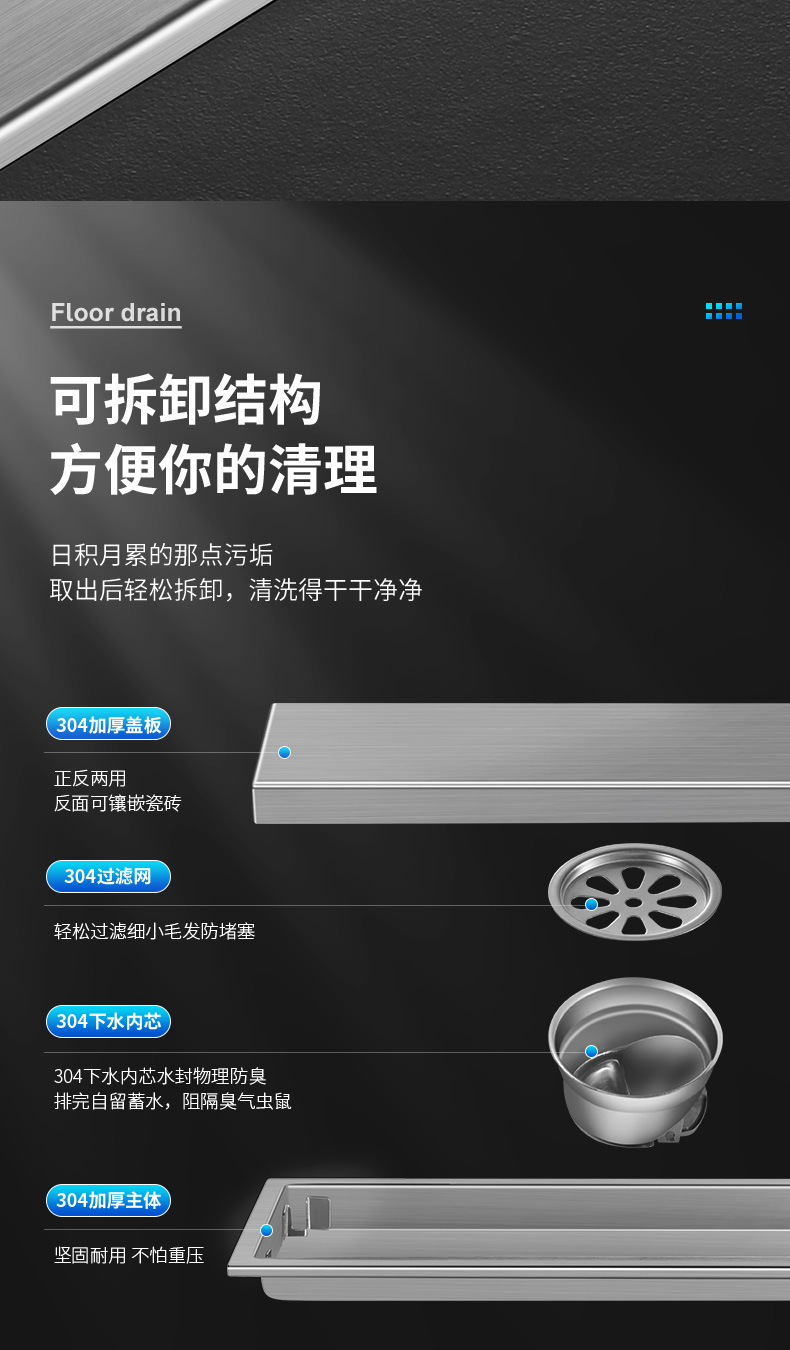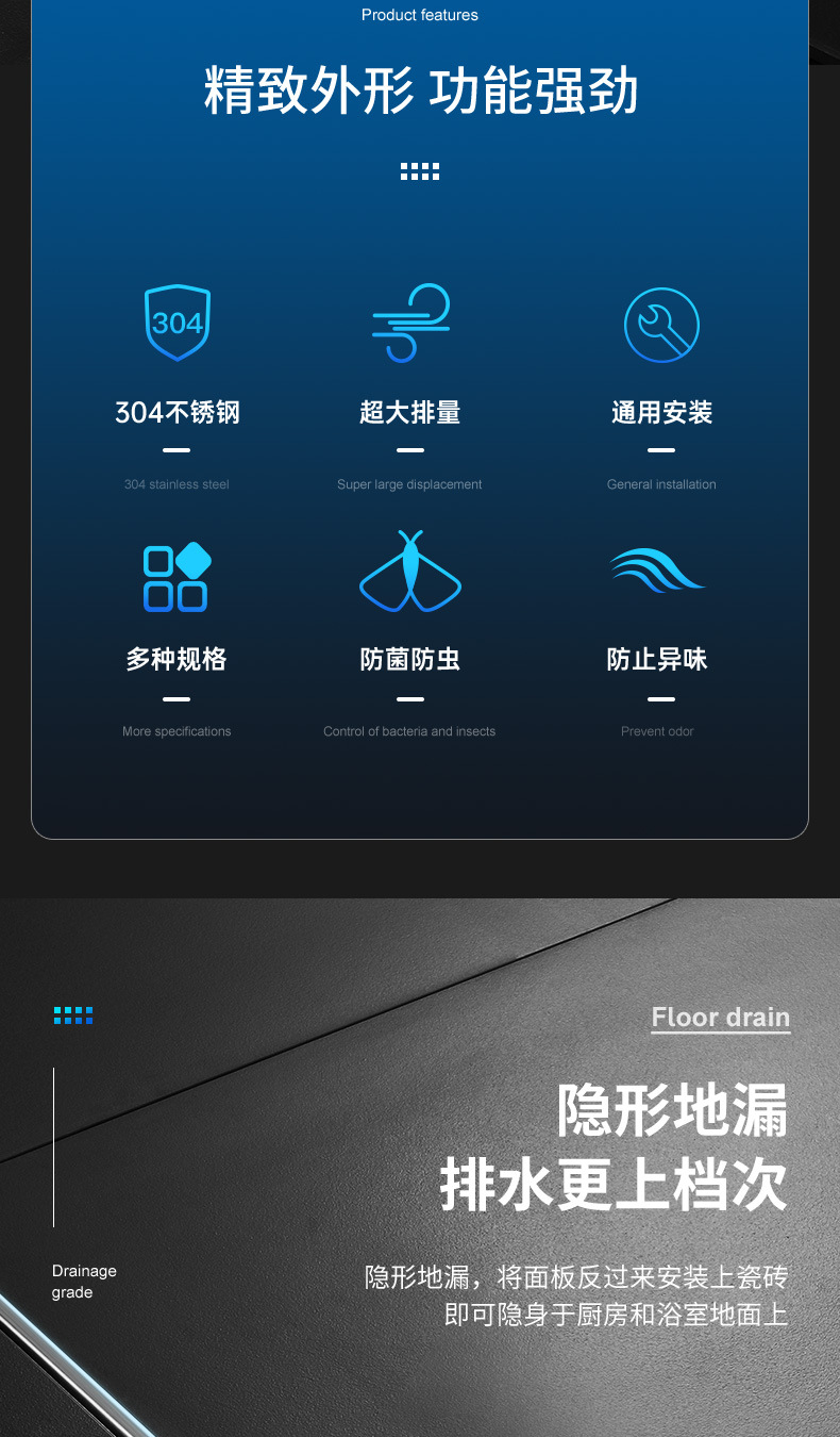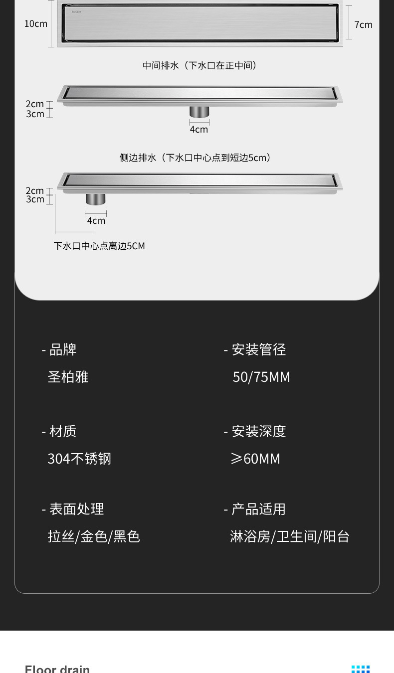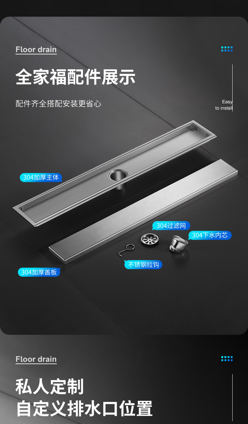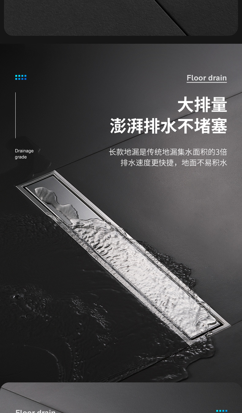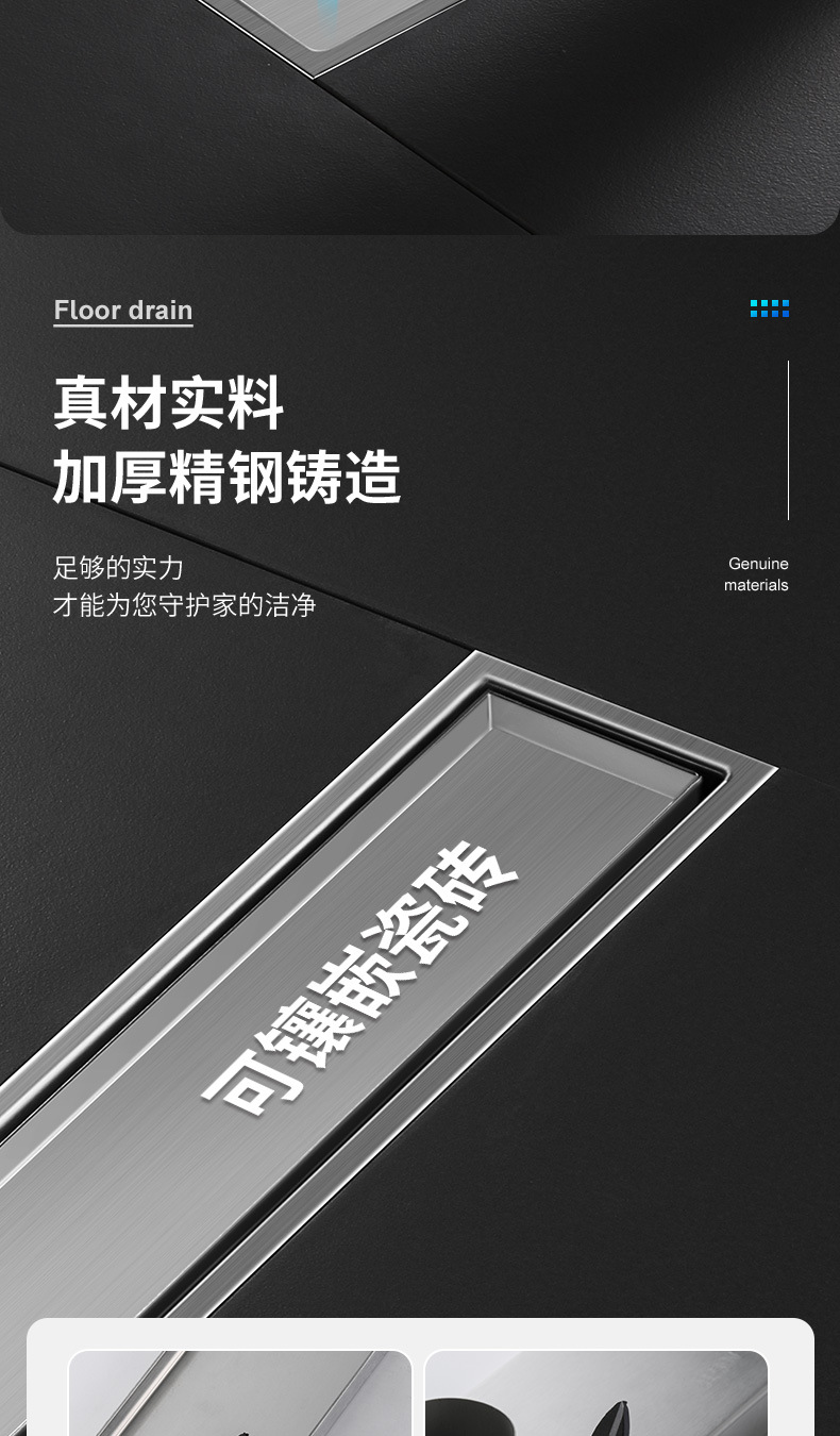 304 stainless steel rectangular invisible floor drain Golden hidden extended floor drain toilet sewer deodorant