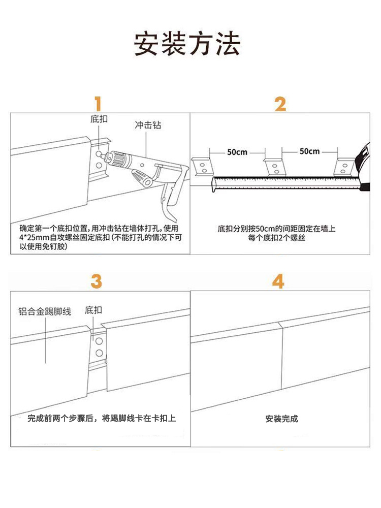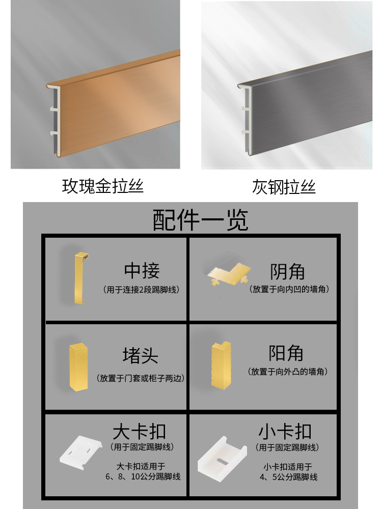 304 stainless steel skirting aluminum alloy metal foot line pvc buckle self loading 201 decorative wire board 4 6 8cm