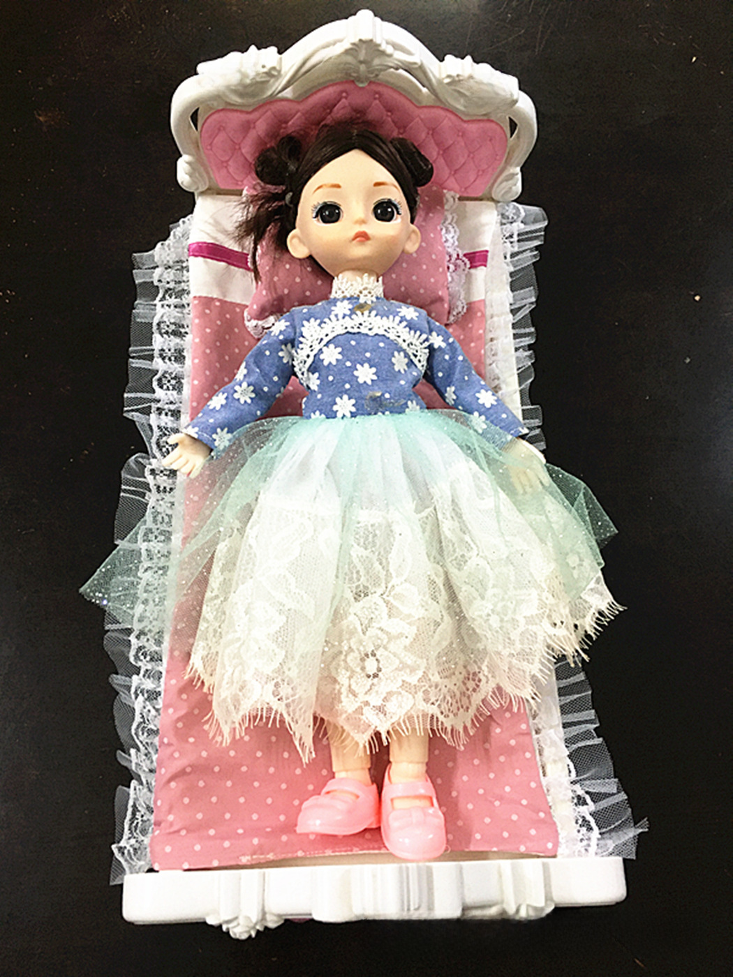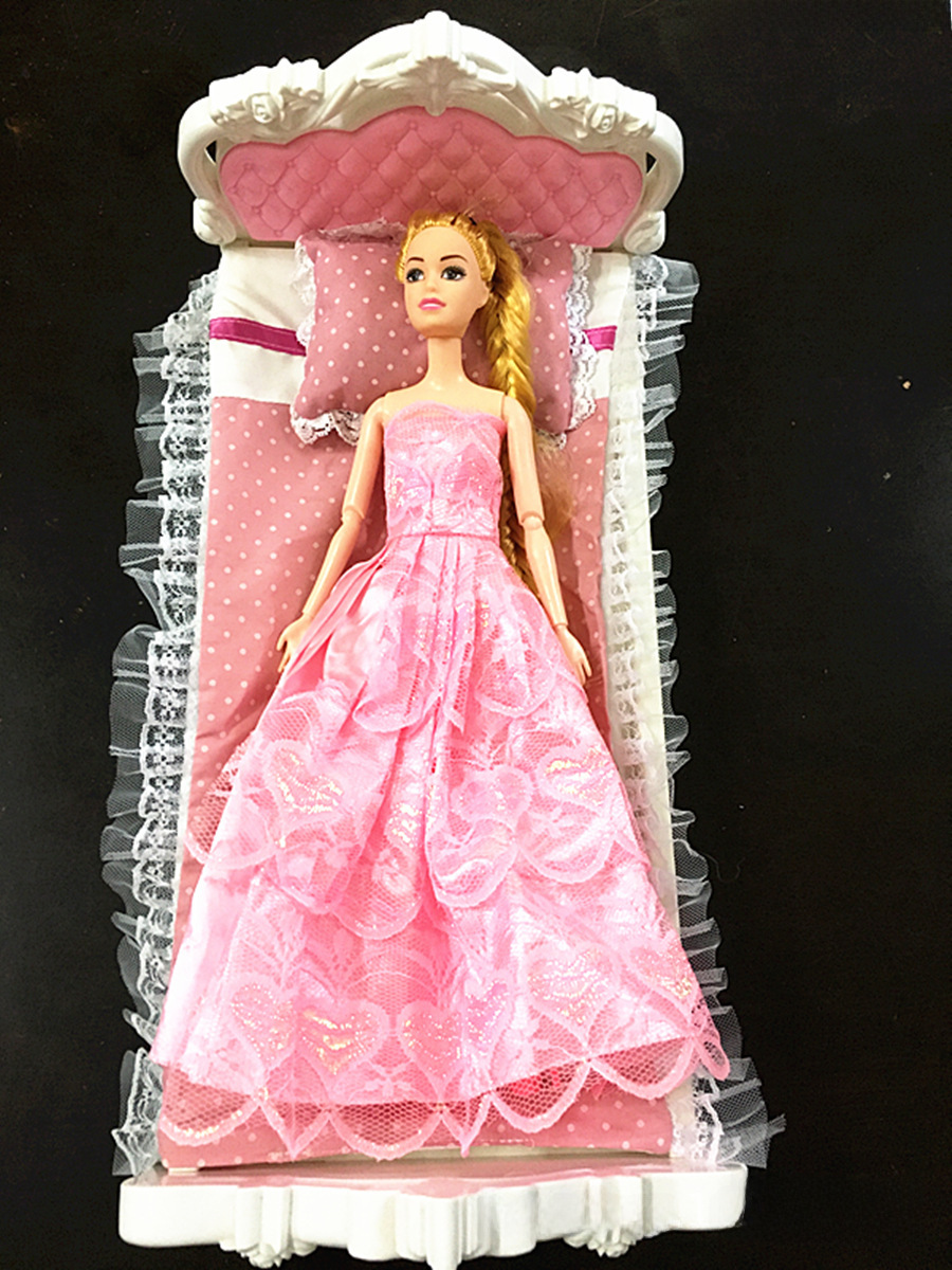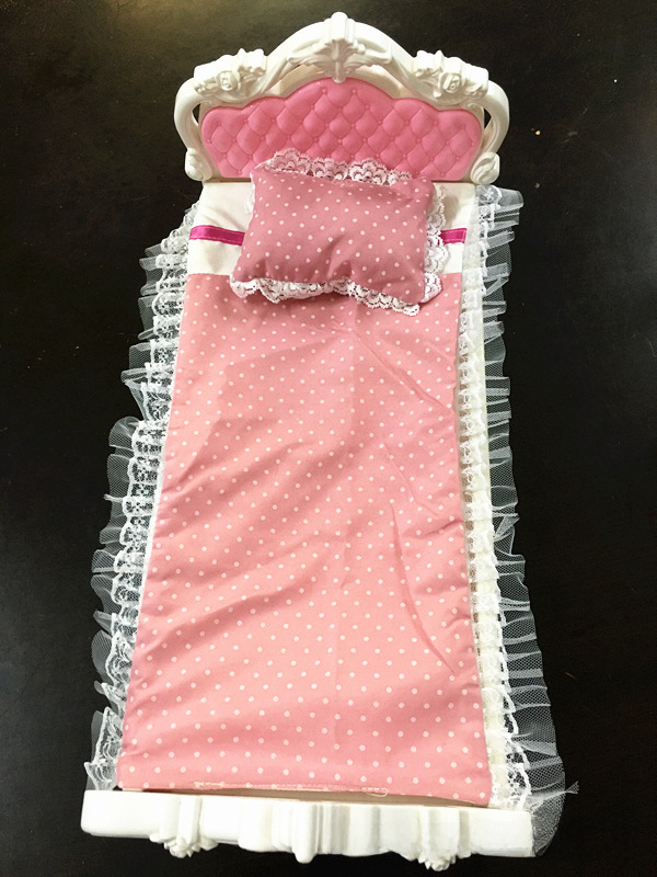 35.8cm long ABS European doll double bed pillow quilt bed house bedroom accessories 210g
