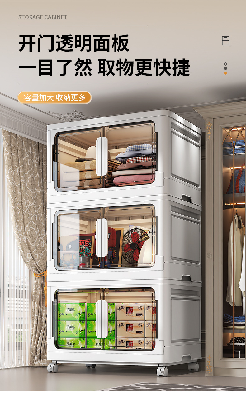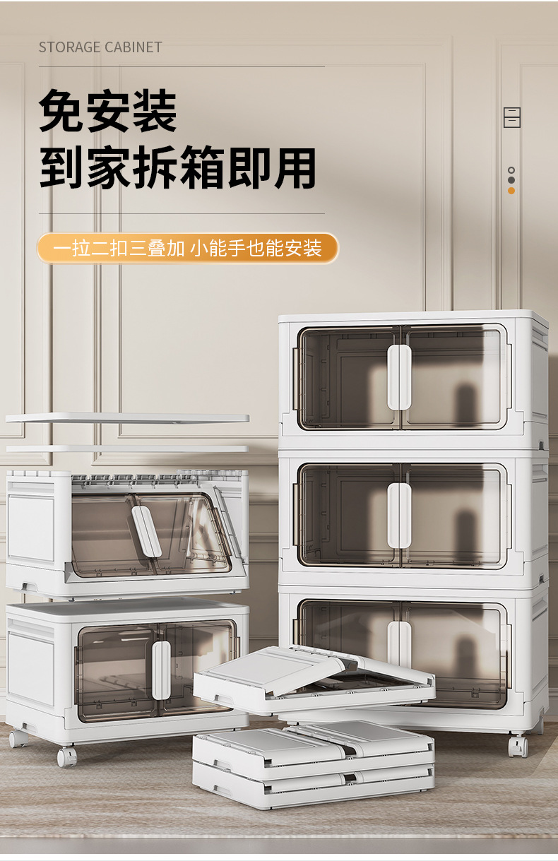 40-80 Width Folding Storage Box Magnetic Suction Plastic Storage Cabinet Installation-Free Grocery Cabinet Shoe Cabinet Clothes Storage Cabinet