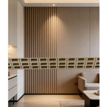 This wall panel is made of eco-friendly bamboo and wood fiber materials, with stable performance, high strength and good sound insulation.It features a bridge hole hollow structure, which is lightweight, material-saving, not easy to deform, and has excellent waterproof, moisture-proof, mildew-proof and anti-corrosion properties.