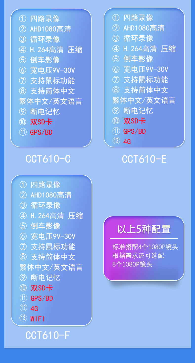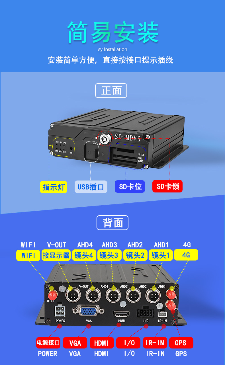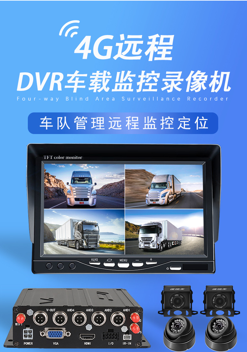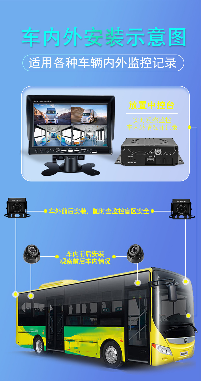 4G network vehicle mounted video positioning recorder 4 way camera bus truck bus inside and outside monitoring equipment