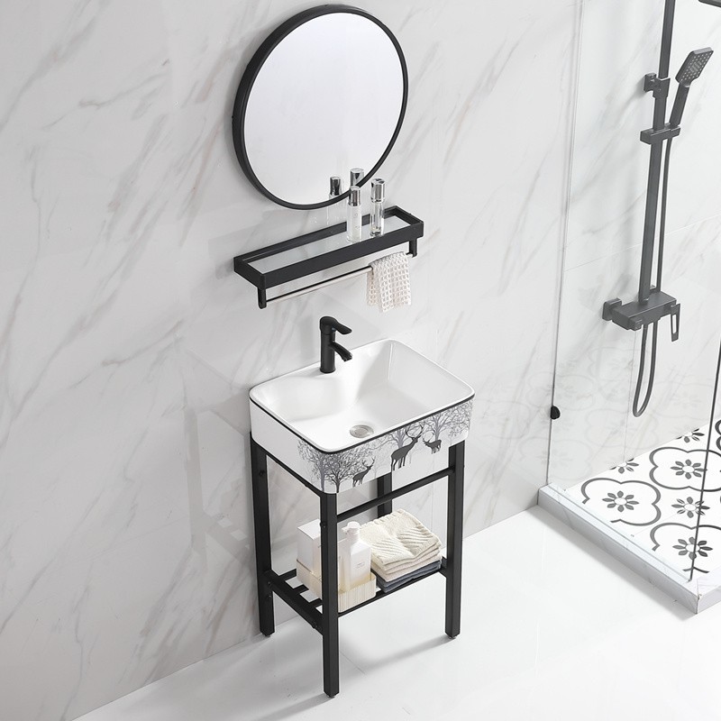 4Wf small apartment floor wash basin balcony bracket basin bathroom wash basin integrated ceramic basin wash stand