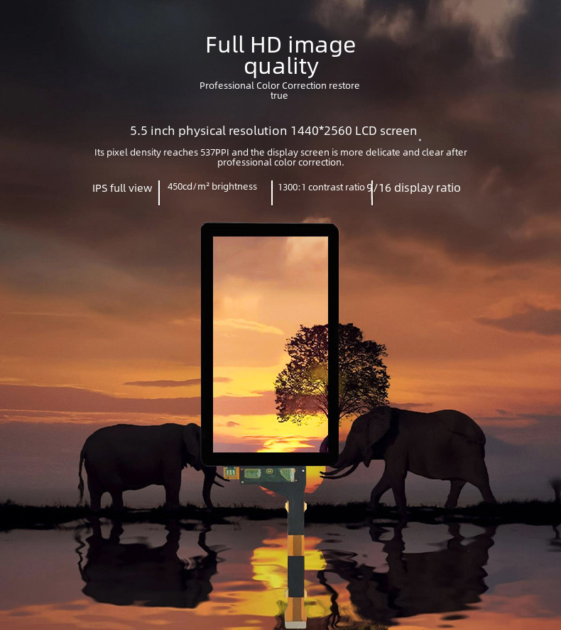 5.5 inch 2K screen 1440 2560 removed backlight full fit glass cover 3D printer display