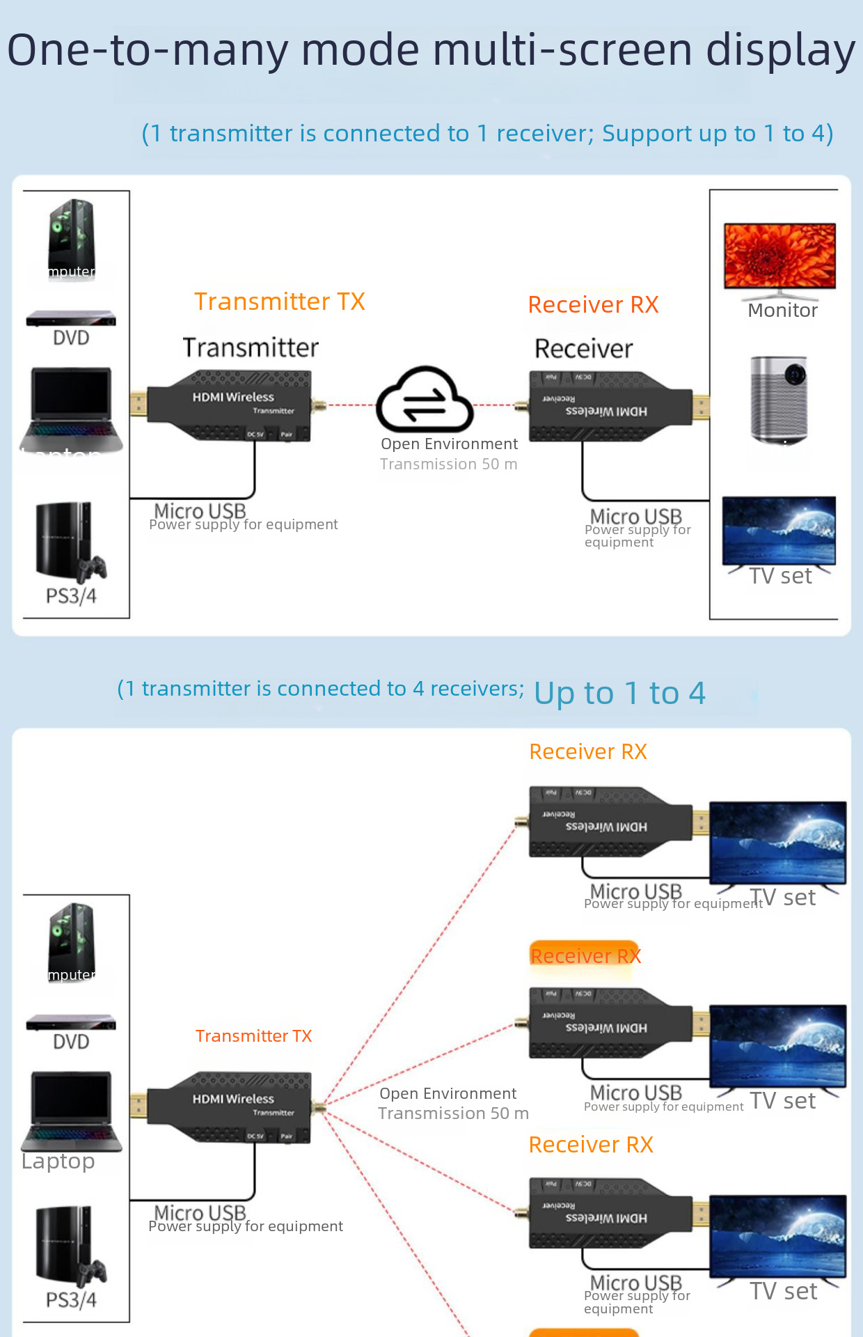 50m high definition wireless extension transceiver indoor 50m HDMI WIFI Extender HD 1080p