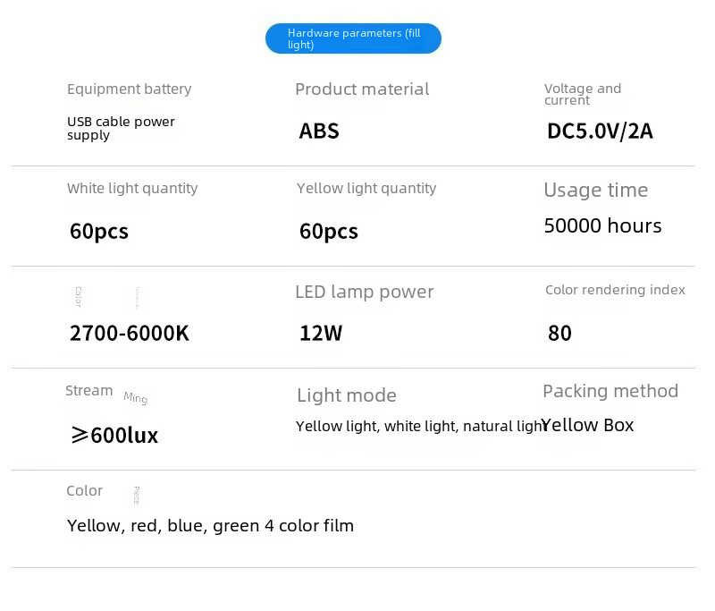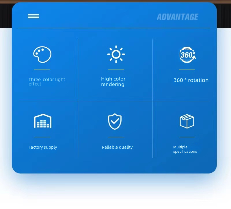 - 10-inch three-color flat panel lamp (metal pan/tilt)