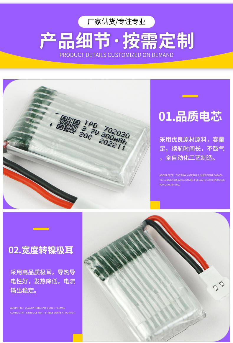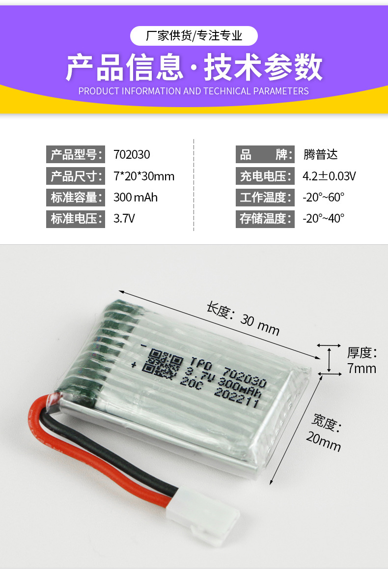 702030 model battery manufacturer 20c power 300mAh high rate aircraft drone accessories lithium battery