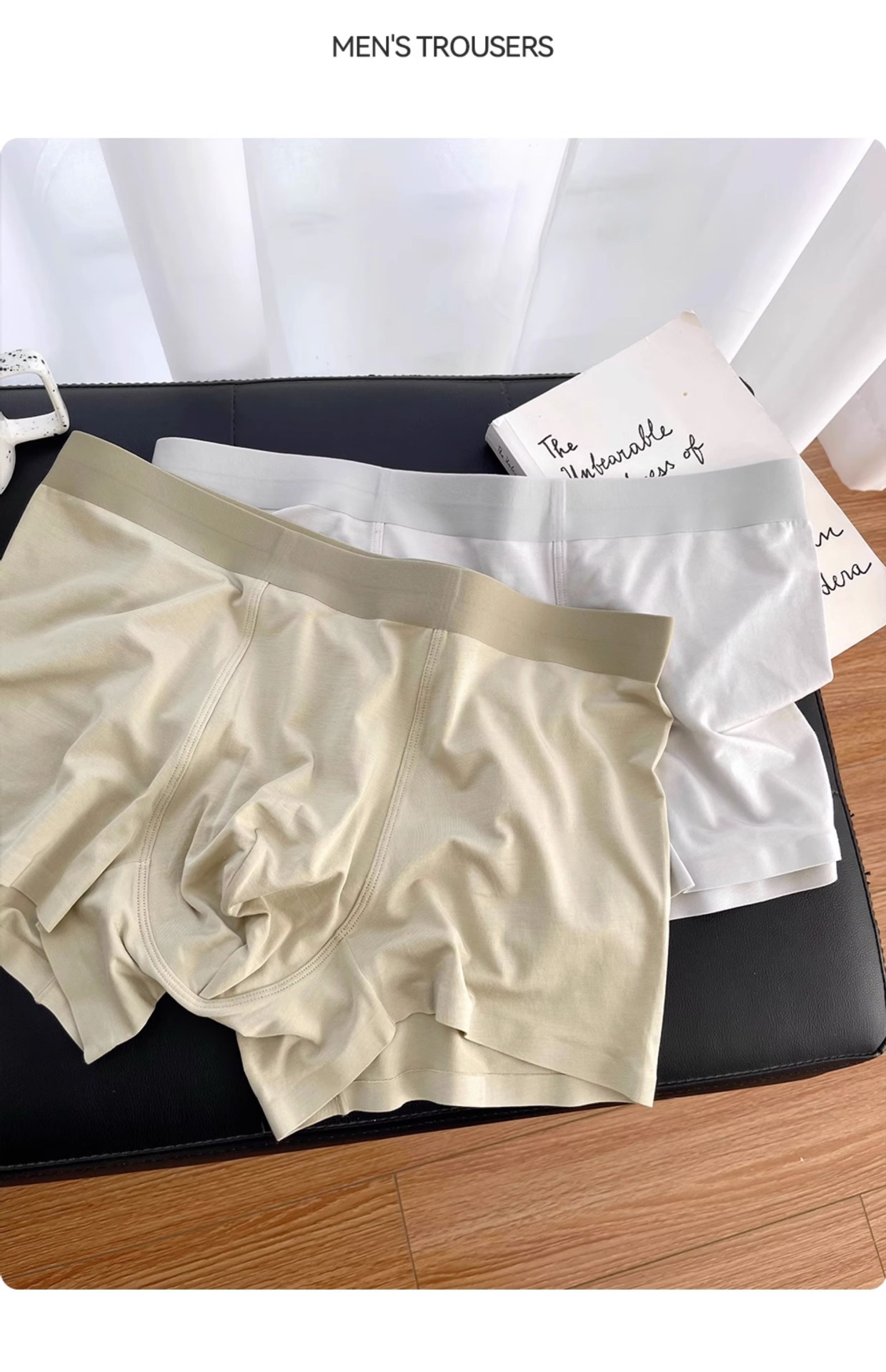80s Lanjing modal men s underwear mulberry silk 5A antibacterial breathable boxer shorts solid color simple seamless