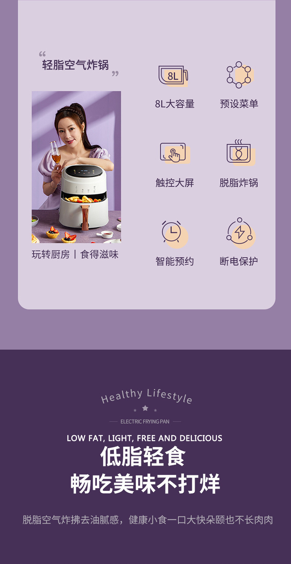 8L silver crest Air fryer New Air fryer household multi-functional smart fryer cross-border