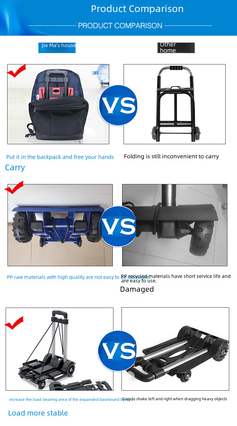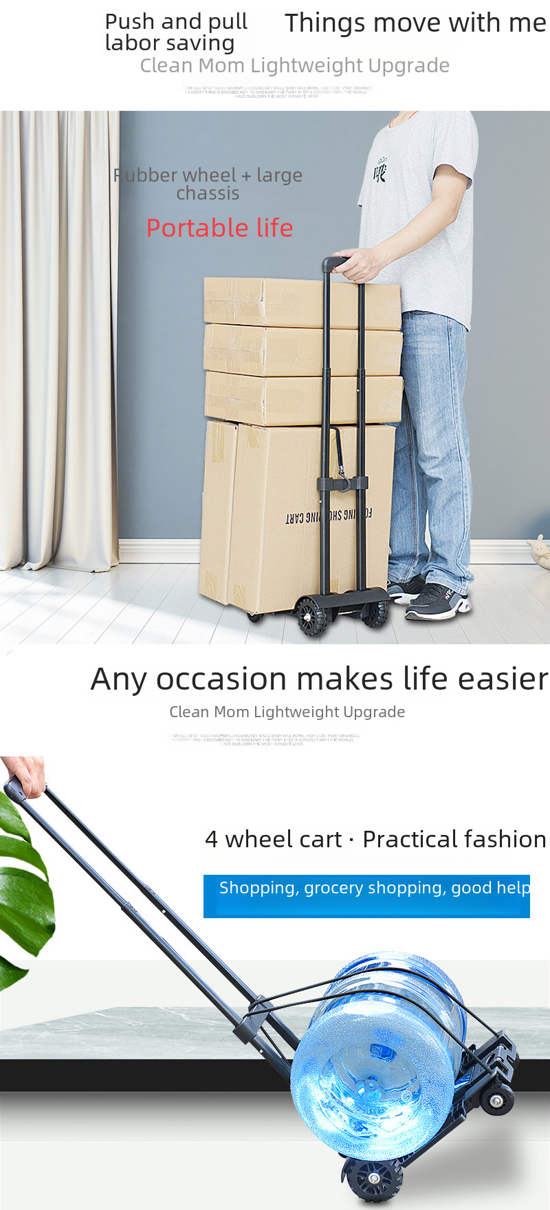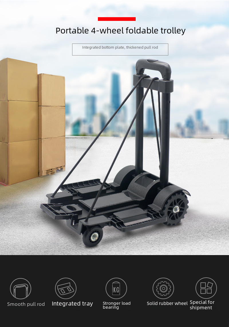 A generation of black folding trolley trolley trolley mini luggage trolley shopping trolley portable shopping cart