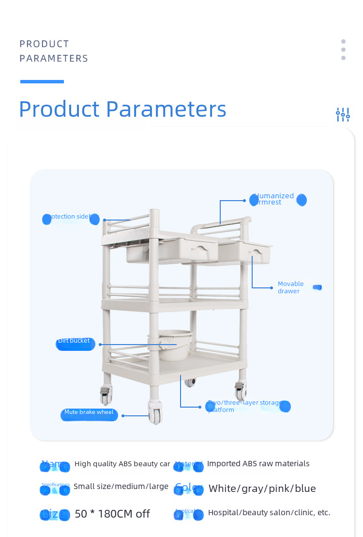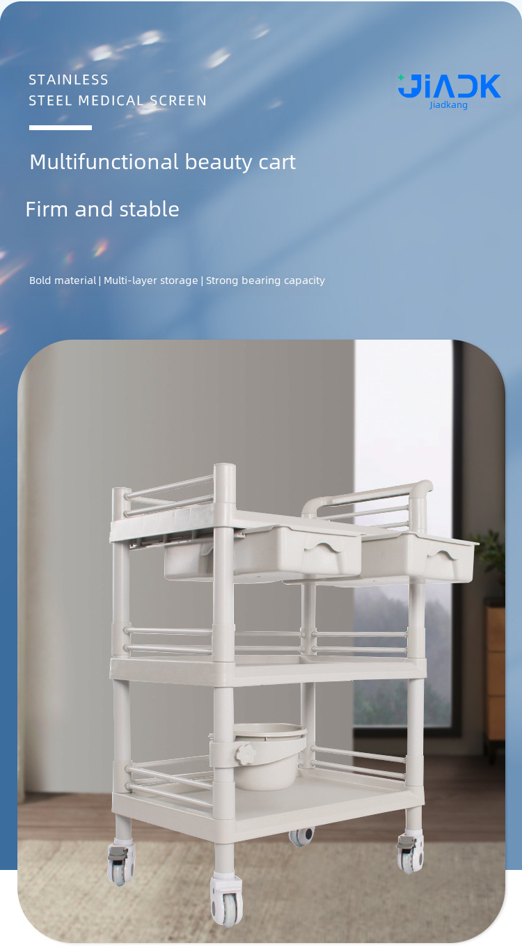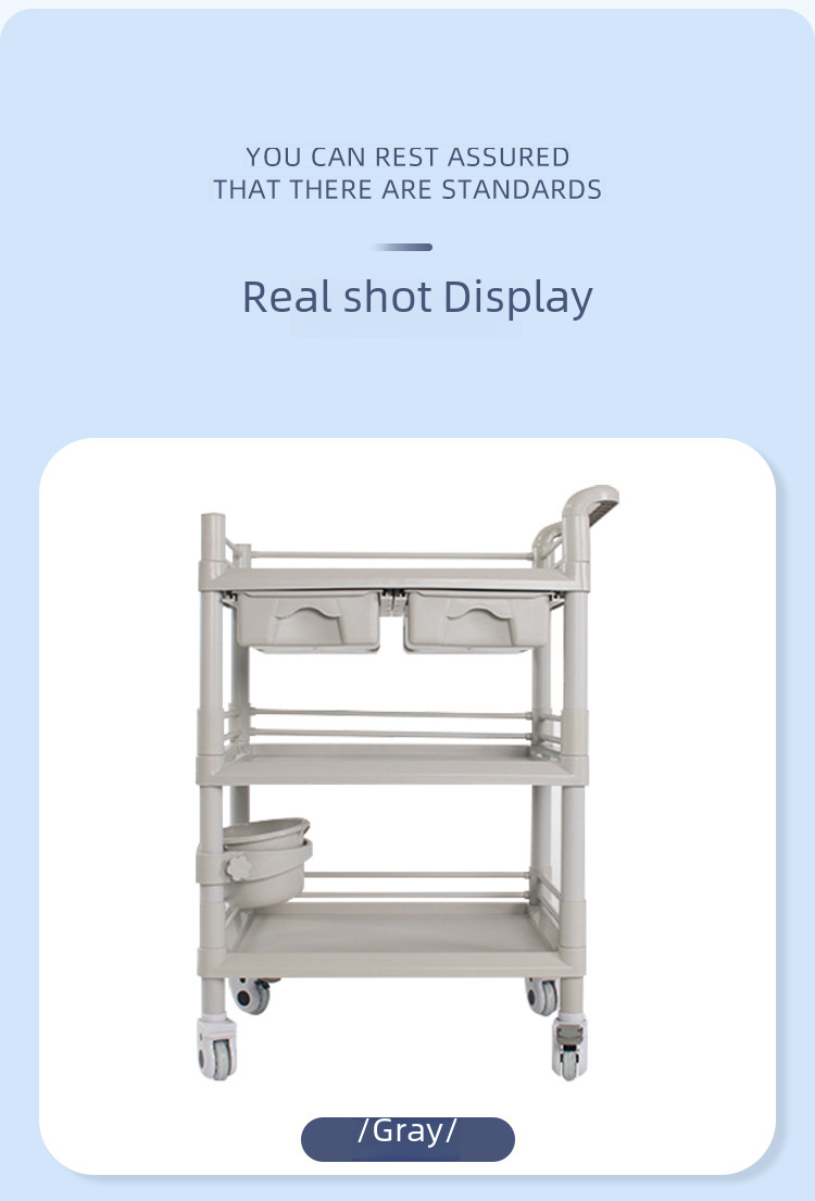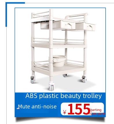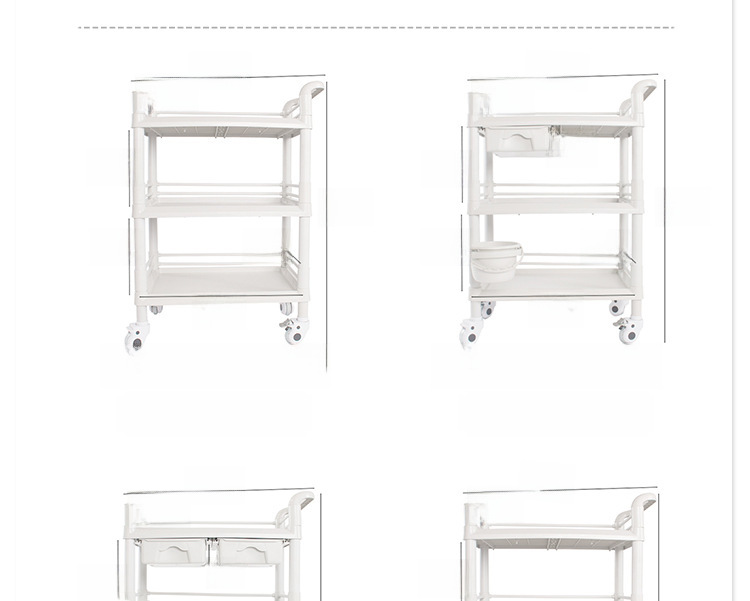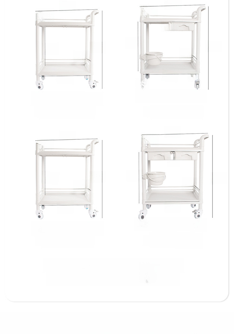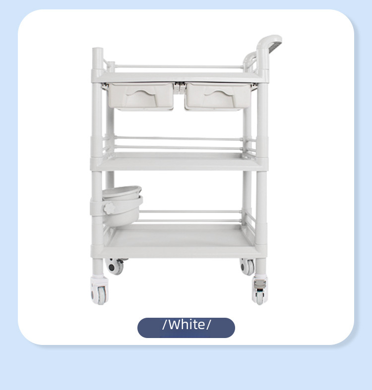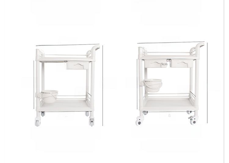 ABS full plastic beauty salon trolley double layer with drawer mobile hospital care trolley medicine change cart