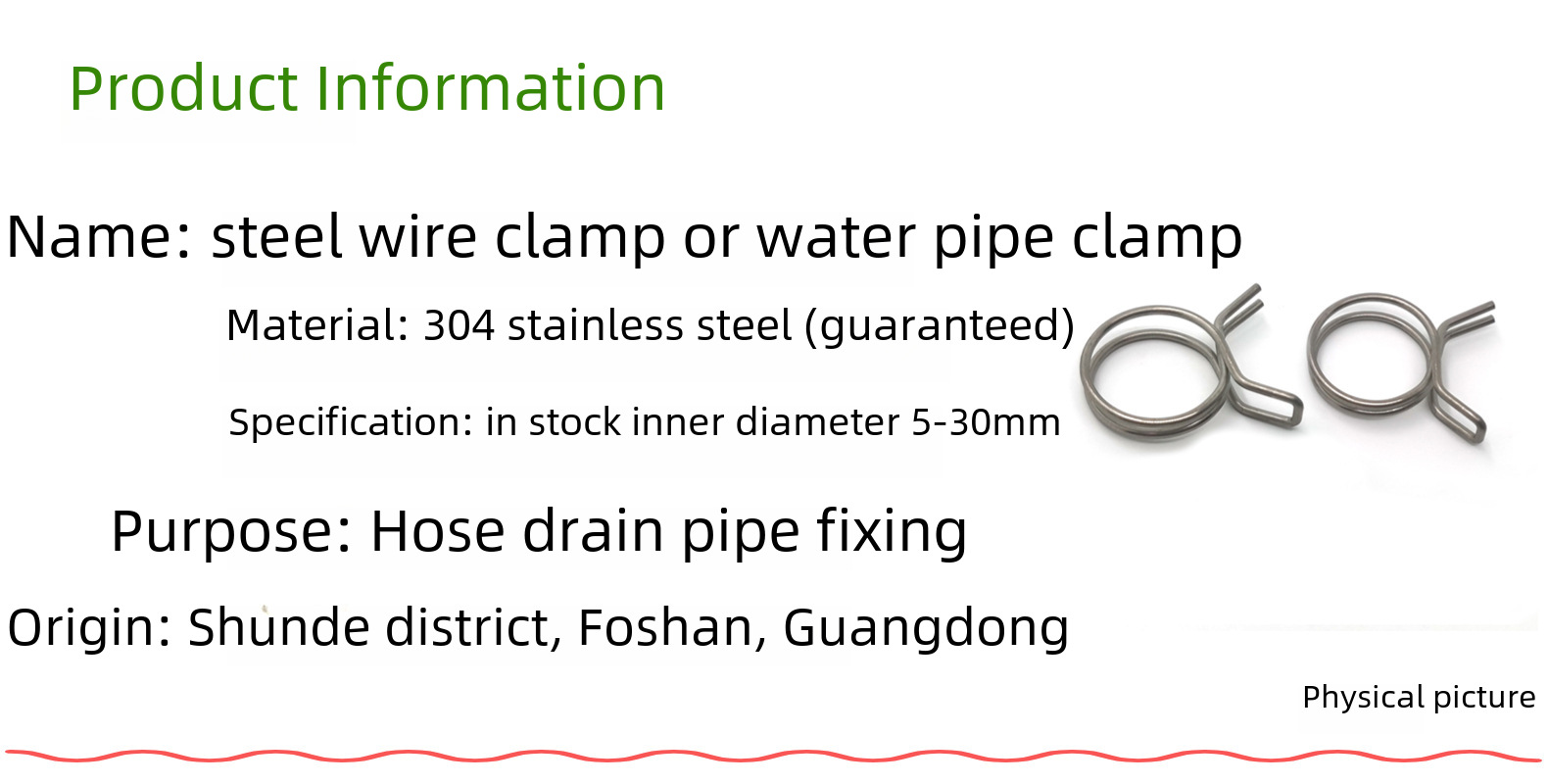 AC Double ring steel wire clamp irrigation water pipe clamp hand pinch quick fitting elastic buckle oil pipe hoop 304 stainless steel