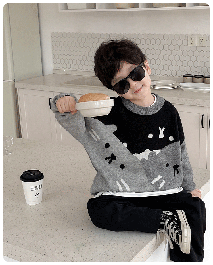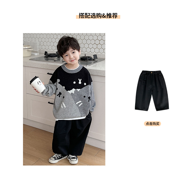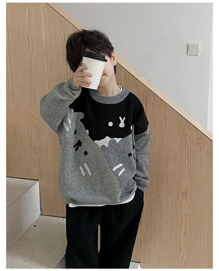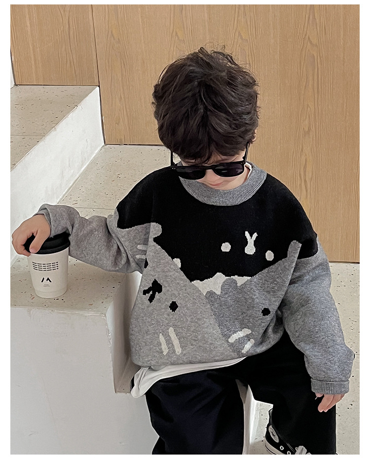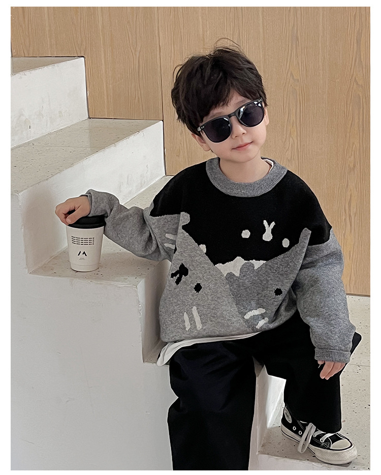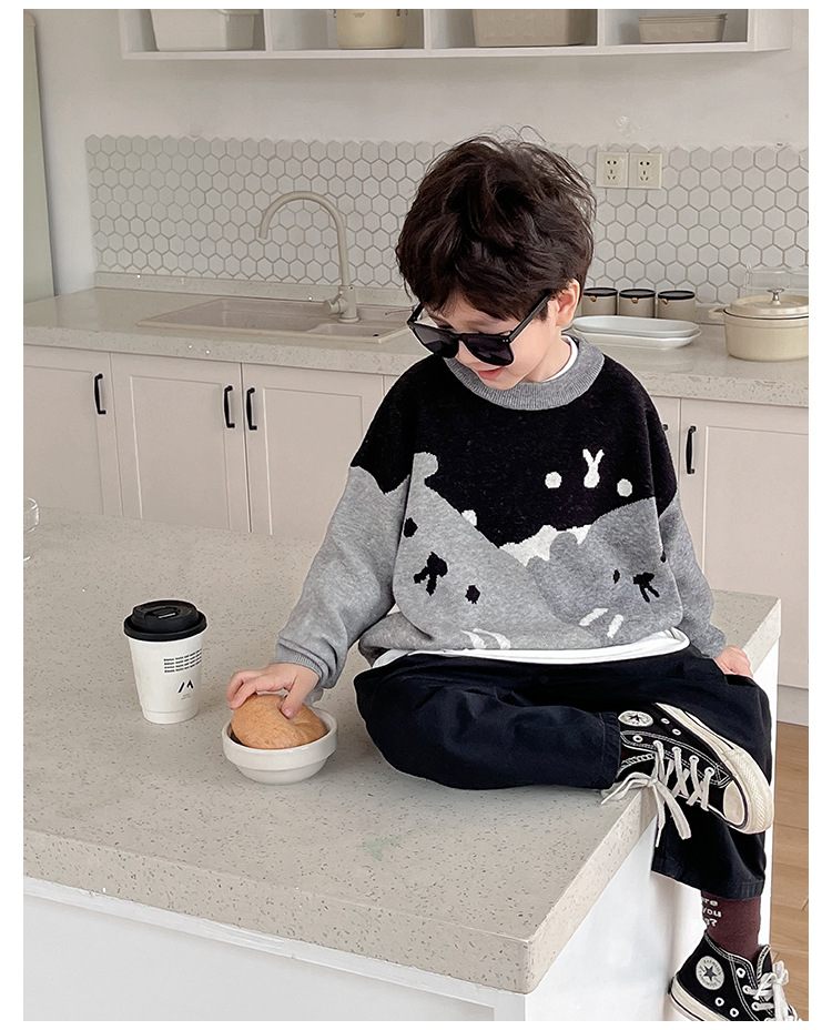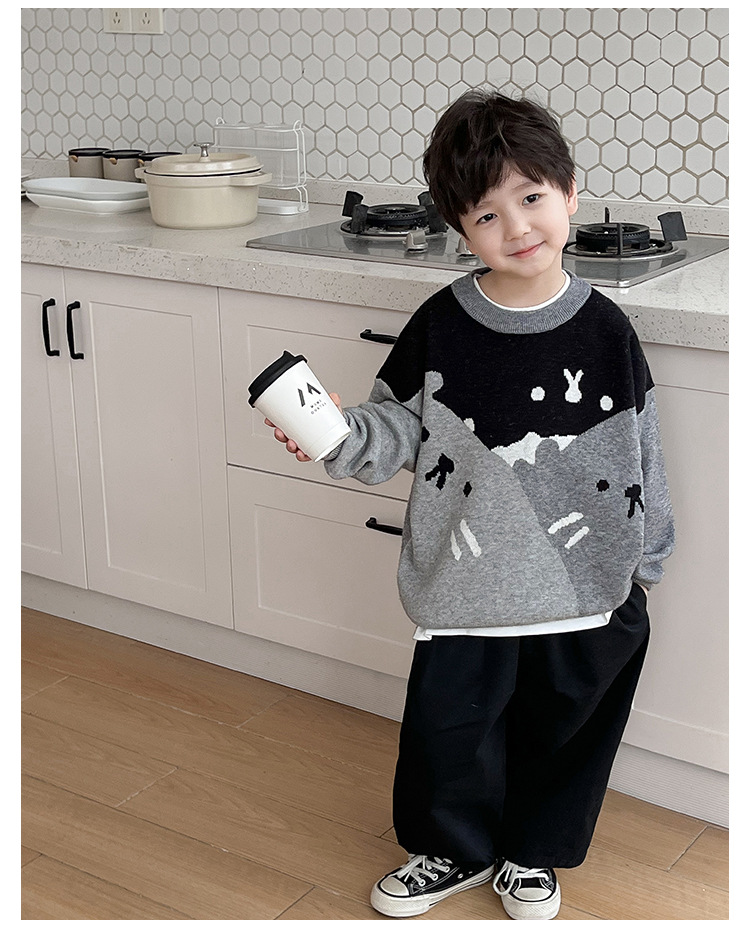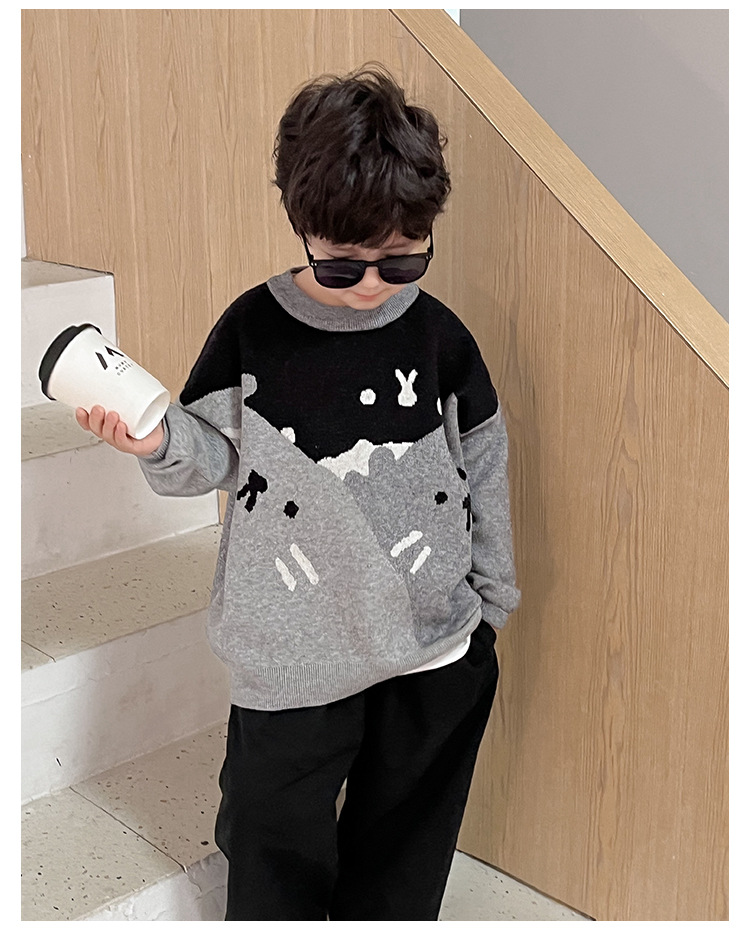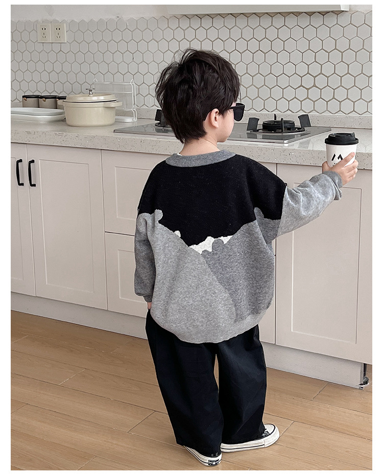 AOAOKIDS children s 2024 spring Korean style baby sweater cute kitten jacquard color matching boys sweater fashion