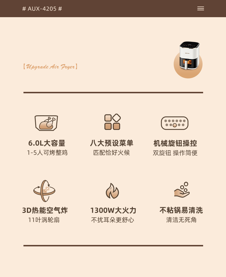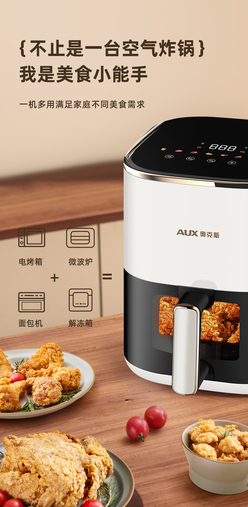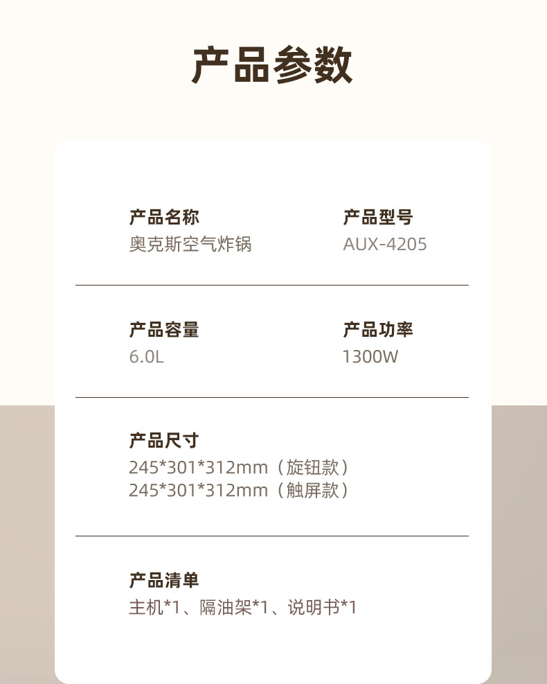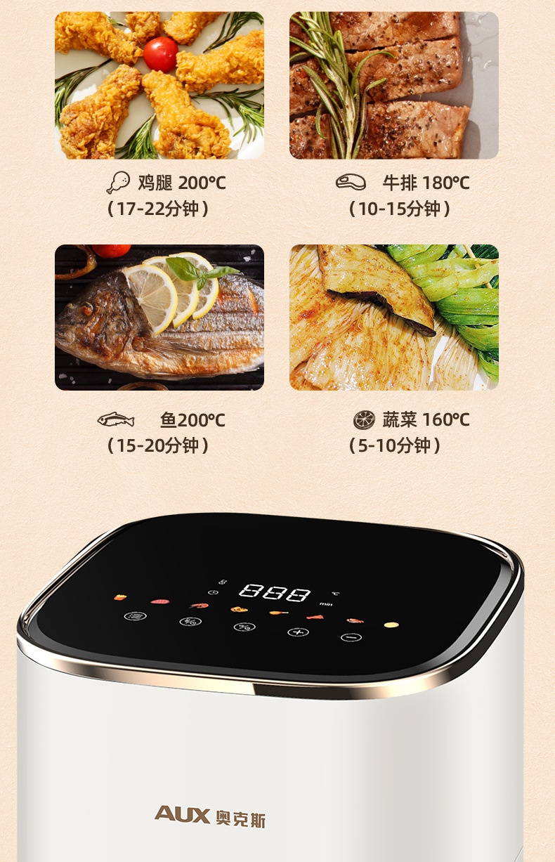 AUX ox 6L visual intelligent air fryer household multi-function electric fryer fries machine