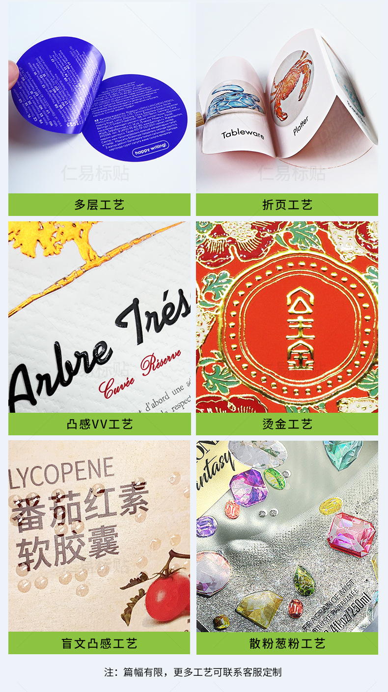 Adhesive label paper high grade PVC coated paper printing bronzing logo wine food waterproof transparent card head paper
