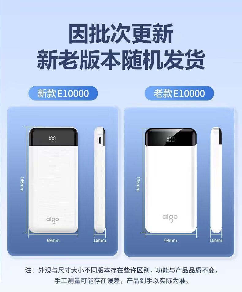 Aigo 10000 mA power bank 15W Small portable E10000 fast charging flash charging mobile power gift