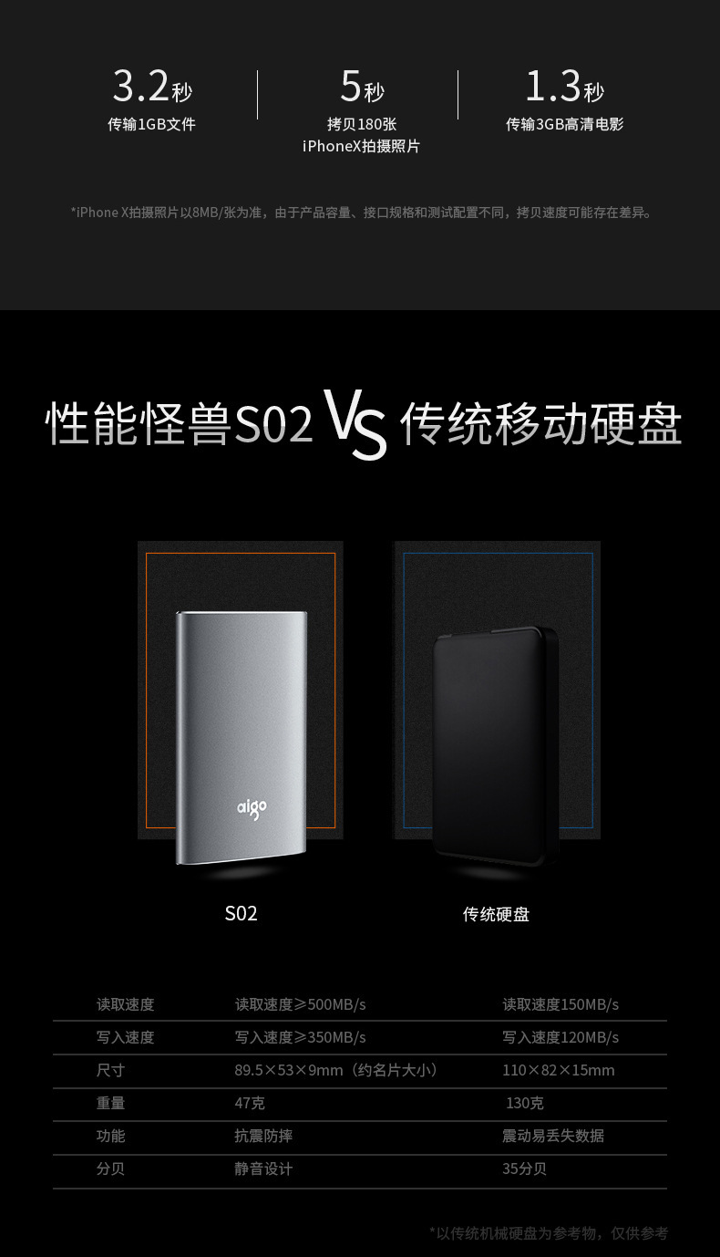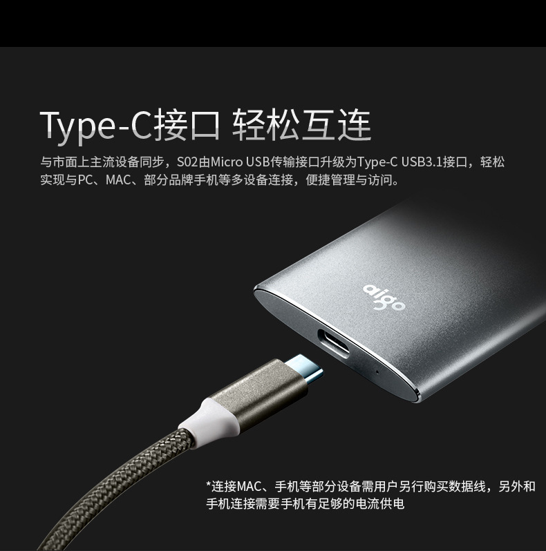 Aigo S02 mobile SSD high speed USB3.1 mobile computer dual use SSD mobile hard disk applicable