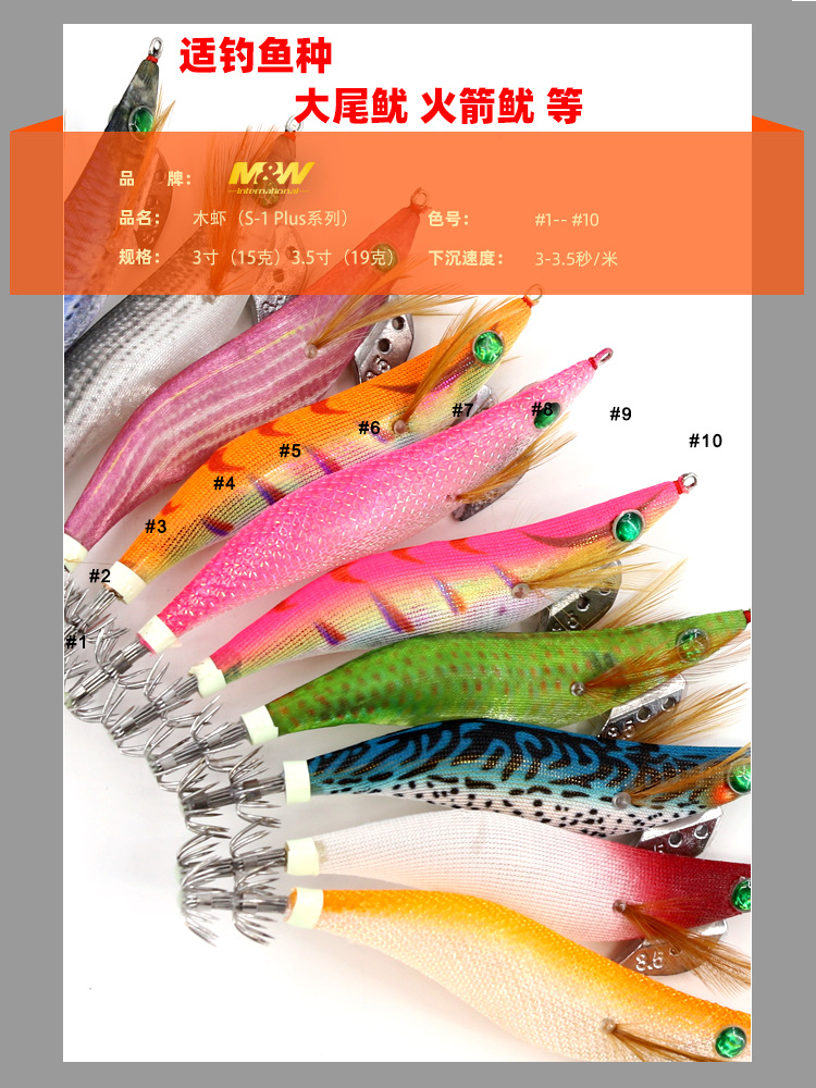 Aimoda MW sea fishing wooden shrimp squid hook luminous wooden shrimp fluorescent fake shrimp Luya bait No. 3 No. 3.5 squid hook