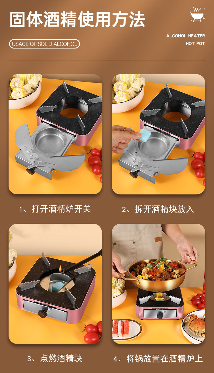 - Rose gold Maifanite alcohol stove (send scouring pad)