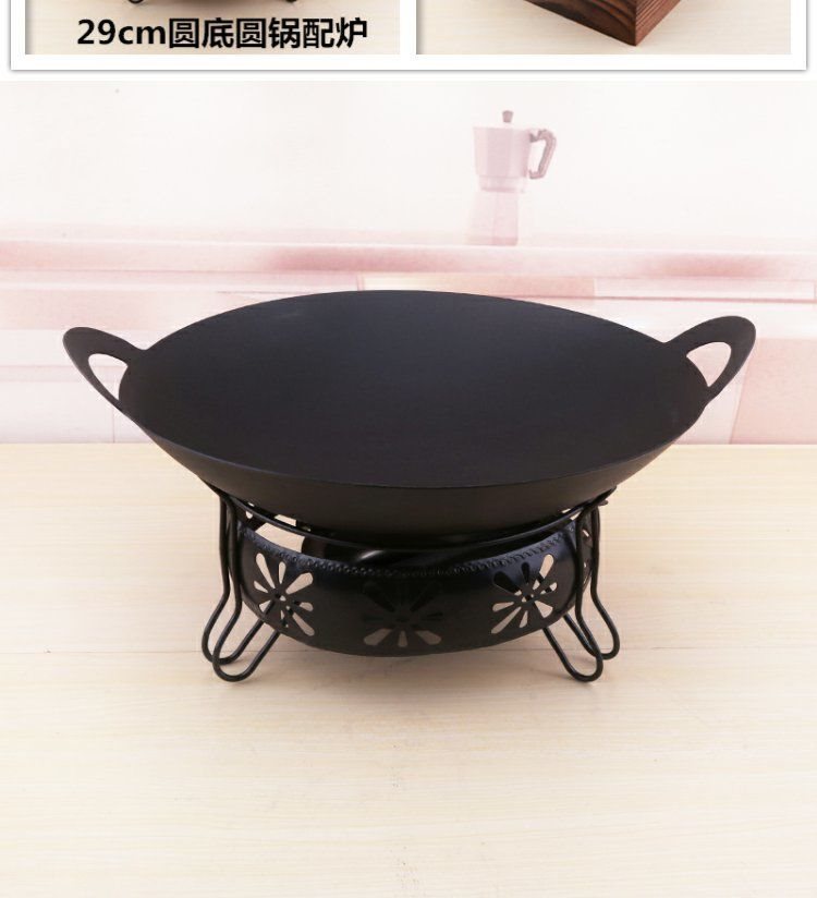 Alcohol Stove Small Hot Pot Thickened Non stick Dry Pot suit Commercial Restaurant Iron Pot Household Pan Restaurant Stove