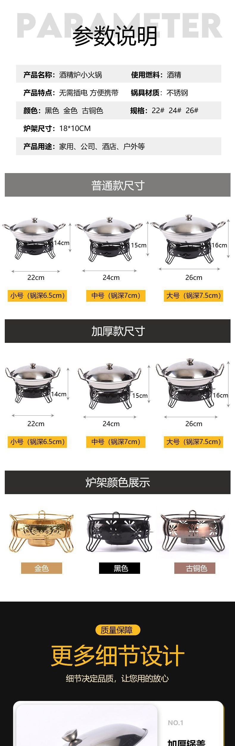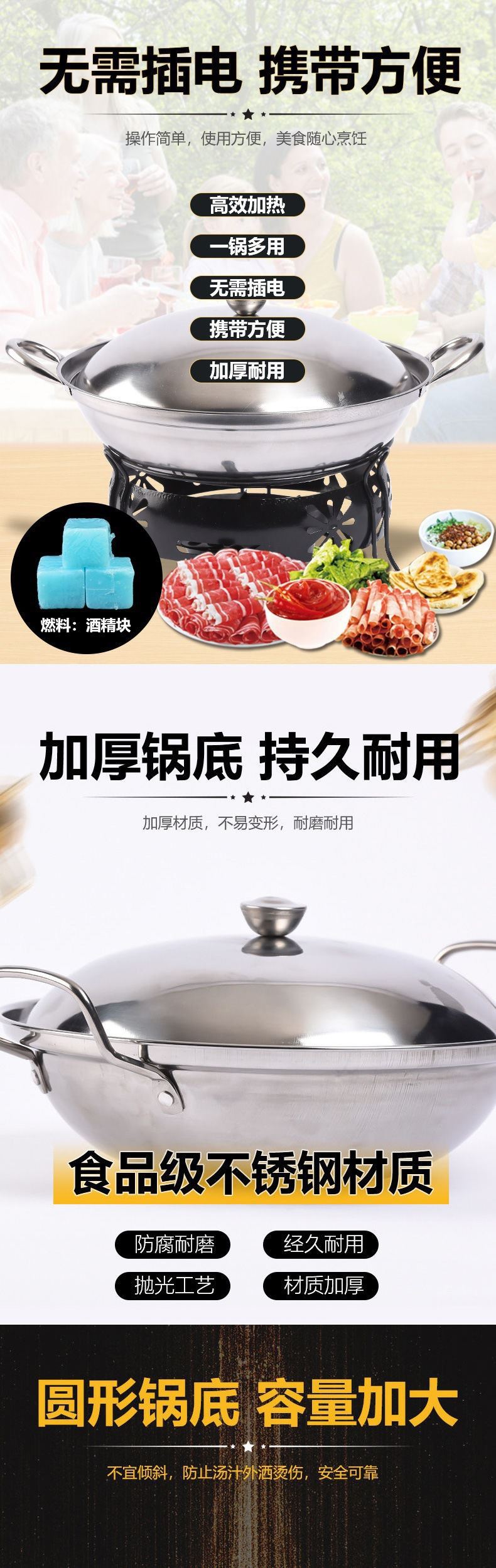 Alcohol stove small hot pot thickened stainless steel dry Pot Pot restaurant Home dormitory picnic set pot portable