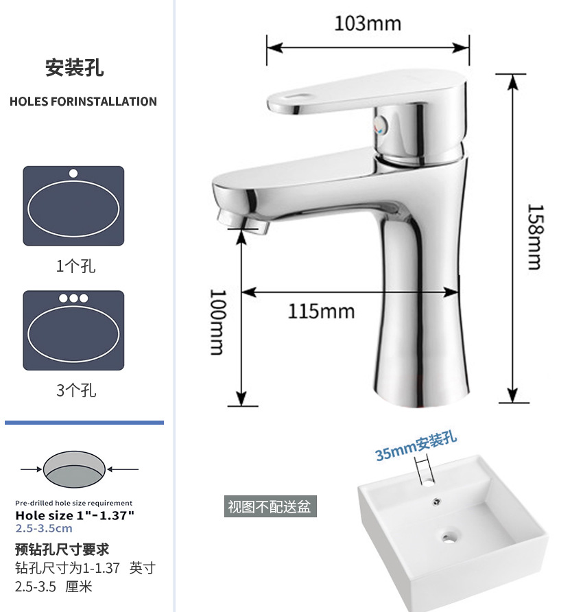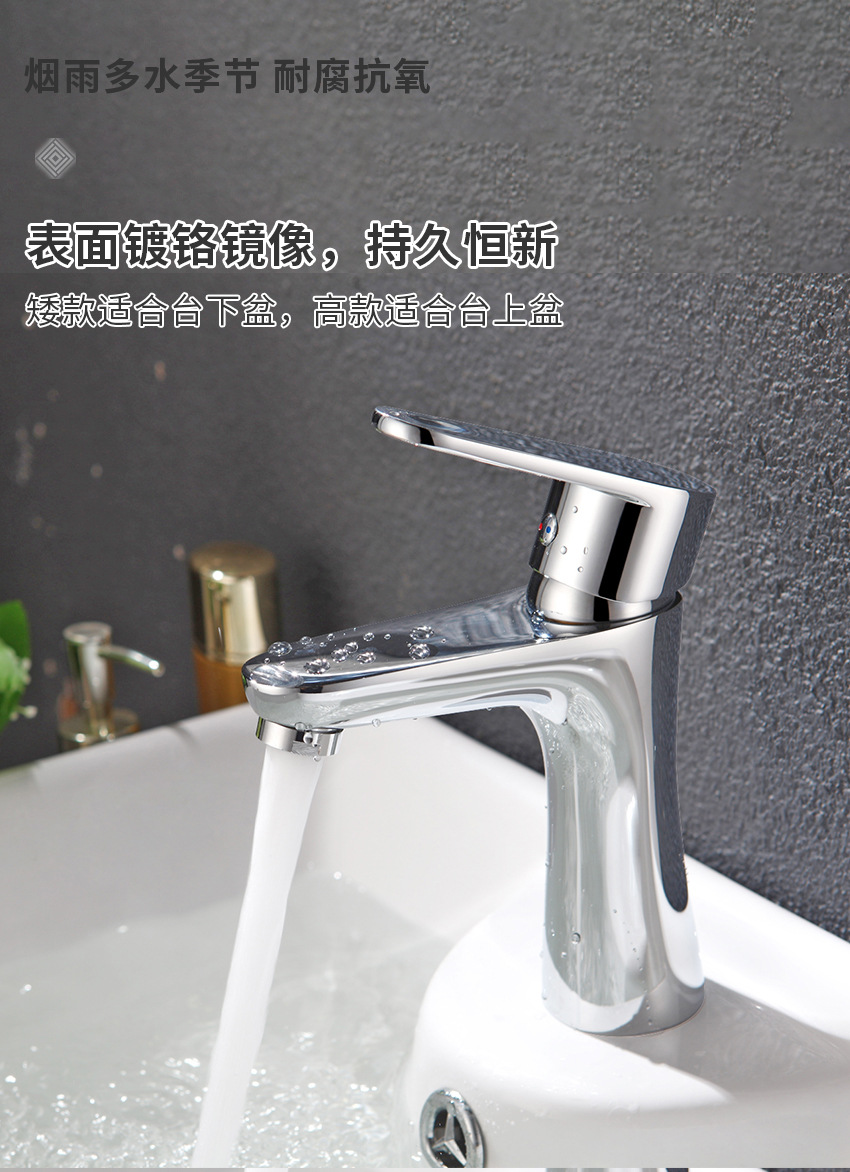 All Copper Face Plate Faucet Household Bathroom Bathroom Washbasin Sink Single Handled Single Hole Hot and Cold Mixing Faucet
