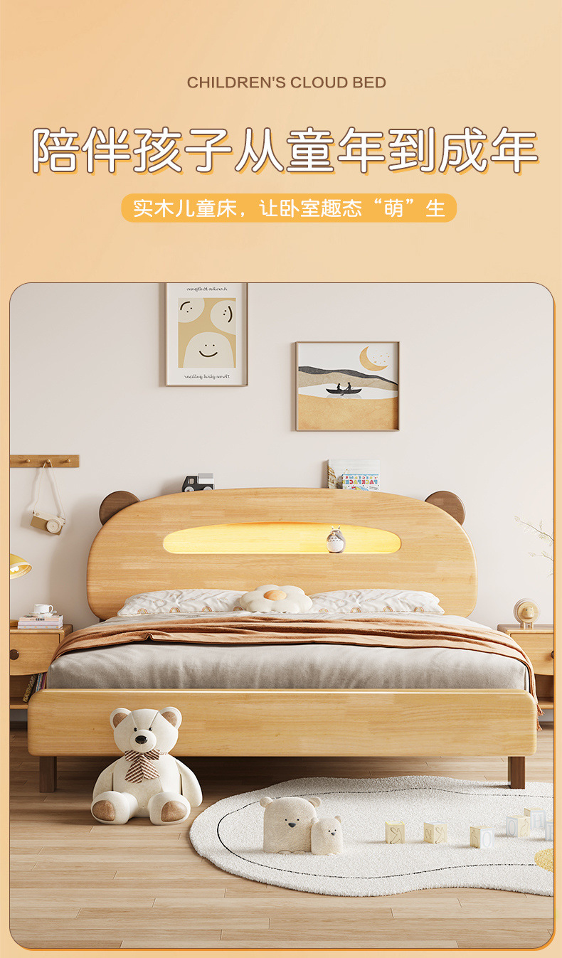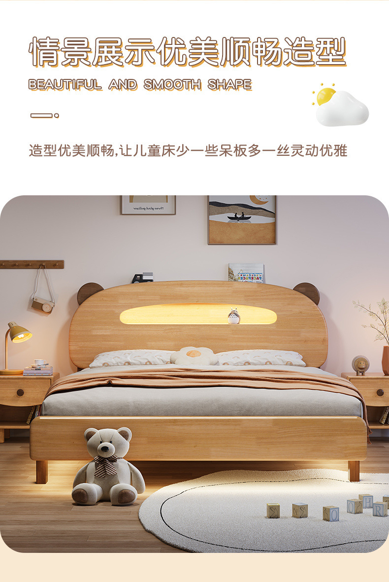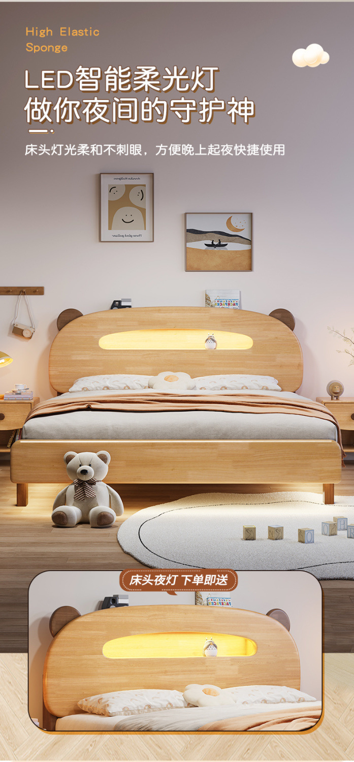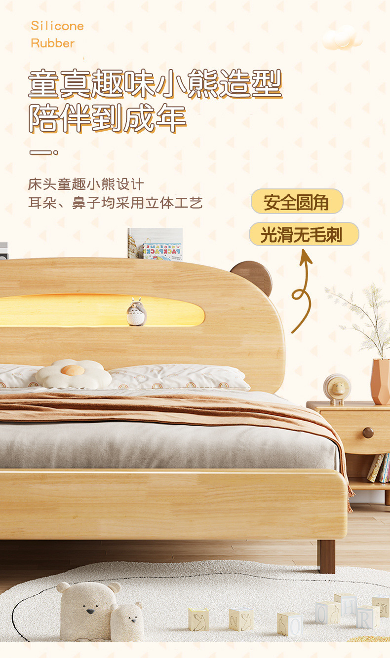 All Solid Wood Children s Bed Home Bedroom 1.5 m Princess Bed Simple Boys 1 m Rental Single Bed Rubber Wooden Bed