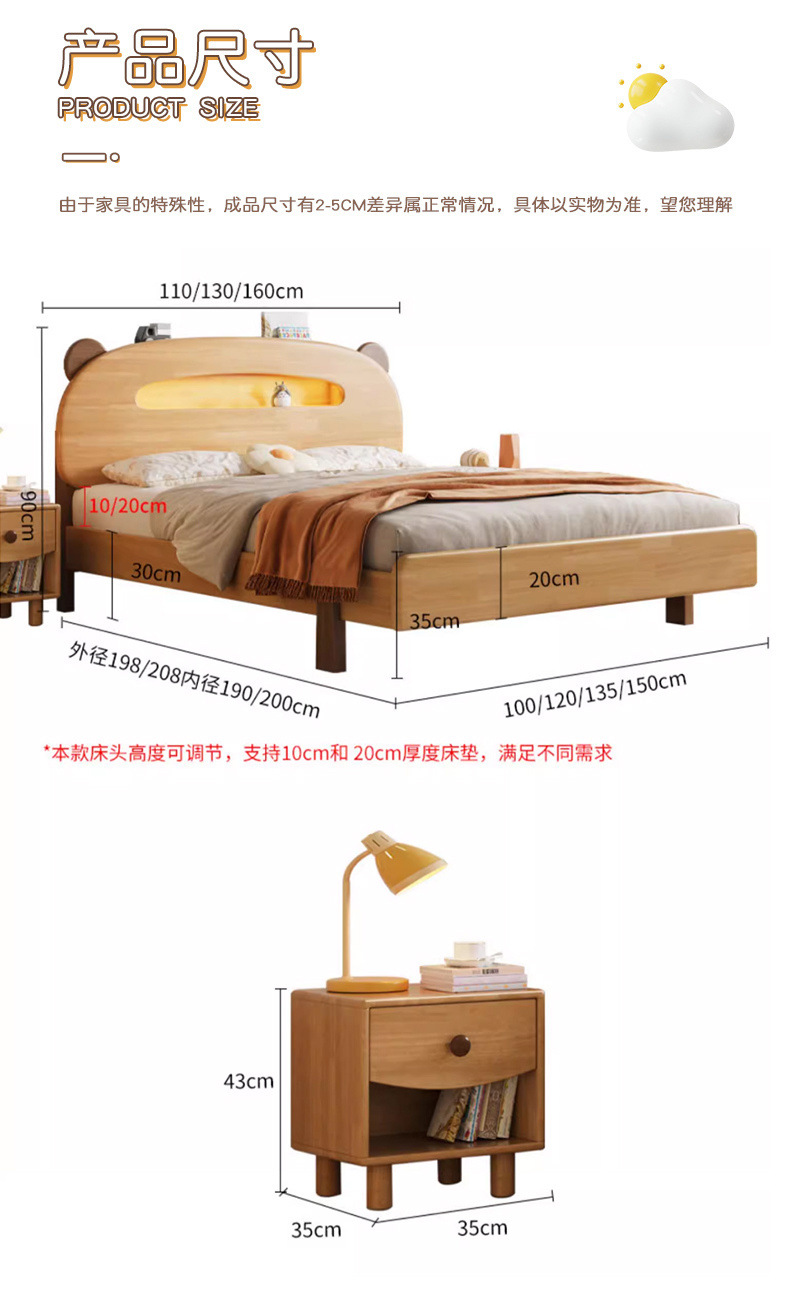- Solid wood bed bedside table * 2 Shunfeng upstairs installation
