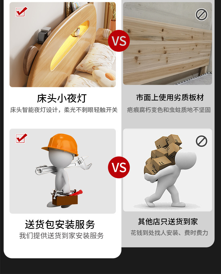 - Solid wood bed bedside table * 1 Shunfeng upstairs installation